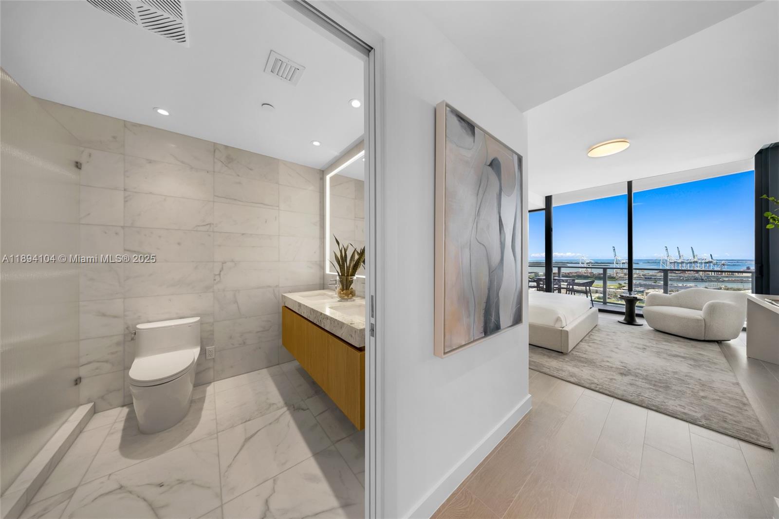 This sophisticated 1-bedroom, 1.5-bath residence at Five Park combines modern elegance with comfort and practicality. From the expansive terrace, take in panoramic views of Biscayne Beach and Miami Skyline. Soaring 10-foot ceilings, floor-to-ceiling windows, and an open layout create an airy, light-filled ambiance. The chef’s kitchen is appointed with Gaggenau appliances, custom oak cabinetry, and quartzite countertops. The primary bath showcases marble flooring, walls, and vanity. Five Park—Miami Beach’s newest luxury icon—offers residents an unparalleled lifestyle with premier amenities, including a bayfront full-service pool deck, cutting-edge fitness and wellness center, and an exclusive private beach club. Beautifully furnished.