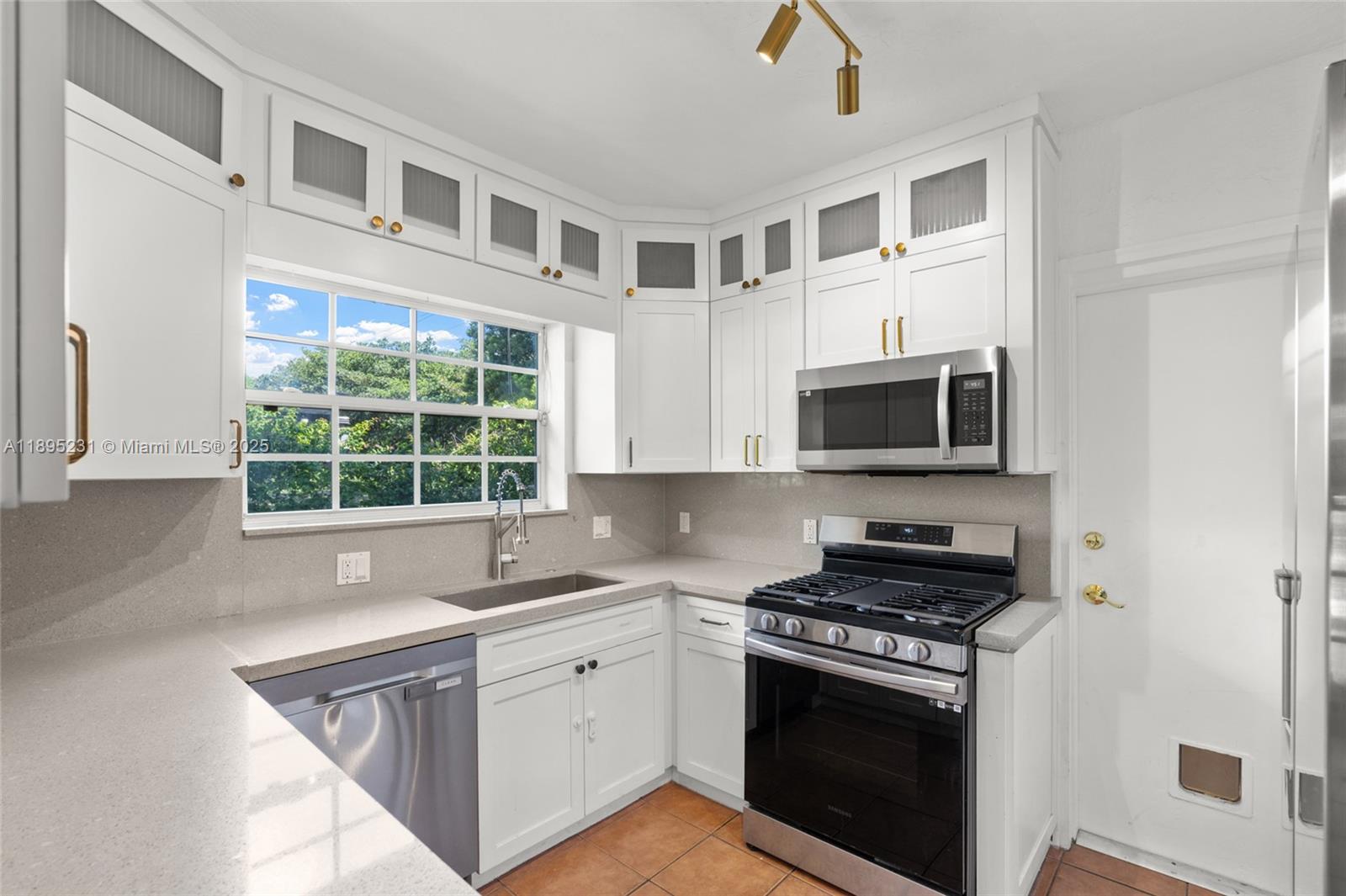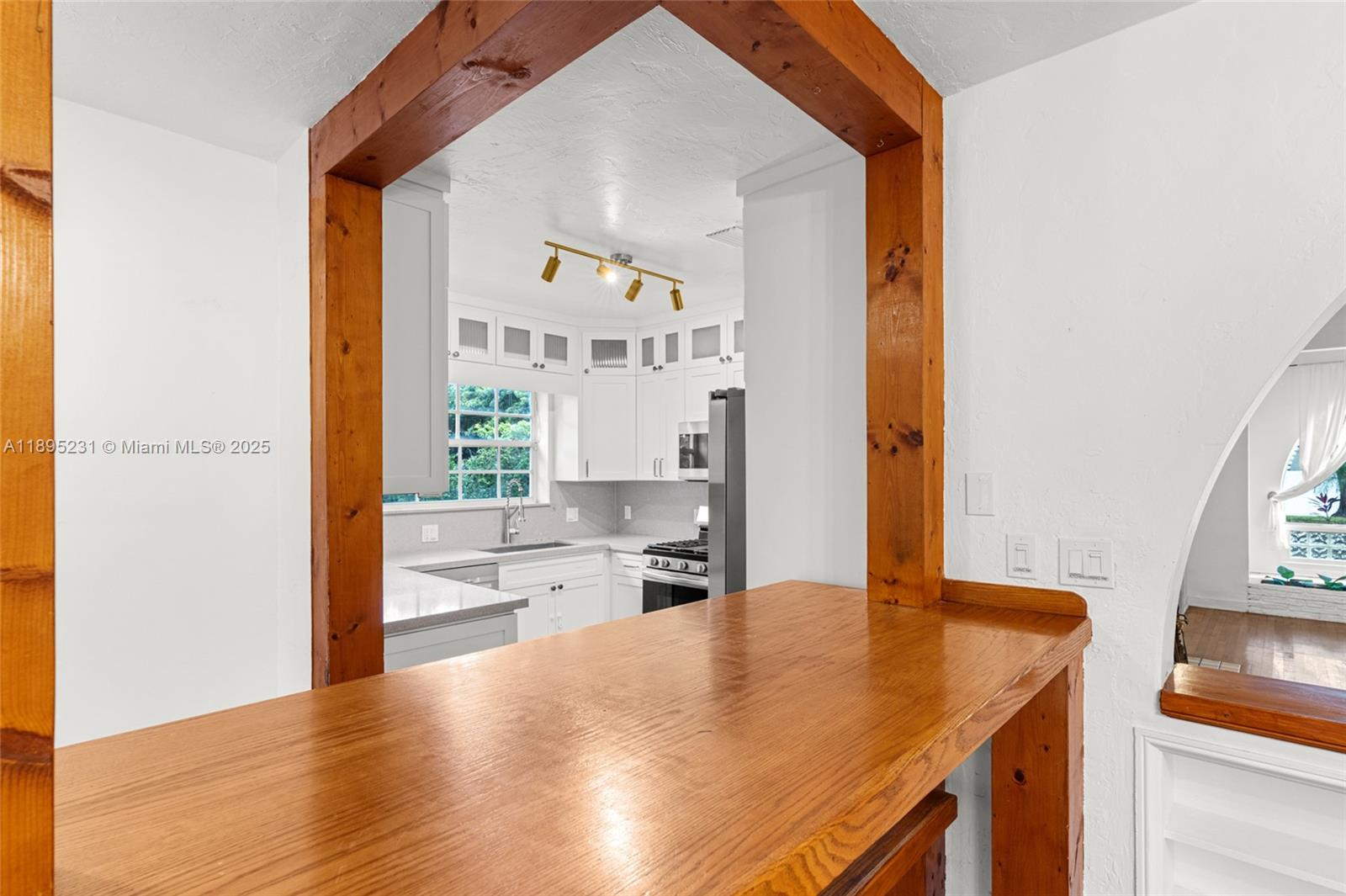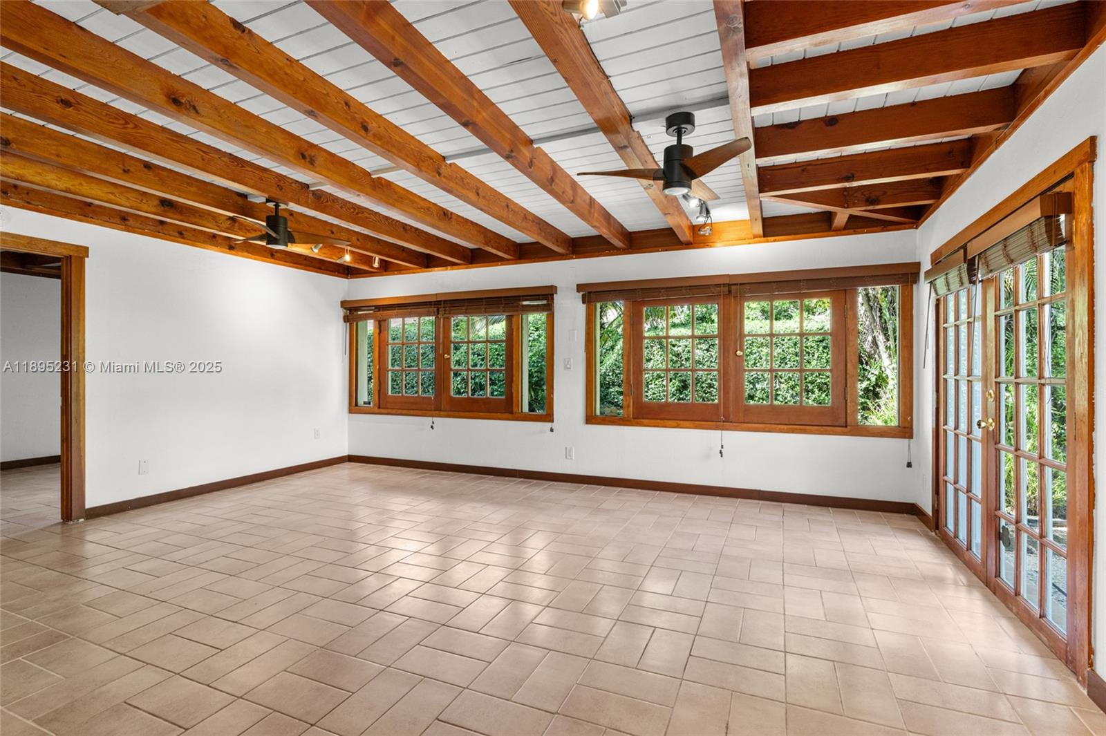 Welcome to this beautifully updated Art Deco–inspired home in the heart of Miami Shores! Featuring 3 bedrooms, 2 baths, and over 2,100 sq ft of living space, this residence offers timeless charm with modern updates. Enjoy 10’ ceilings with exposed wood beams, a spacious family room overlooking the new patio, formal dining area, and remodeled bathrooms. The stylish kitchen includes a hardwood peninsula, gas range, stainless steel appliances, and a deep single-bowl sink. Additional features include a new AC with Nest thermostat, tankless water heater, 1-car garage with storage, and circular driveway with parking for 3 cars. Near Miami Shores Country Club.