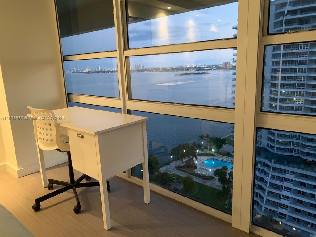 Reduced and Available Mid November 2025 this remarkable 2 Bedroom, 2.5 Bath, 2 story penthouse has amazing bay and cityscape views and over 1700 SF of living area! Fully Furnished and tastefully decorated this unit comes with 2 bedrooms upstairs with split floor plan, 2 Full Baths upstairs, 1/2 Bath downstairs for guests and a huge Living and separate dining area downstairs for entertaining. Oversize balcony looking south at South Beach across Biscayne Bay. Rent includes high speed internet, cable, water, sewer, trash and parking as well as use of all amenities. Looking for that special renter that will take care of this property. Must have solid credit and references. Priced well under value due to some construction going on.