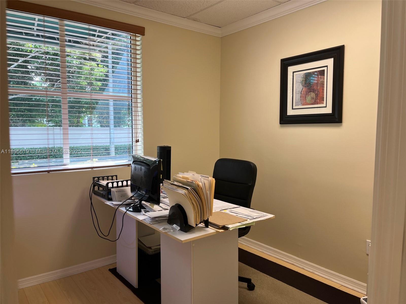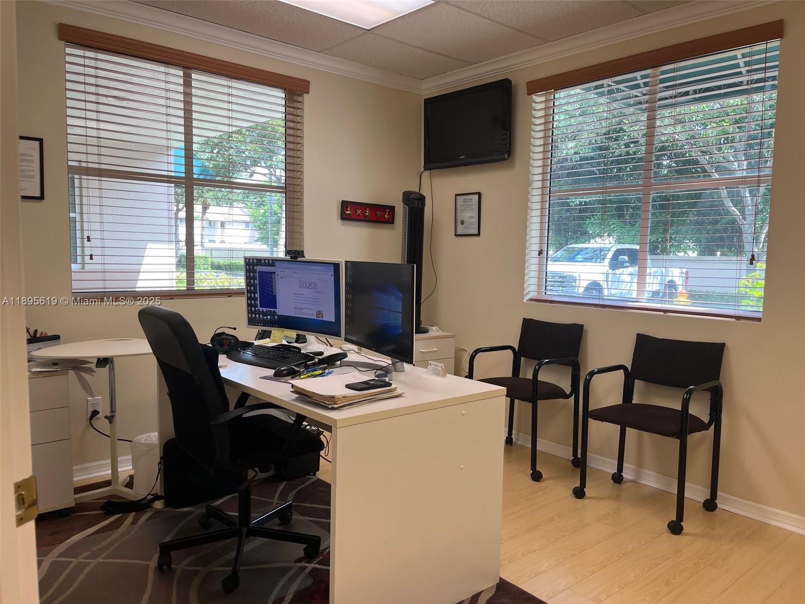 Corner Office for Lease at University Place, Davie! Modern and bright first-floor corner office with excellent visibility and abundant natural light. The functional layout includes multiple private offices, a welcoming waiting area, a conference room with TV, and a private bathroom. It also features a kitchenette with refrigerator and microwave. Fully renovated and move-in ready, this office offers high ceilings that enhance the sense of space and create a pleasant workspace. Surface parking provides convenient access for employees and clients. Perfectly situated just minutes from I-595 and the Turnpike, and close to restaurants, cafés, and shops, this office combines comfort, visibility, and convenience in one of Davie’s most sought-after locations.