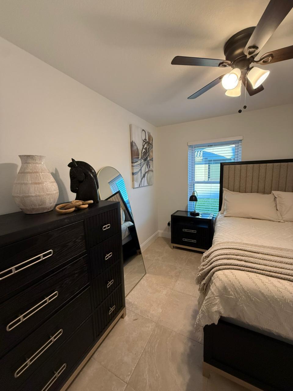 Beautifully renovated Single House with new furniture and appliances. 4 rooms bedrooms(2 King size and 2 Queen size), + 1 Den with Queen size Bed, 3.5 bathrooms, laundry inside. Residence with big pool and yard(The pool extra layer and screen), 2 cars garage, plus golf car available. The community has a private park inside for kids and adults, community amenities include basketball courts and a playground. Bring your client, everyone is Welcome!!!