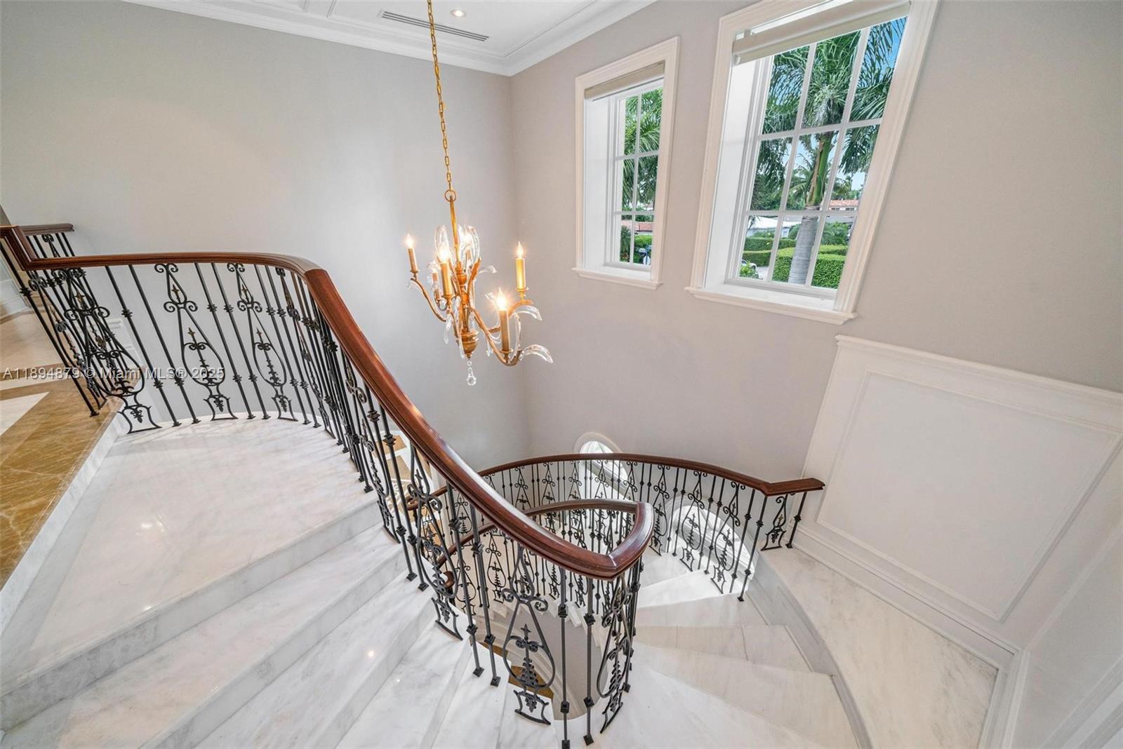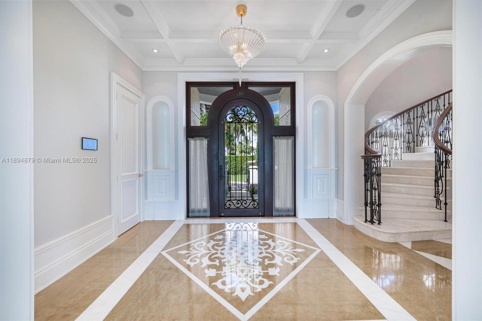 Exceptional Bayfront Mediterranean villa delivering luxury waterfront living with south exposure and one of Miami’s most panoramic skyline views on exclusive, gated North Bay Island. This 7,531 SF mansion offers 6 bedrooms, 5.5 baths, boasting 118 ft of waterfrontage for privacy and stunning bay views. An expansive deck showcases a 40+ft infinity pool ideal for enjoying Florida sunsets. A covered outdoor entertainment room creates seamless indoor-outdoor living. Inside, sun-filled interiors flow among living, dining, gourmet kitchen (with dual appliances), classic library, and media room. The sculptural staircase rises to the bedrooms, which include two primary suites with private terraces. 2-car garage + 2 gated driveway pkg. Available now, unfurnished, 1-year minimum, renewable.
