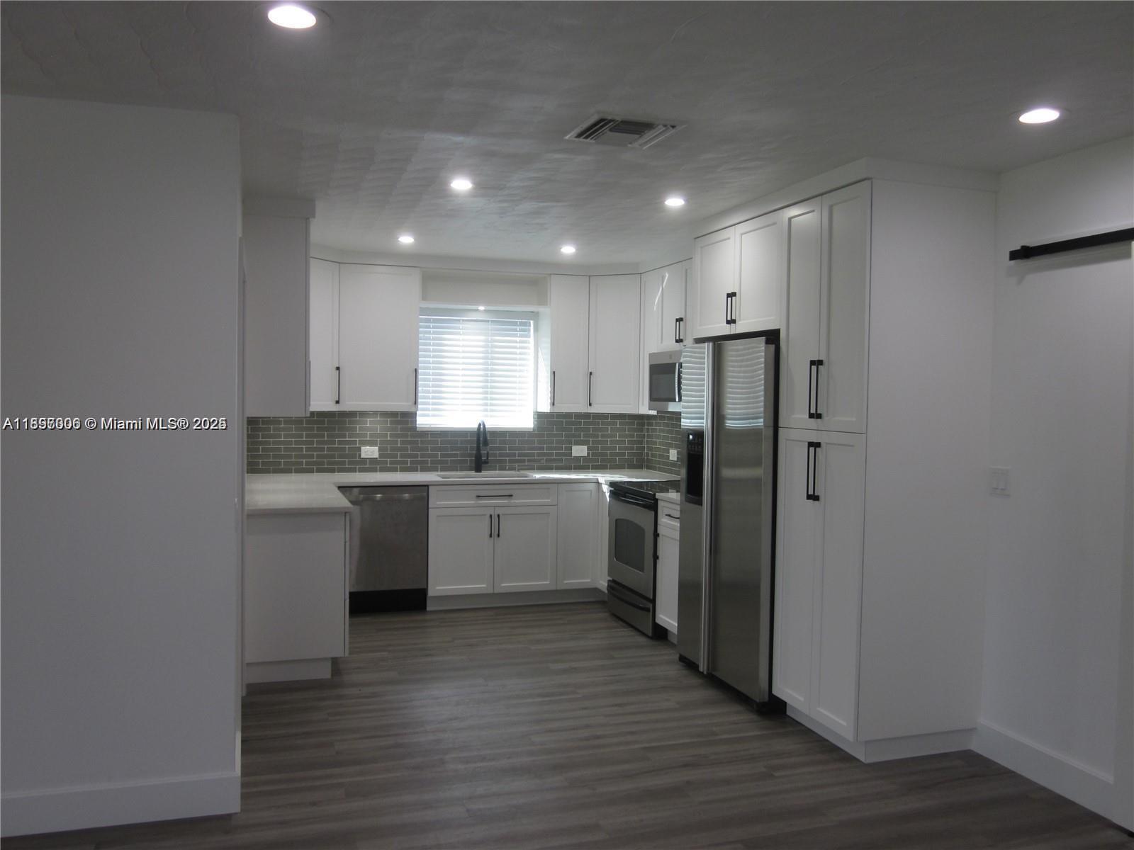 THIS HOME IS IN IMPECCABLE CONDITION. THE FOLLOWING UPGRADES, NEW ROOF, IMPACT WINDOWS, NEW ELECTRICAL PANEL, TANKLESS W-HEATER, WOOD PRIVACY FENCE IN THE LARGE BACKYARD, SPRINKLER SYSTEM, FRESHLY PAINTED. THIS HOME HAS (3) BEDROOMS (2) BATHS WITH A (1) CAR GARAGE WITH WASHER & DRYER, REMODELED KITCHEN & BATHROOMS WITH QUARTZ COUNTER TOPS, 42INCH WHITE SHAKER CABINETS WITH PULL OUT PANTRY DOORS, COUNTER DEPTH REFRIGERATOR, STOVE, MICROWAVE, DISHWASHER, UPGRADED FLOORING THRU-OUT. NEW DOORS INCLUDING BEAUTIFUL BARN DOOR* ***LAWN MAINTENANCE INCLUDED IN THE MONTHLY RENT*** BRING YOUR PICKEST CLIENTS TO THIS EXQUISITE HOME. MINT CONDITION CENTRALLY LOCATED. **TENANTS WILL HAVE TO SHOW PROOF OF RENTERS INSURANCE BEFORE OCCUPANCY***