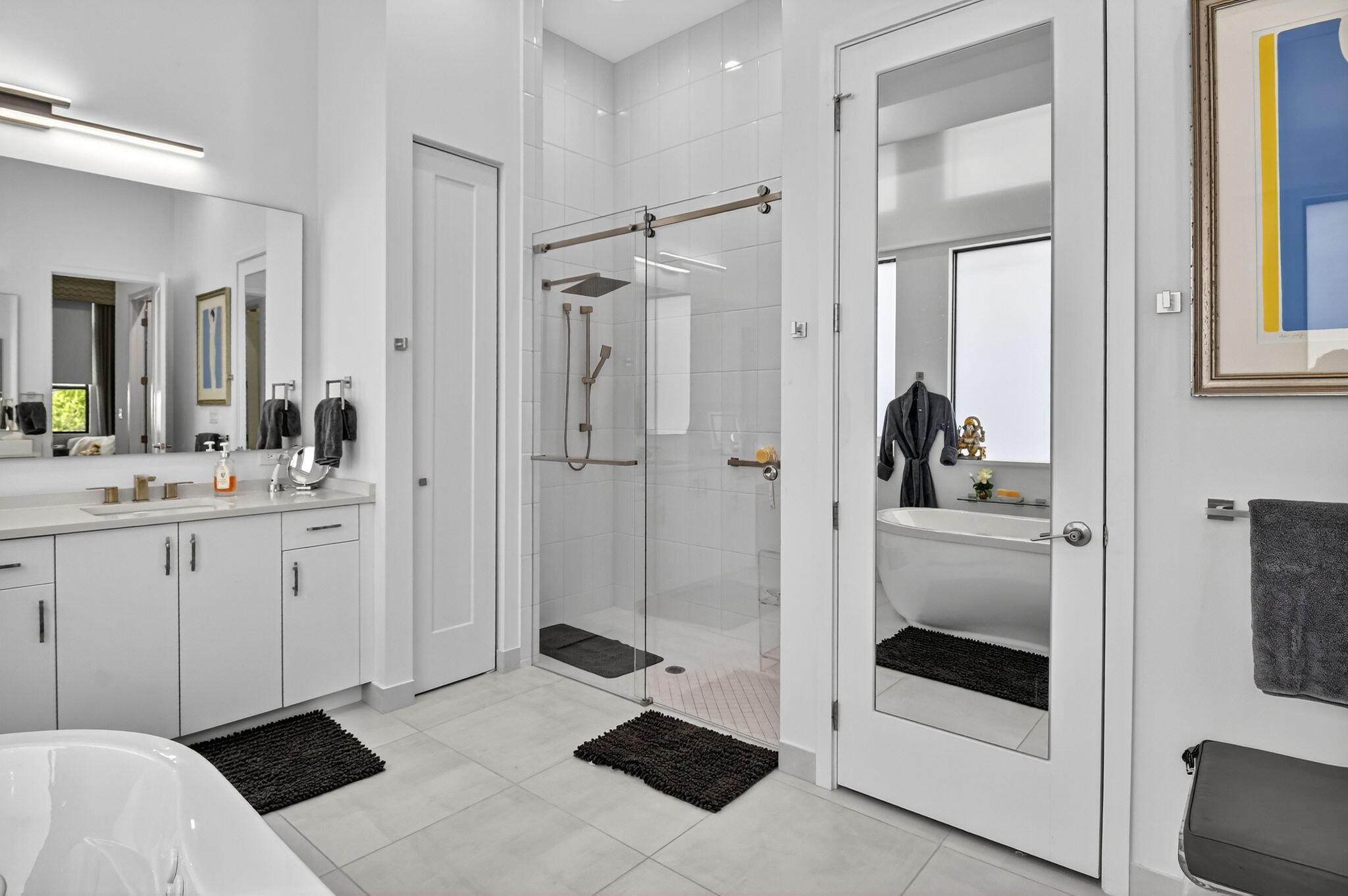 Fully furnished and beautifully decorated one-story home, with 3-bedrooms + office and quiet lake views in Lotus Palm! Barely lived-in Bermuda model complete with designer window treatments, electric shades throughout, and full-house generator. The interior is light, bright, and open. Eat-in kitchen features an extended waterfall island, built-in coffee bar, and stainless steel appliances, including a gas cooktop and double ovens. Master suite has 2 large custom walk-in closets, and a master bath with 2 sinks, large shower, custom stand-alone tub, and touchless commode. All guest bedrooms are ensuite with built-out closets. Outside, the backyard features a pool with spa, entertainment area, and stunning lake views.