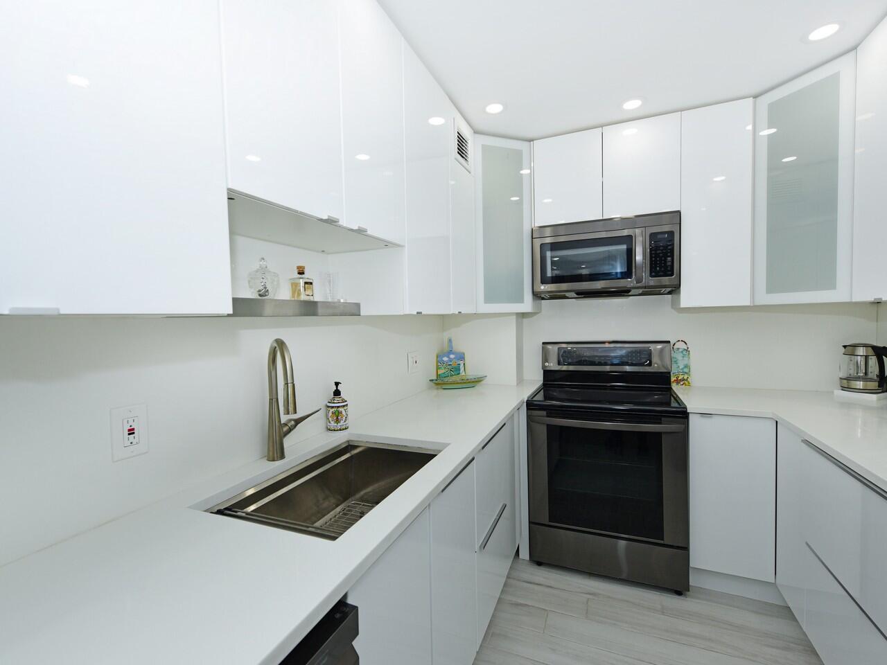 Very Chic spacious 2 BR, 2 full BA condo end unit on the 6th floor w/floor to ceiling sliders to enjoy the direct intracoastal views and even a peek at the ocean! Covered parking,YES! Water views from EVERY room! Nice bright high end remodel. Gorgeous quartz kitchen with stainless appliances. Enjoy the boats and sunsets in this unit that has white porcelain tile flooring thru-out the 1,550 sq. ft. of living space.The Patrician is full amenity newly renovated and modernized oceanfront building w/ 24hr door person, resort style pool and BBQ on the ocean deck, gym, club room and more! Live as if you are on vacation all the time. Low carrying costs for tenants! Internet, wifi, basic cable, water and hot water are all included and there is a main chiller on the roof to keep A/C costs very low.