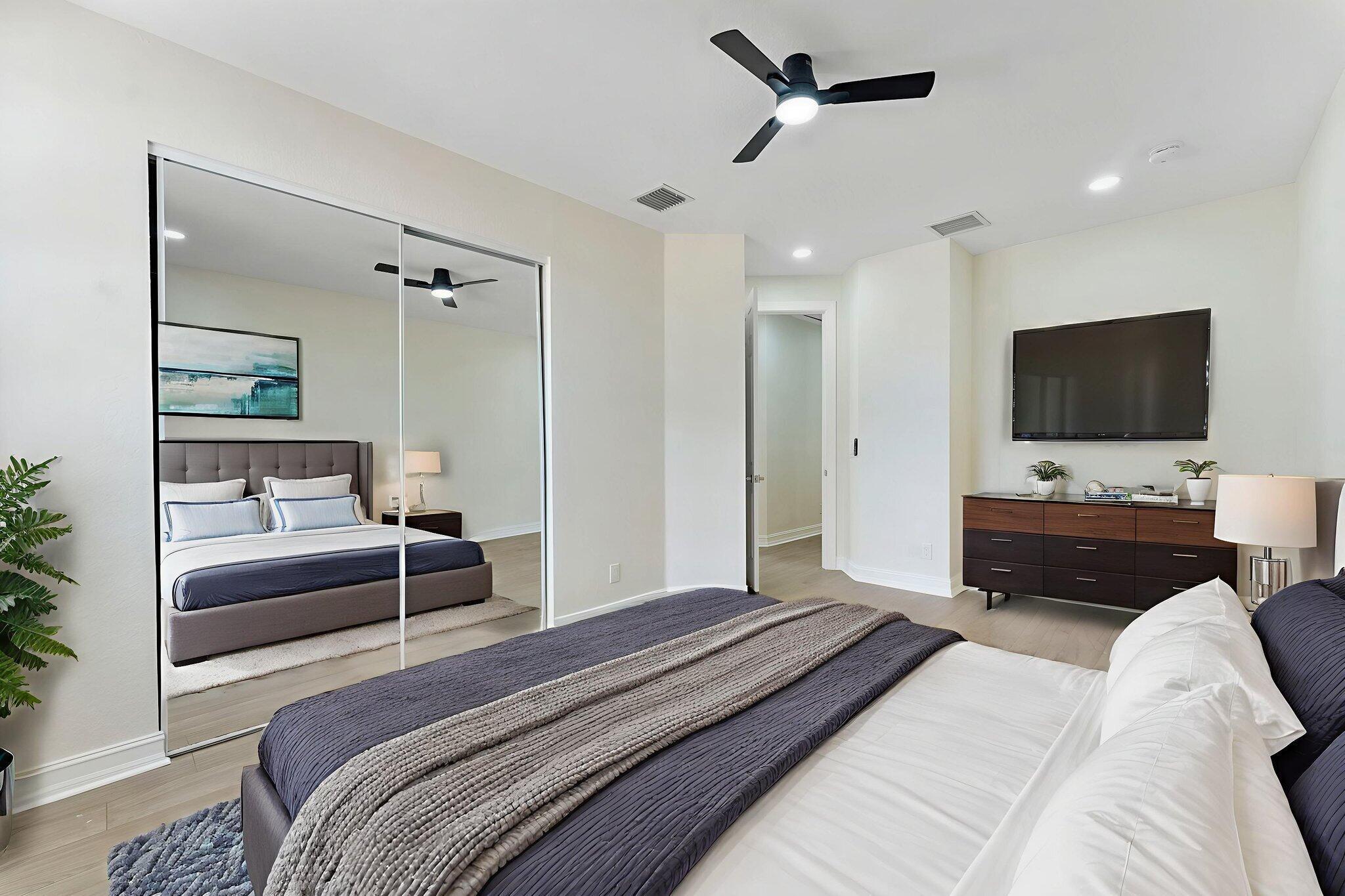 Located in an upscale boutique community of just 39 homes built by Lennar in 2007, this beautifully updated residence offers 5 bedrooms plus an office, 4 full bathrooms, and a spacious 3-car garage. Designed with both elegance and functionality in mind, the home features impact windows throughout, soaring volume ceilings, and a bright, open floor plan. The entire interior has been freshly painted, with brand-new vinyl flooring installed in all bedrooms and across the entire second floor. New lighting fixtures and ceiling fans have also been added throughout the home to enhance its modern appeal. The first floor includes two bedrooms with full bathrooms one of which is the luxurious master suite as well as a separate office, while the second floor hosts three additional bedrooms and two