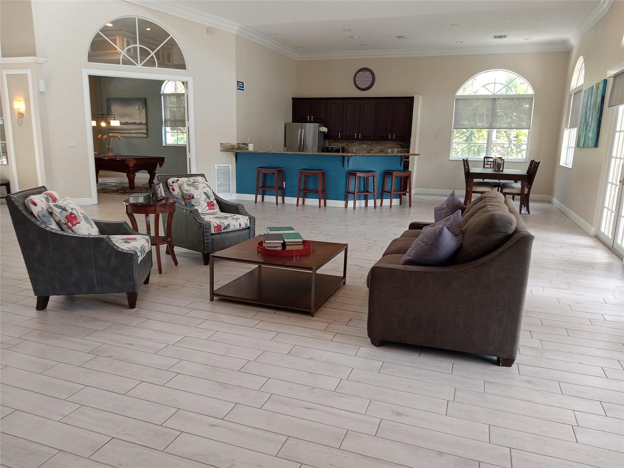 Available December 30th. Showing between 9.30 am and 1:30 pm daily. Gorgeous 5-bedroom, 2 1/2 bath upgraded lakefront home. Open floor plan. Large master bedroom on the ground floor, two walk-in closets. The master bath has a Jacuzzi tub and a separate stand-up shower. His & her sink. Separate formal living area, family room, and dining area. Crown moldings, wall moldings, as well as beautiful chandeliers & custom window treatment. Kitchen updated with w/granite counters & custom wood cabinets. A/C June 2021. Features ceiling fans & hurricane accordion shutters. A paved patio overlooks the lake. This 24-hour guard-gated community offers amenities, including a pool, tennis court, gym & kids' play area.