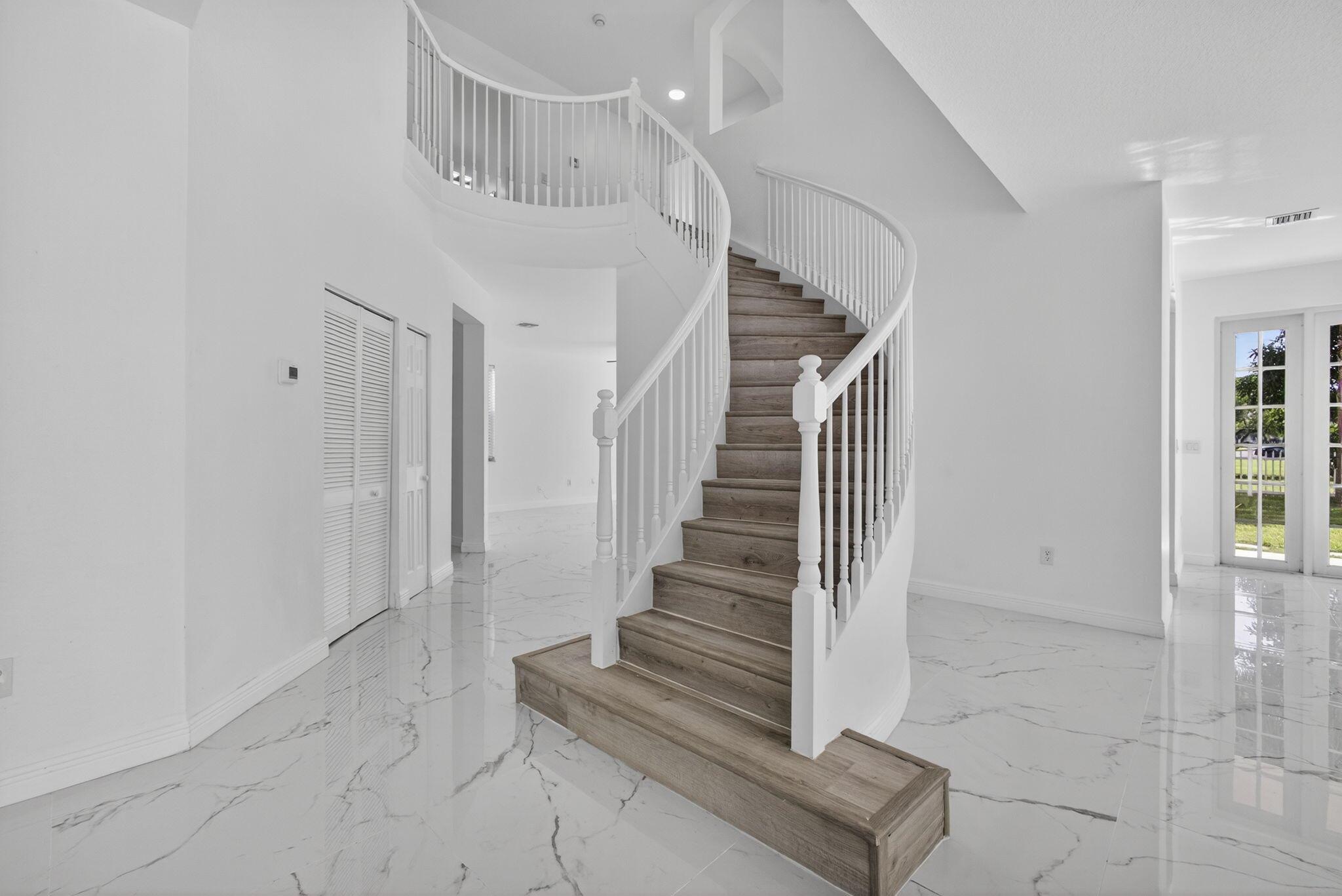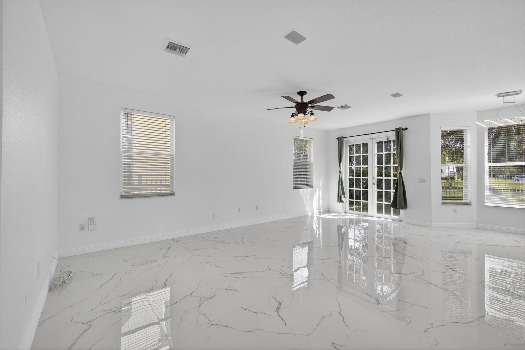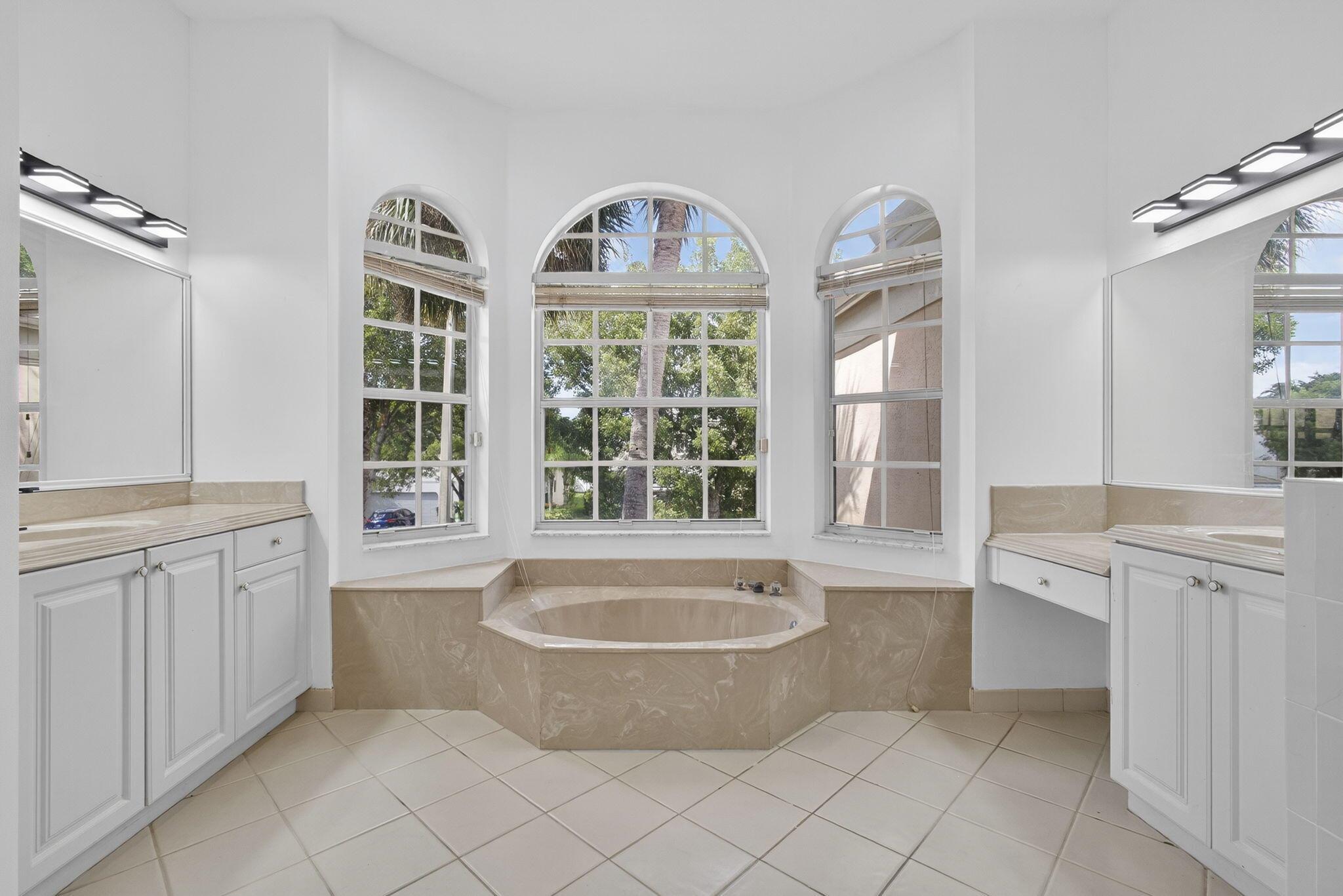 Beautiful two story 5 bedroom home with over 3038 sf overlooking M1 Canal in the gated community of Madison Green. high ceilings, NEW porcelain tiles for ground floor and new laminate wood for 2nd floor . The entire house has been painted like new, with modern LED lighting. French Doors; Huge fenced backyard and you can dock your boat in the deep canal in the backyard. This Community includes golf, resort style clubhouse, state of the art fitness center, tennis ,pickleball, basketball courts, children' playground, kids pool with fountain, resort pool and spa. Close to A rated schools, and a short drive to to PBIA airport, downtown West Palm Beach and Wellington Green Mall. The Links at Madison Green offers daily greens fees and no equity required. Preferred Basic cable & internet