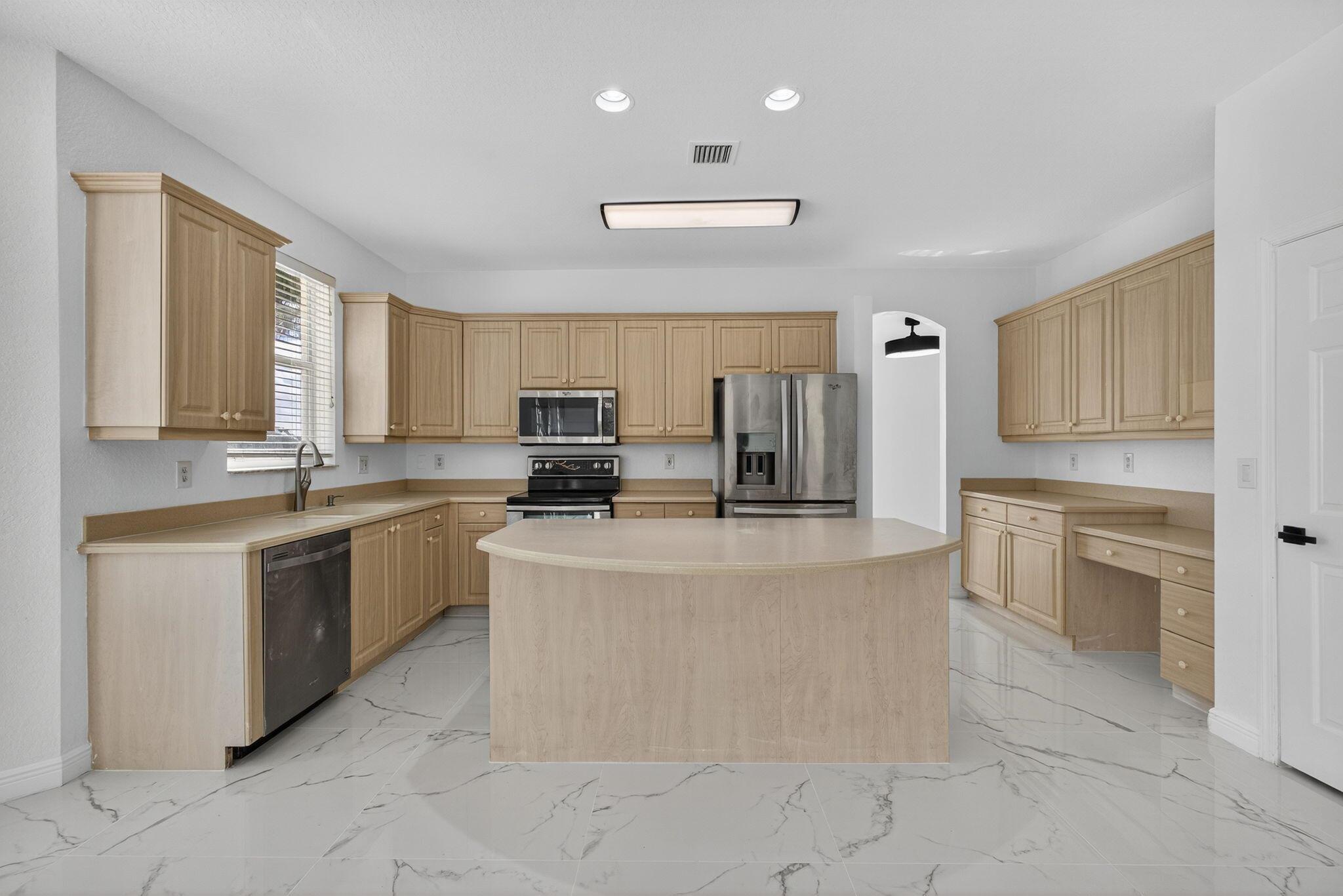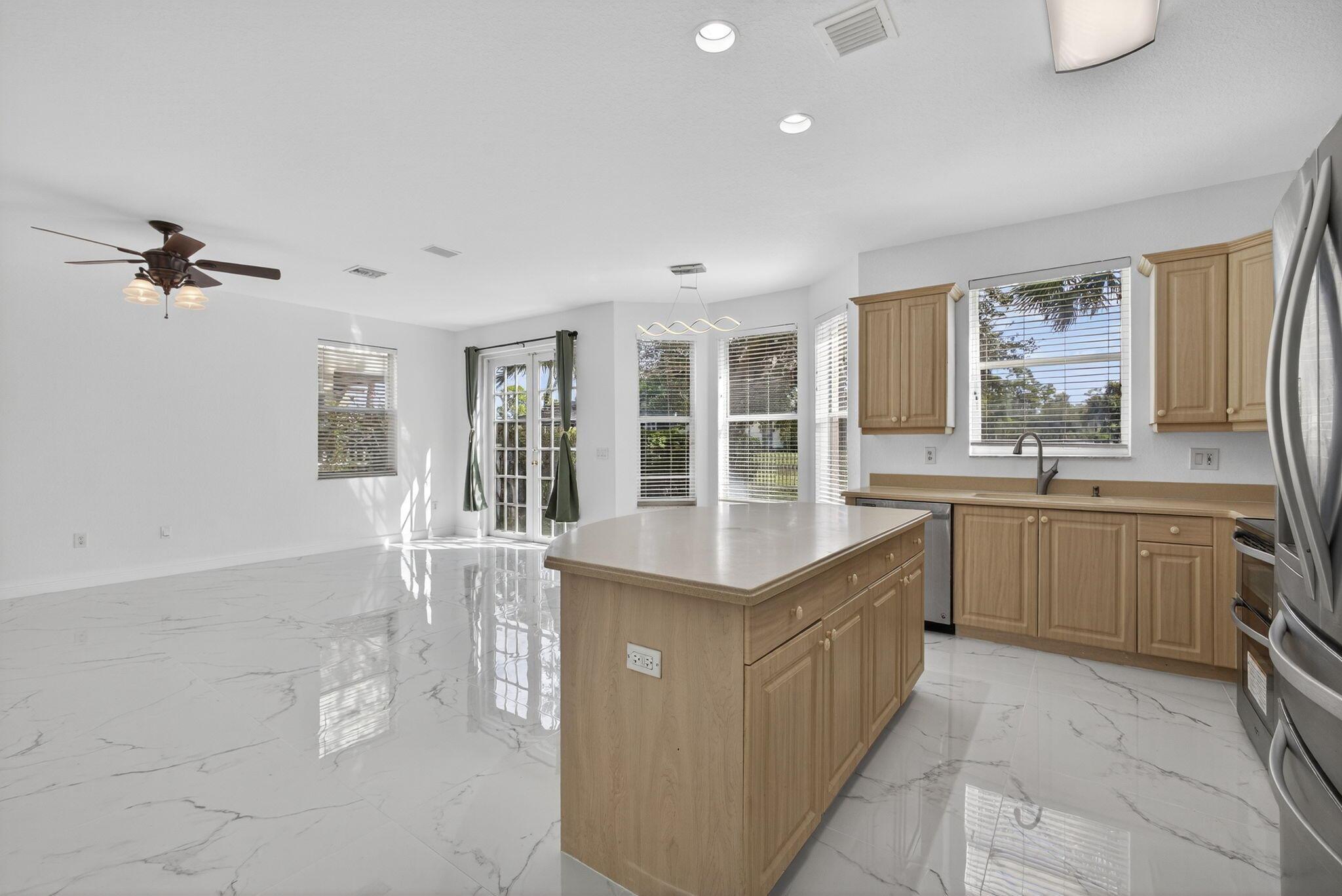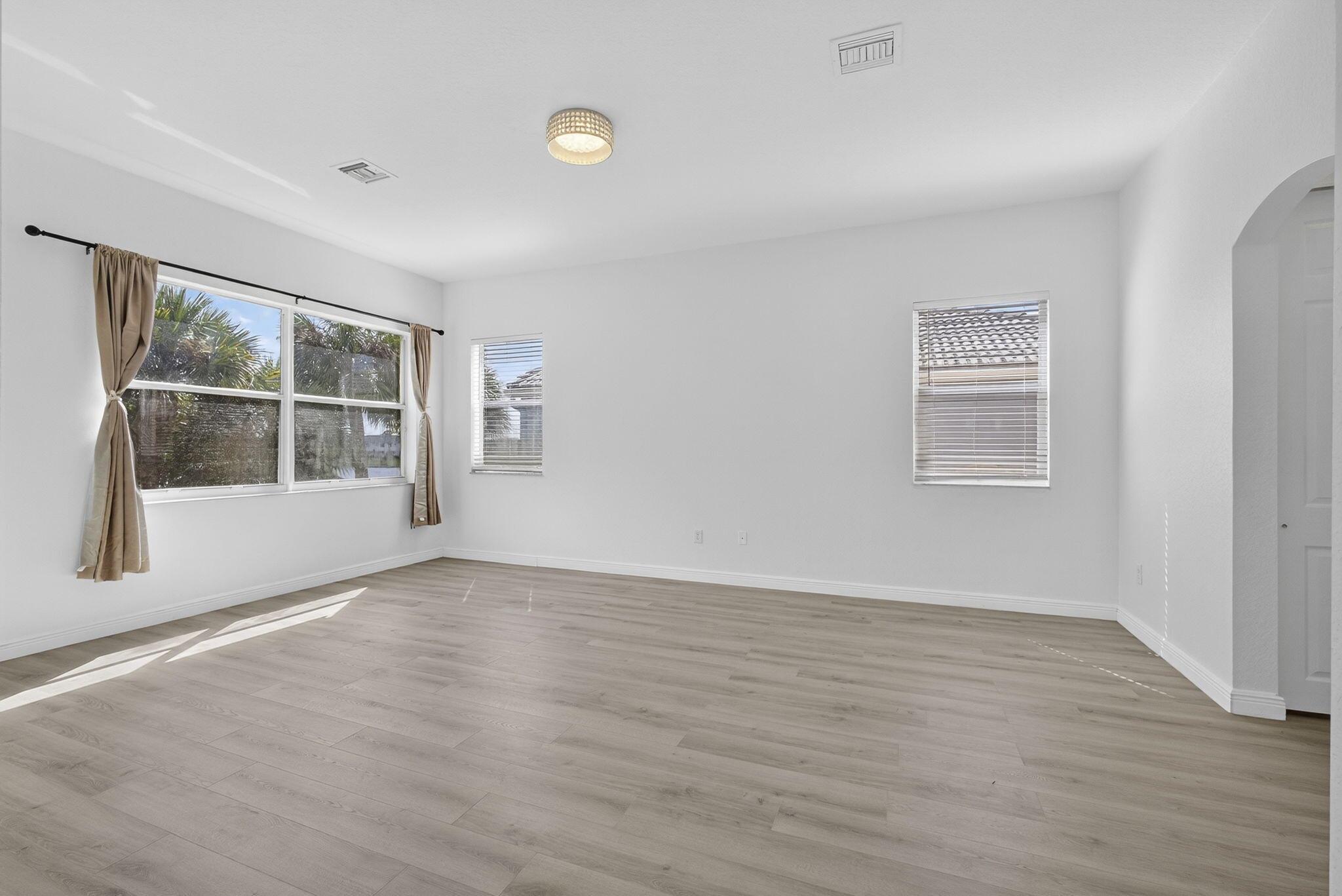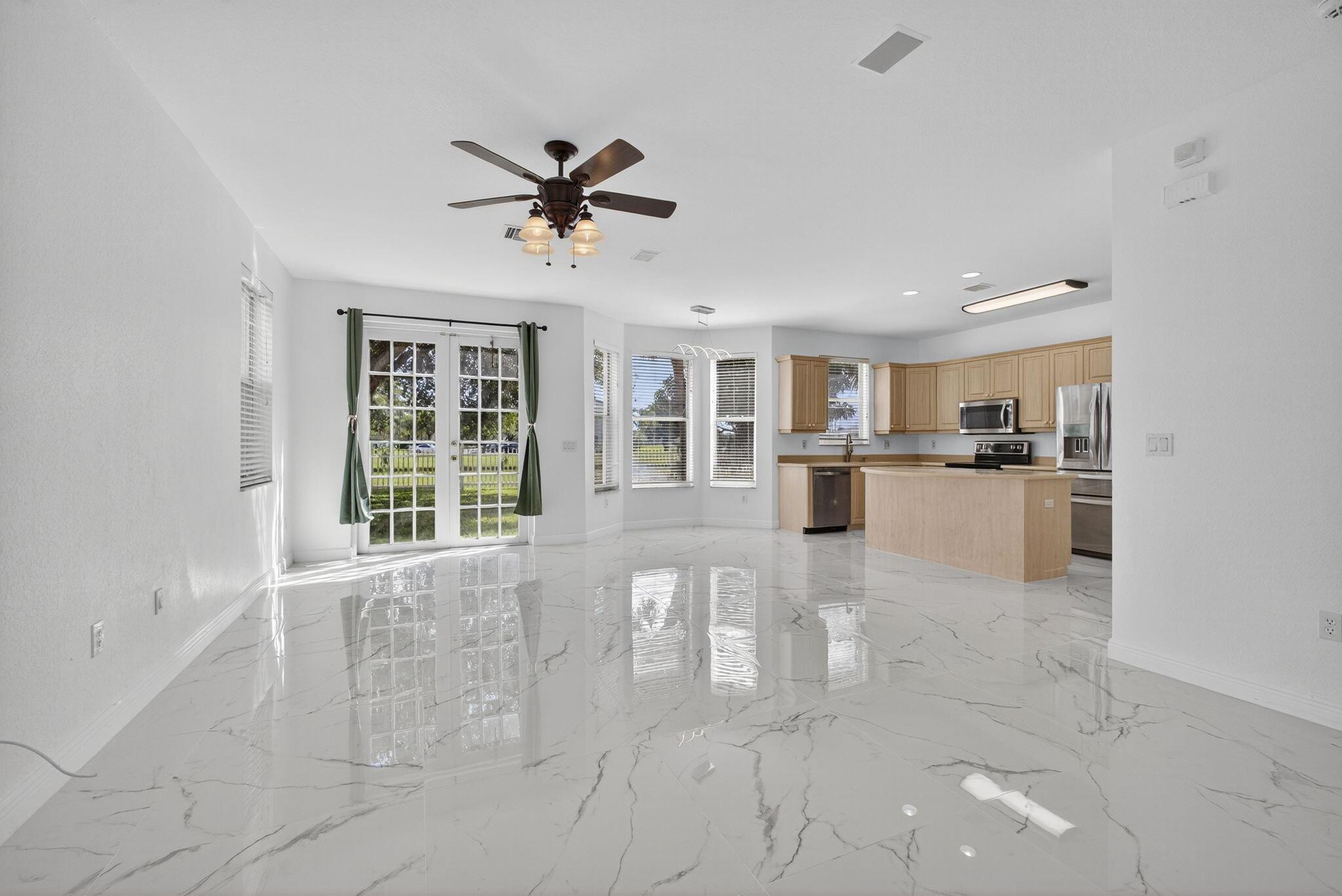 Beautiful two story 5 bedroom home with over 3038 sf overlooking M1 Canal in the gated community of Madison Green. high ceilings, NEW porcelain tiles for ground floor and new laminate wood for 2nd floor . The entire house has been painted like new, with modern LED lighting. French Doors; Huge fenced backyard and you can dock your boat in the deep canal in the backyard. This Community includes golf, resort style clubhouse, state of the art fitness center, tennis ,pickleball, basketball courts, children' playground, kids pool with fountain, resort pool and spa. Close to A rated schools, and a short drive to to PBIA airport, downtown West Palm Beach and Wellington Green Mall. The Links at Madison Green offers daily greens fees and no equity required. Preferred Basic cable & internet