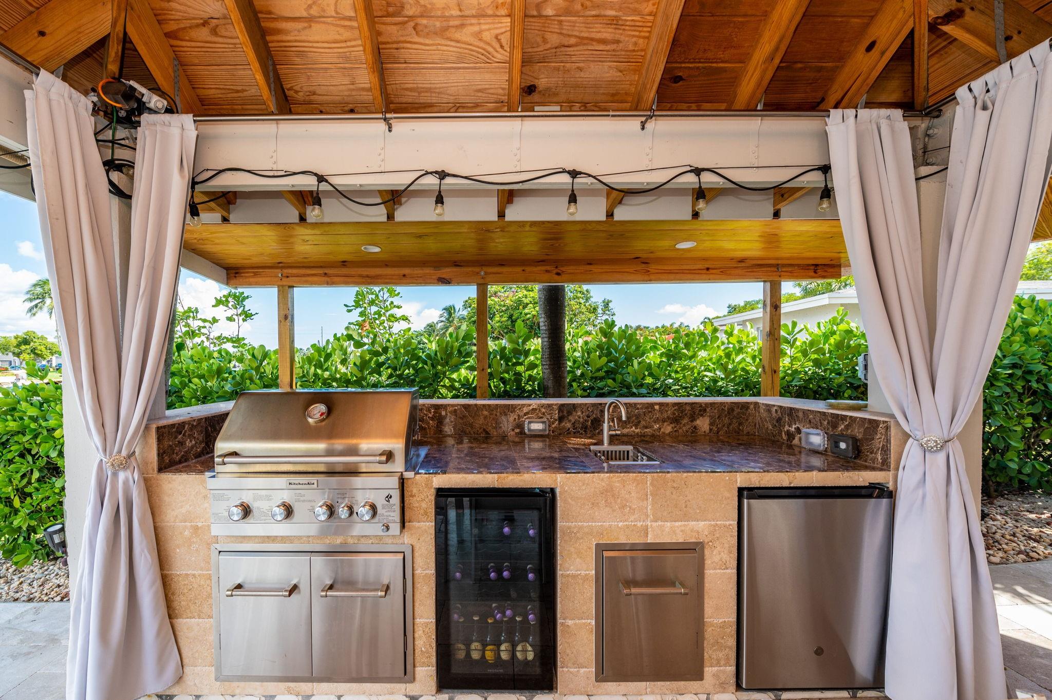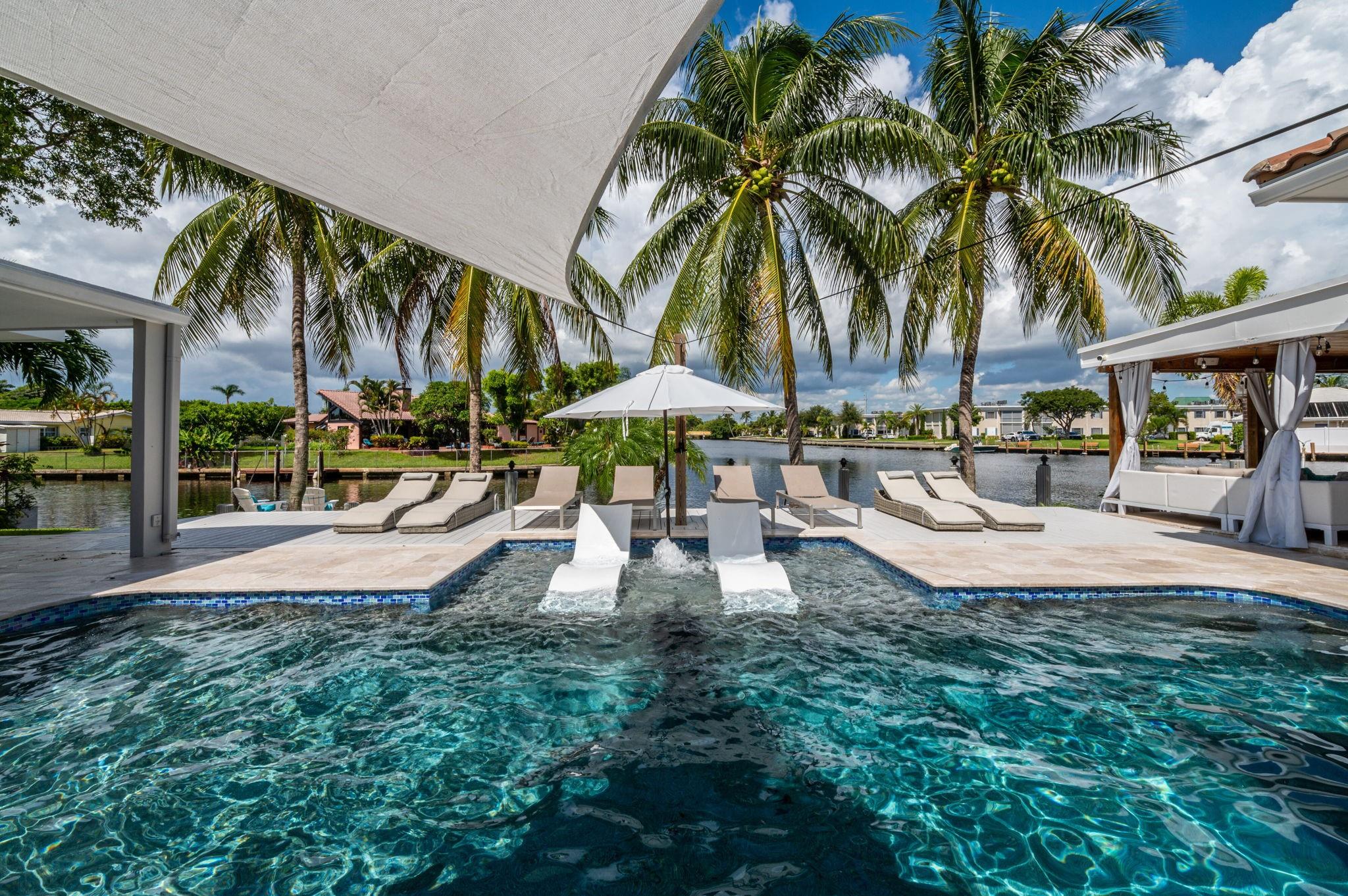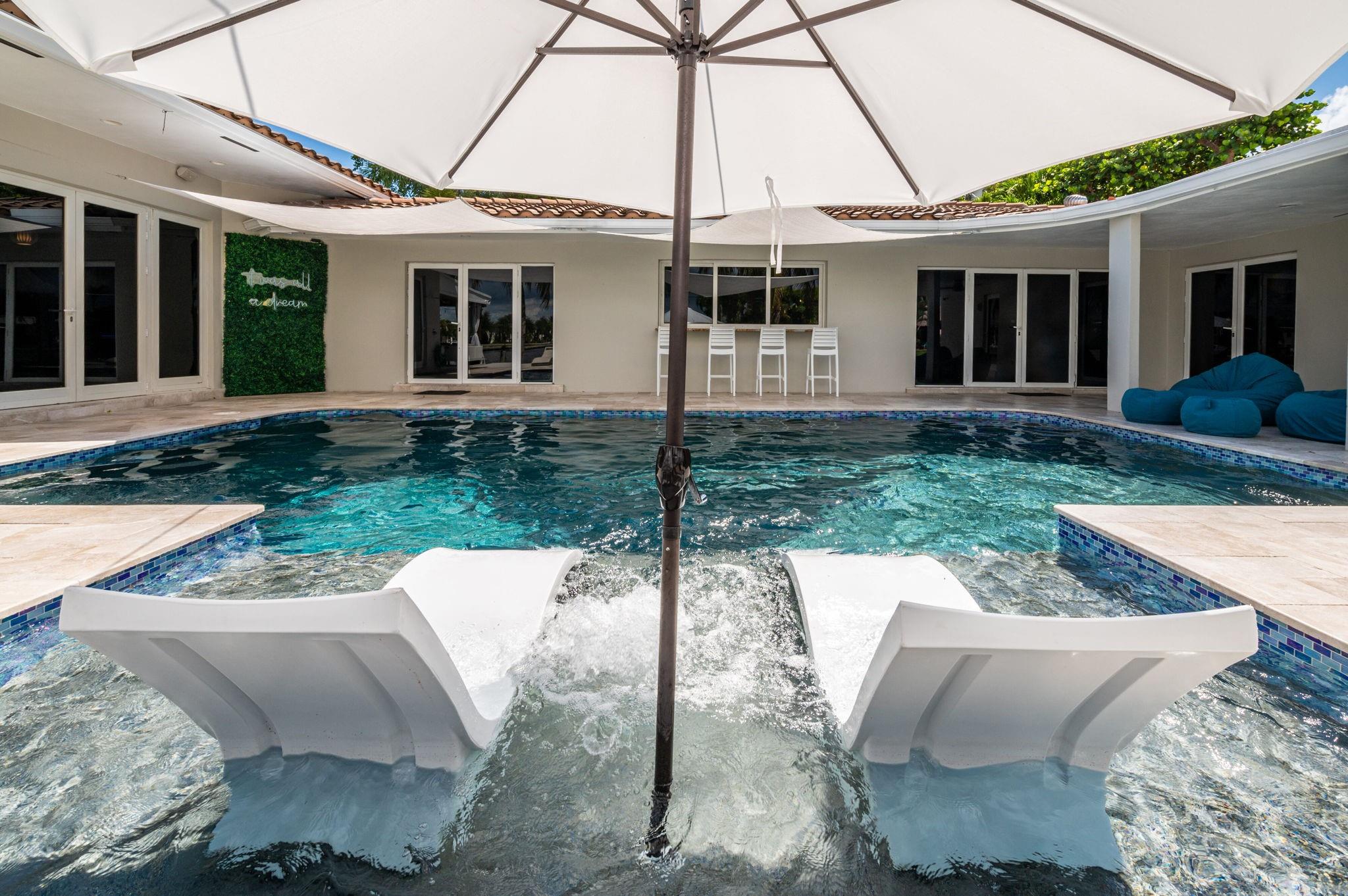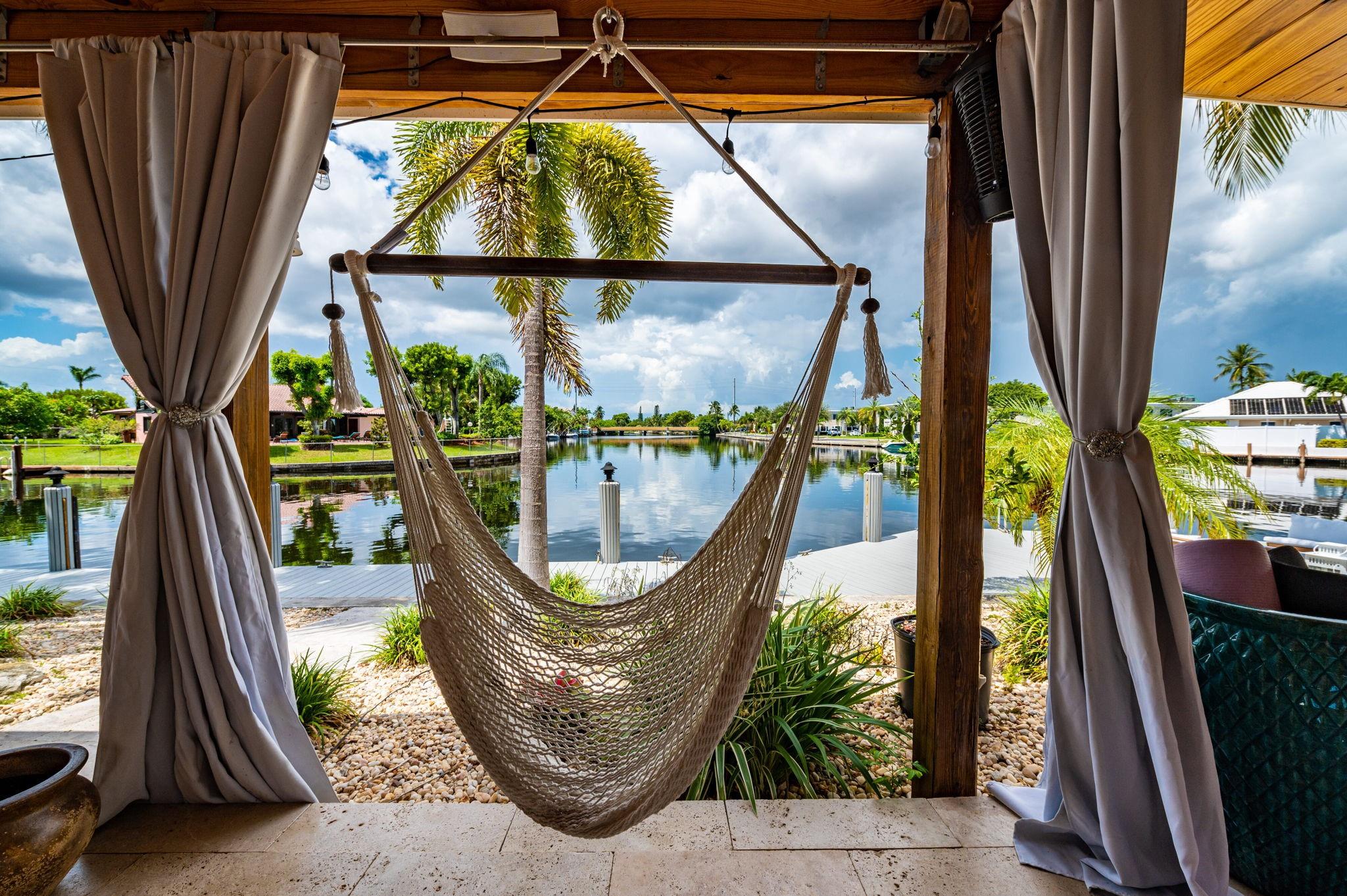 CUSTOM-BUILT WATERFRONT MASTERPIECE – Recently renovated 5-bedroom, 3.5-bath home with 2-car garage on a private cul-de-sac. This one-of-a-kind residence offers approx. 3,200 sq. ft. under air and 140 feet of waterfront with a 120-ft dock w/water & electric, providing space for a large boat and jet skis. Enjoy wide-water views, impact windows & doors, and an entertainer’s backyard with a heated pool, hot tub, summer kitchen, wet bar, tiki hut, gazebo, fire pit & covered patio..Perfect for gatherings or relaxed coastal living. Inside features an open layout, modern finishes, oversized beverage fridge, primary suite with a w/built-in bar. A true entertainment paradise where luxury meets waterfront lifestyle.- Property is available for Seasonal Rental as well as Annual