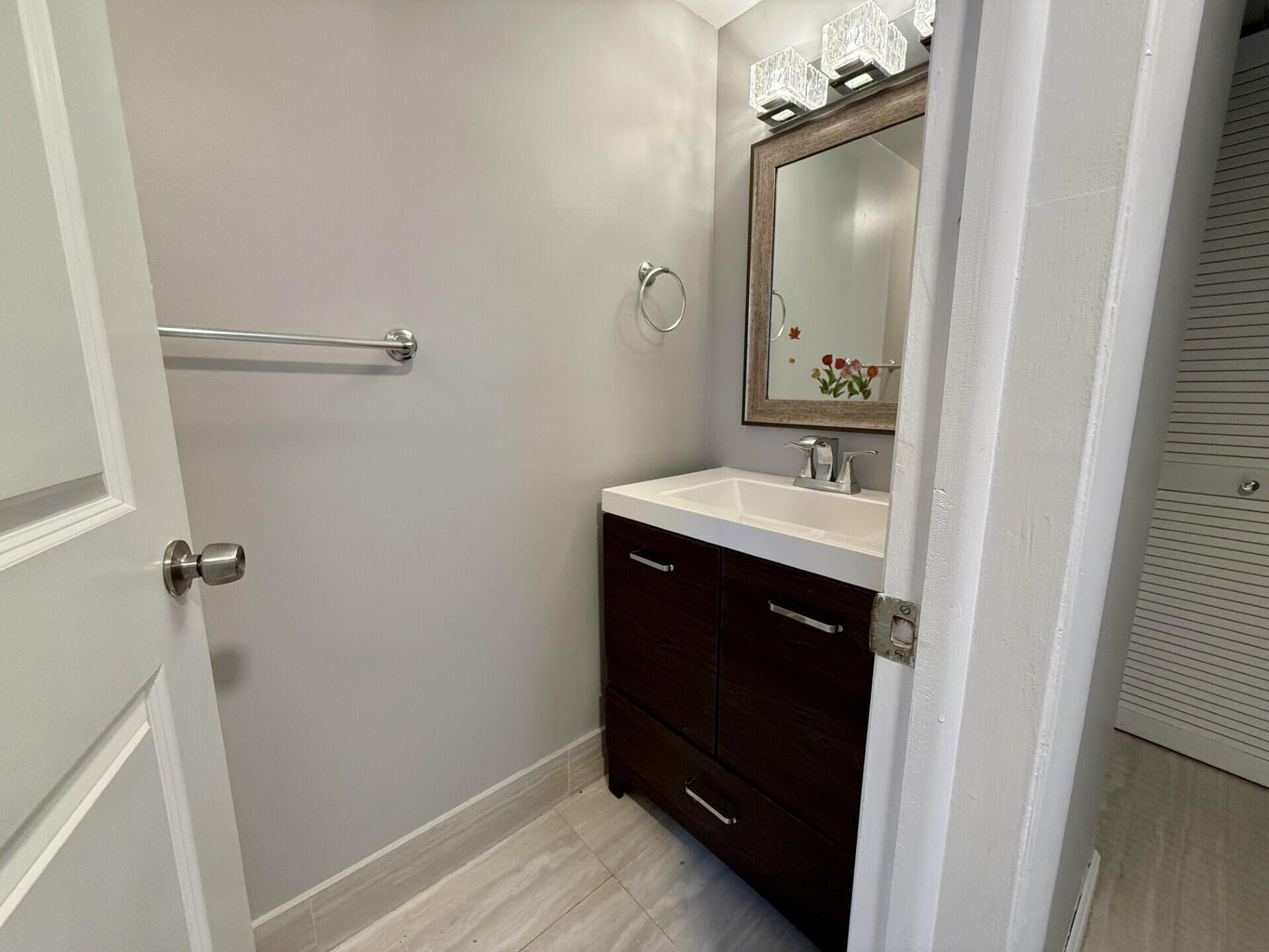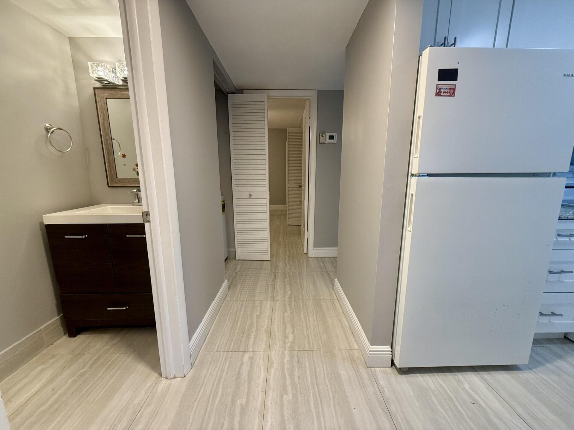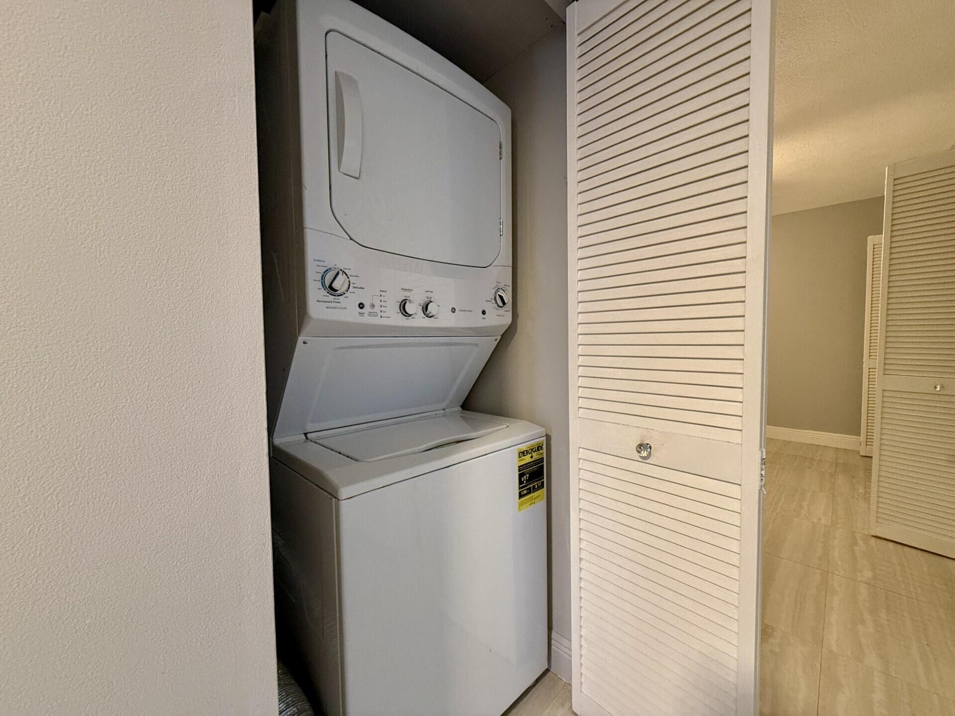 Stunning, 1st floor unit with your own private patio paradise. This amazing unit features gleaming, ceramic tile floors, updated kitchen and baths and central air conditioning. A washer and dryer in the hall closet completes this wonderful unit. Spacious Bedroom Suite With Wall of Closets and Full Ensuite Bath. Complete hurricane shutters for your protection. Freshly painted & ready for you to enjoy all that Century Village has to offer! Century Village Is A 55+ Community with So Much to Offer..