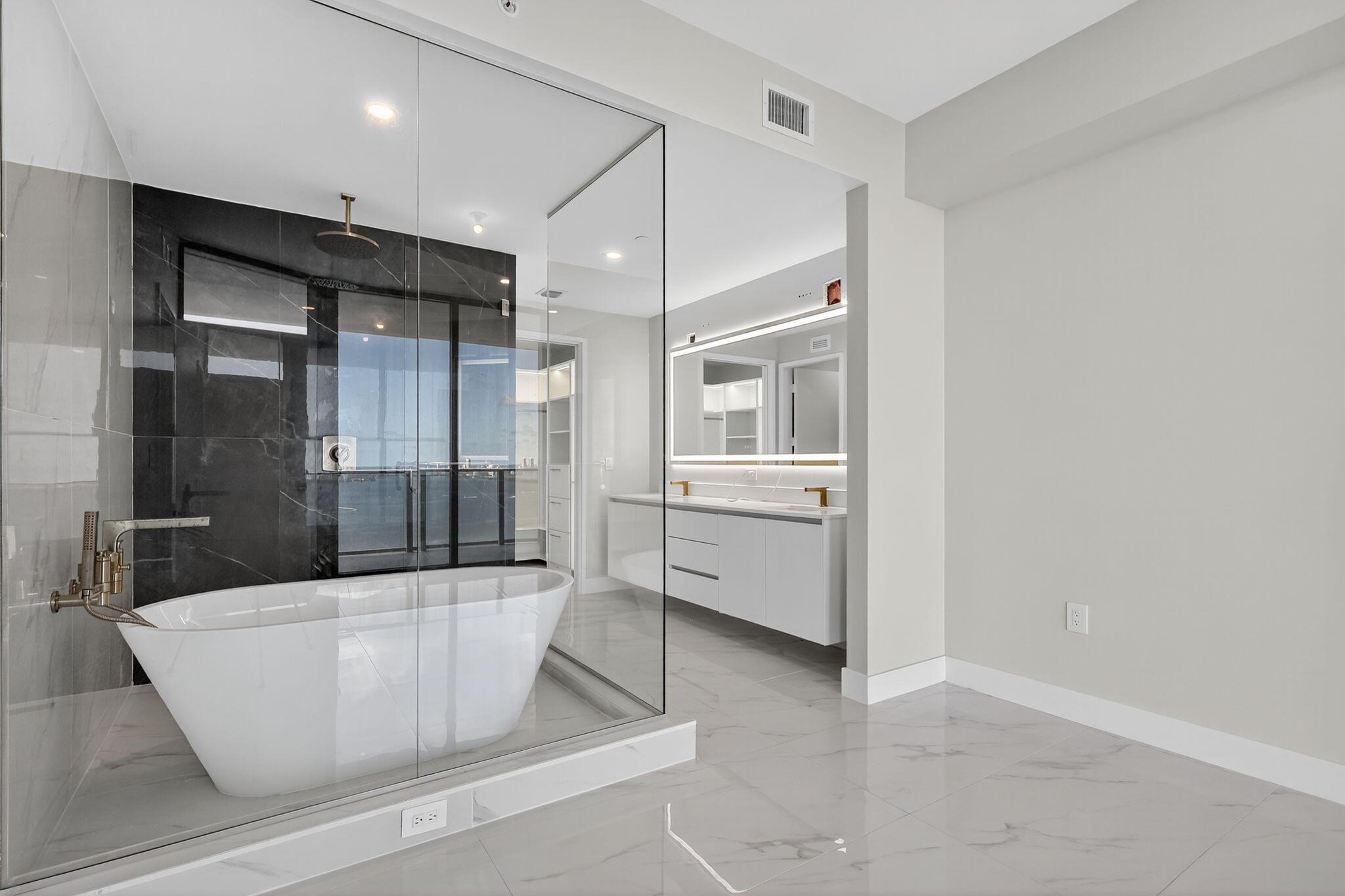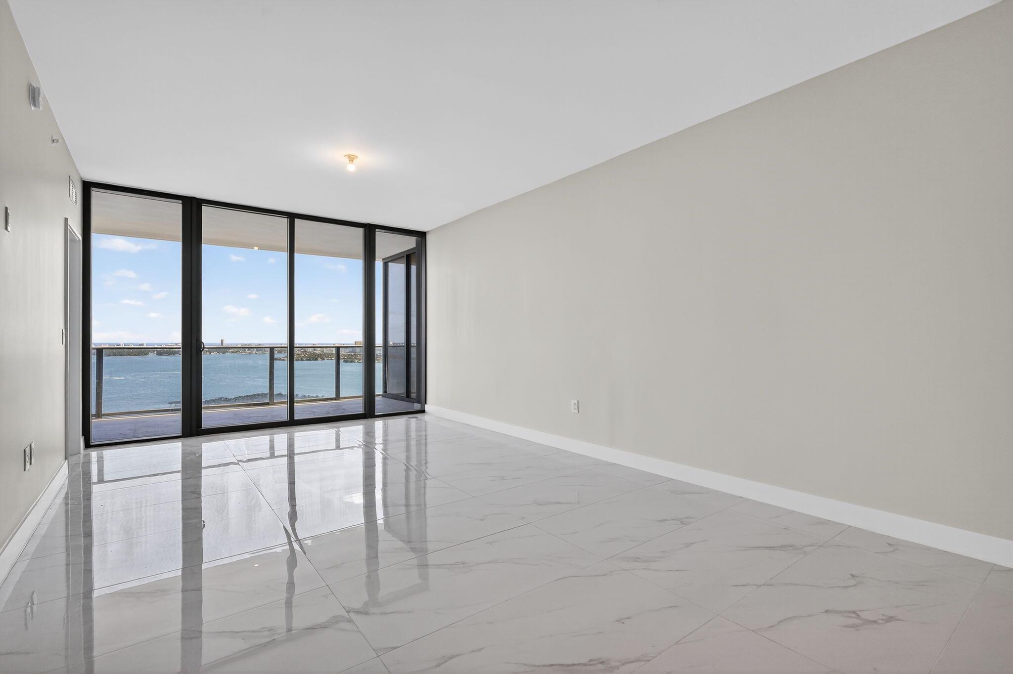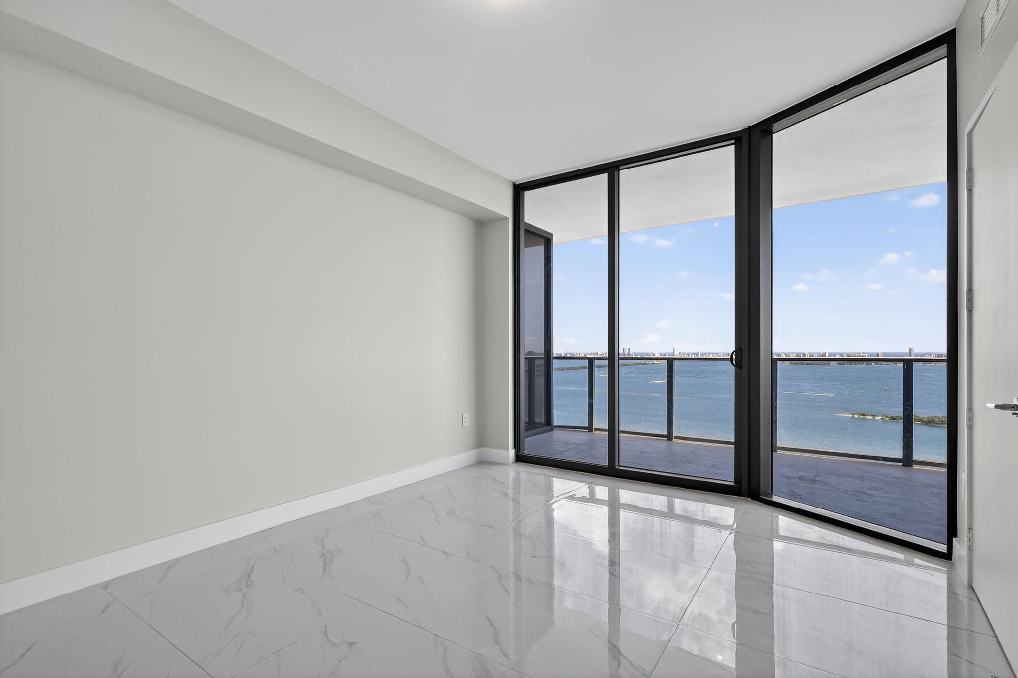 This one's on the 30th floor : higher, brighter, and with that full bay view everyone asks for. Offered furnished at $11,000 or unfurnished at $10,000. Same clean finishes, but with more light and privacy. Custom closets, drapes, shades, and lighting will be done. Two bedrooms plus office, three baths, one garage, one valet. Move-in ready in two weeks. Amenities are next level: pool, spa, gym, courts, kids' areas, and a private wine cellar. You're right between Midtown, Wynwood, and the beach. Visit today!!!