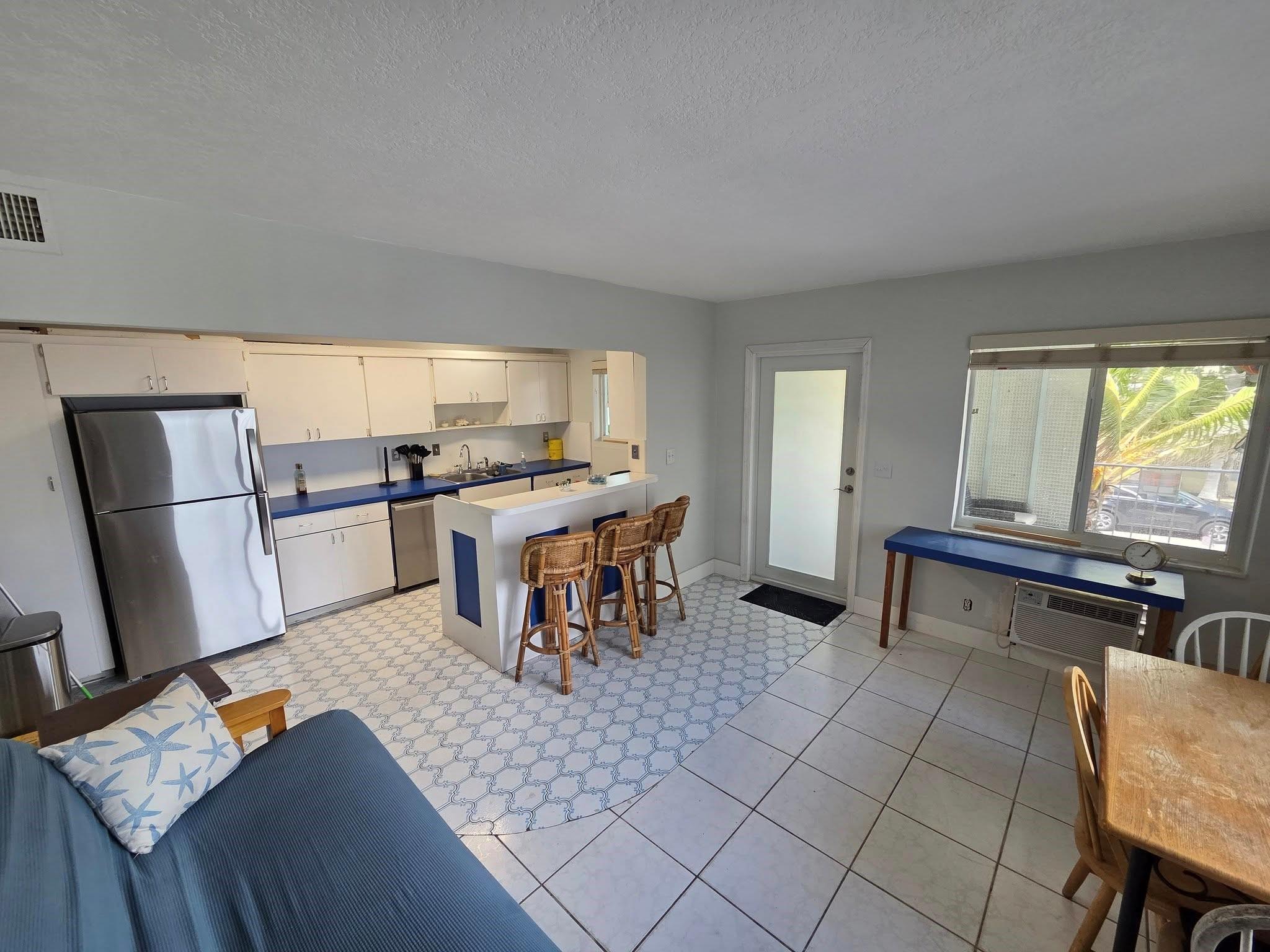 Only 69 steps from the sand! This cozy, fully furnished 1-bedroom 1 remodeled bathroom beach apartment is HUGE-Beautiful Beach View from Bedroom, Living Rm, Kitchen+Porch-comes with everything you need to enjoy the Hollywood Beach lifestyle. Annual lease, Furnished & move-in ready, ALL utilities included: electric, water/sewer, WiFi, 1 parking spot, Laundry, Pets OK! Enjoy a private enclosed balcony on the 2nd floor with seating and table!. Plus, a shared patio with a barbecue grill makes every day feel like a vacation. Prime location: between Johnson St & Hollywood Blvd, east of A1A-minutes to I-95 & walking distance to all the fun on Hollywood Beach Broadwalk. Move-in ready! Long Term=$2700per month/Short Term=$4k per month! . No association approval delays. SIGN & MOVE IN ASAP!