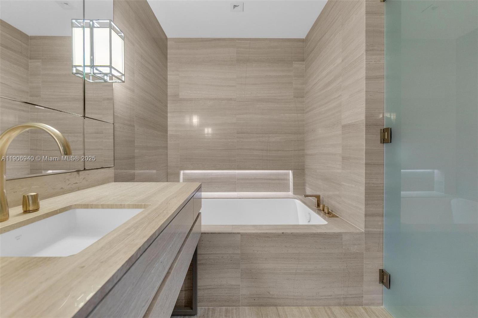 Ultra-Luxury Oceanfront Residence at Armani Casa. Experience unmatched coastal elegance in this flow-through residence offering breathtaking, unobstructed views of both the Atlantic Ocean and the Intracoastal Waterway. Framed by 10-foot floor-to-ceiling glass, the home is bathed in natural light and enhanced by motorized shades for effortless ambiance. This four-room layout features three full en-suite bedrooms plus a large den configured as a fourth bedroom, complete with a bed and privacy door, along with five and a half baths, seamlessly blending comfort, functionality, and refined design. The expansive oceanfront terrace includes a built-in grill, ideal for sophisticated indoor-outdoor living, while the sunset terrace captures stunning bay and city skyline views. The primary suite is a private retreat showcasing direct ocean vistas and a custom walk-in wardrobe, delivering the signature Armani Casa lifestyle of understated luxury and timeless elegance.