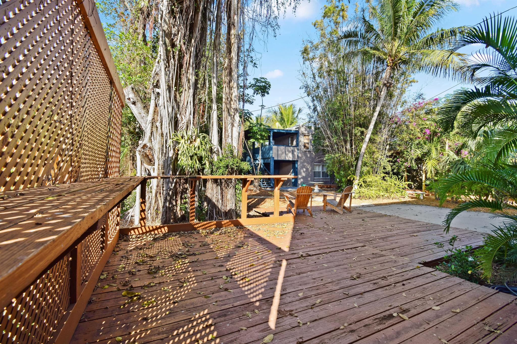 1920's Art Deco home in the heart of College Park with all utilities included! (Electric, water, gas, & trash.)Vintage details like original hardwood floors, roman arches & terracotta mosaic tile floors give the home old world character while the updated kitchen & bathrooms provide modern comfort. Enter the sunny foyer into a spacious living room, dining room, kitchen, and powder room on the first floor. All 3 bedrooms and a full bathroom are upstairs. French doors lead to a large deck overlooking a serene backyard with a walkable labyrinth, pond, bamboo, and mature trees--your private retreat. Centrally located near shops, dining, and the beach. Detached Guest house at rear with separate entrance has tenants.