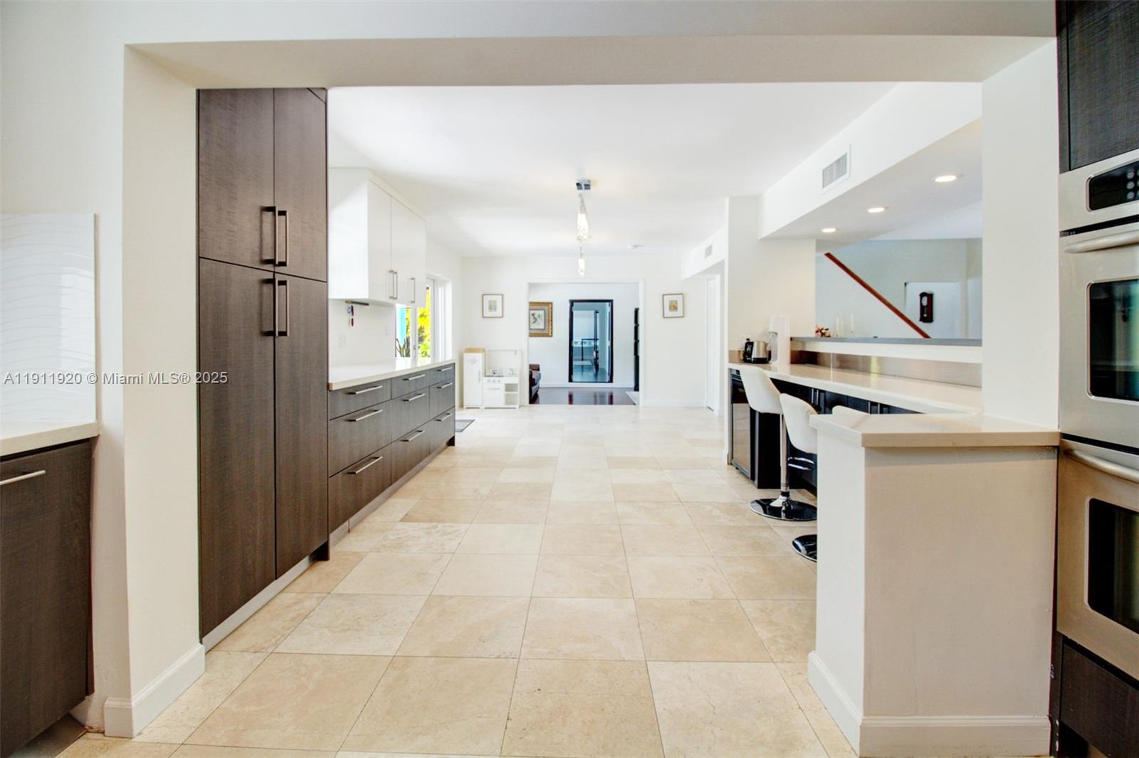 Stylish and sophisticated gated corner estate in prime North Pinecrest on a 30,927 SF lot. Fully expanded and remodeled in 2015, featuring an oversized primary suite with dual walk-ins and spa-like bath, plus a guest bedroom with en-suite on the main level. Sleek kitchen with quartz counters overlooks the lush backyard. Upstairs offers 4 bedrooms and 2 baths. Enjoy resort-style outdoor living with oversized salt and heated pool, spa, covered patio, newly remodeled cabana bath, bar, 2 Tiki huts, and play space for kids and pets. Across the street from Coral Pine Park, tennis courts and playground. A+ schools, easy commute.