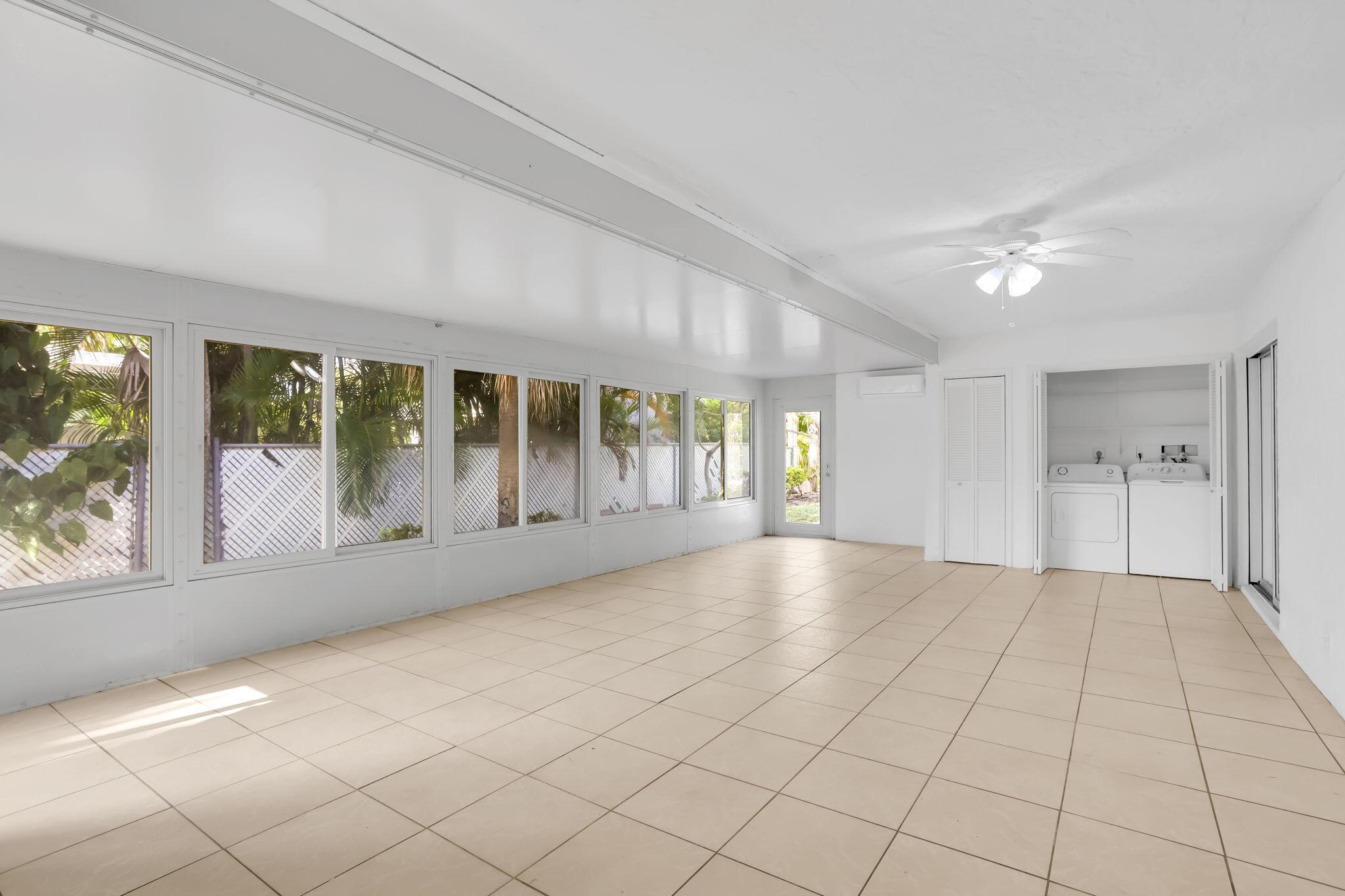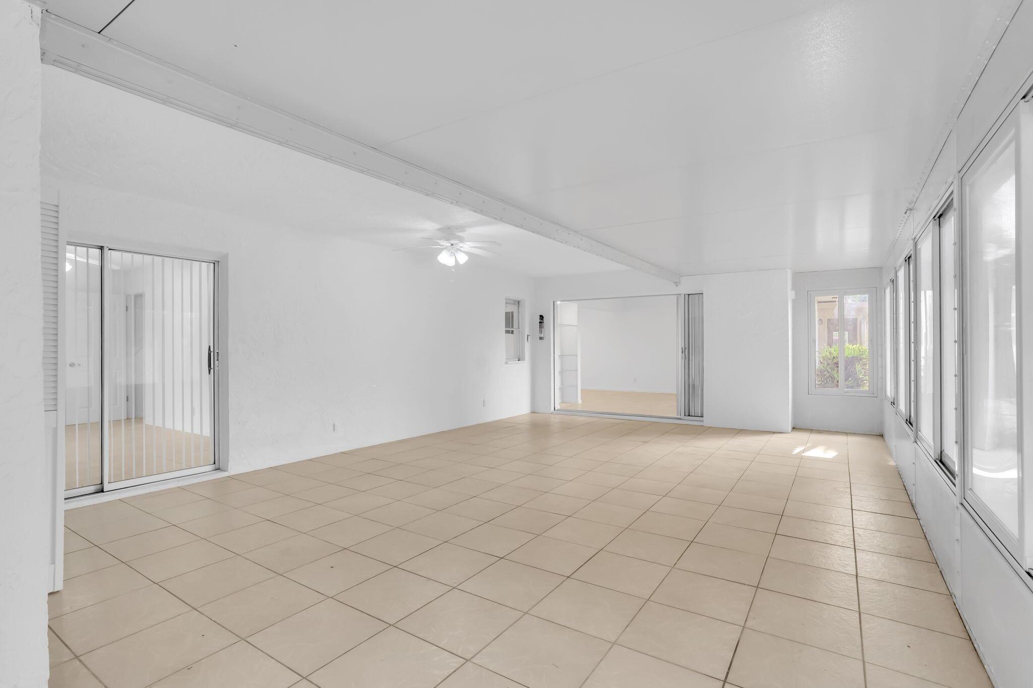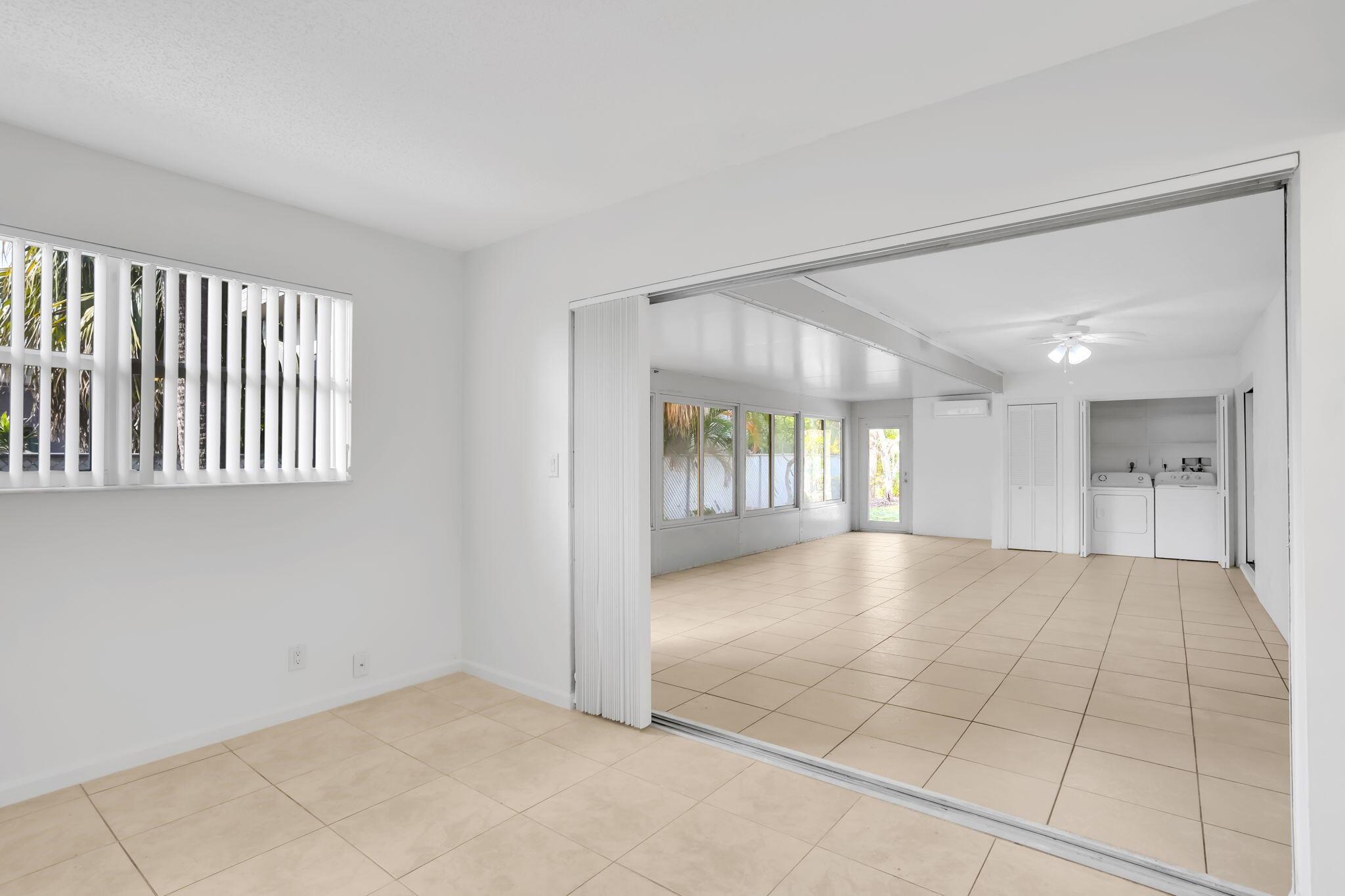 Spacious and spotless 2-bedroom, 2-bath villa in East Boca Raton. This well-kept home features walk-in closets in both bedrooms and 20x20 neutral tile flooring throughout--no carpet anywhere. The interior has been freshly painted, and the home includes an in-unit washer and dryer, updated lighting, and two air-conditioning units, including a newer main A/C. A brand-new mini-split A/C also cools the massive Florida room, making it a comfortable space year-round.The oversized family room is perfect for entertaining, and impact windows throughout offer added peace of mind. Located in the Hidden Valley area, you'll be minutes from Delray Beach, I-95, and a variety of shopping and dining options. Comes with two dedicated outdoor parking spaces.