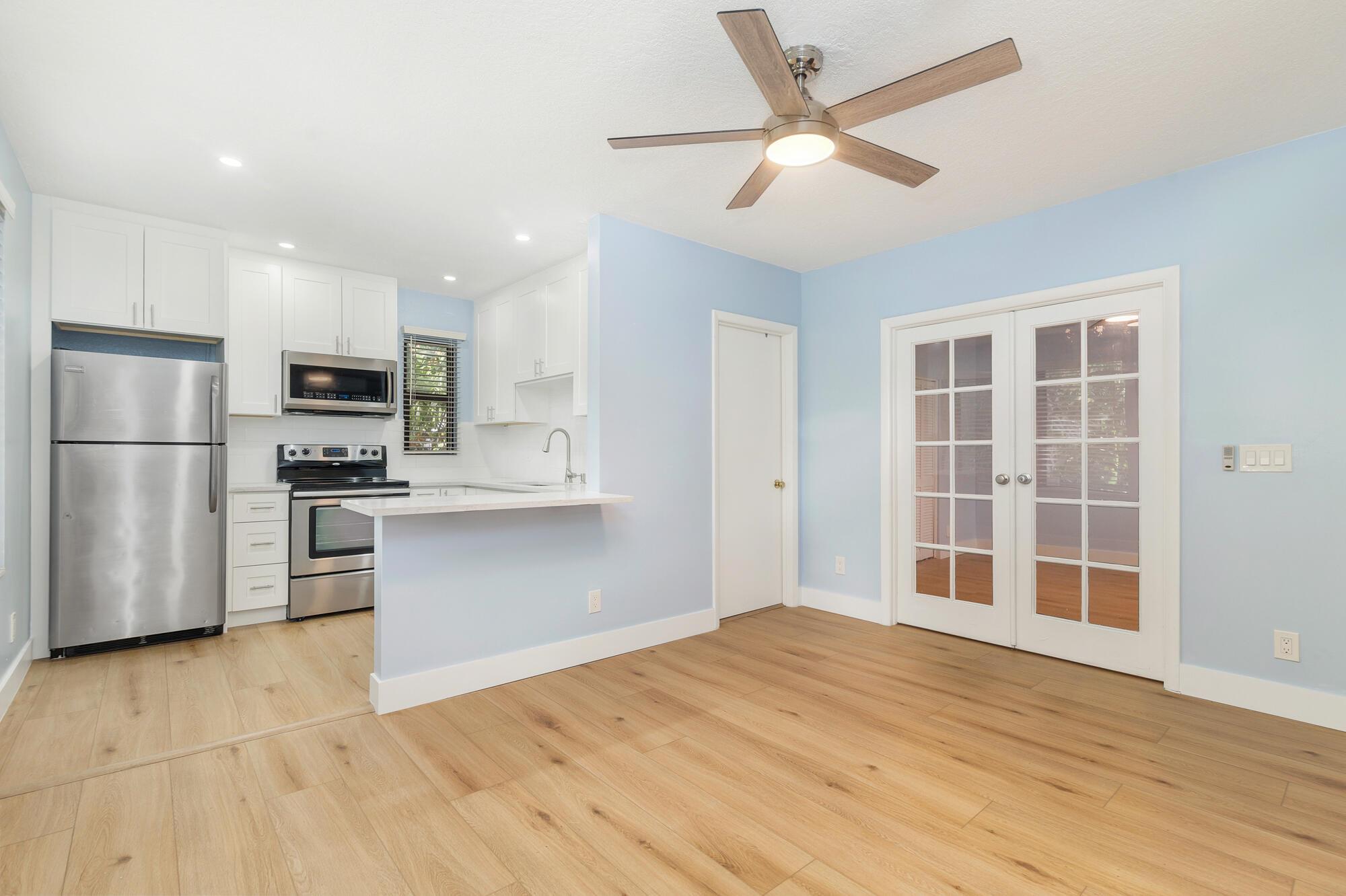 Treetop Retreat in Mango Promenade: Welcome to your own elevated oasis among the palms! This unique 2-bedroom, 1 bathroom apartment is available for an annual, unfurnished lease and blends tropical charm with modern comfort in the heart of West Palm Beach.Step inside this second story apartment home to a bright and cozy living room with warm natural light and leafy views from every window. The renovated kitchen, complete with new white cabinetry, quartz countertops, and stainless appliances has plenty of counter space and everything you need to whip up meals at home.This home has one off street parking space. An additional parking space may be available for $100/month if needed. First, last + 1/2 month security deposit. Water included, but tenant to pay electric.