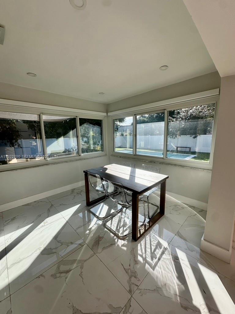 Modern 3-Bedroom, 2-Bath Home with Pool, Custom BBQ & Pergola. Beautifully renovated 3-bedroom, 2-bath single-family home offering the perfect blend of indoor comfort and outdoor living. Located in a desirable neighborhood, the property features a clean contemporary exterior, a covered carport, a spacious stamped concrete driveway, and lush tropical landscaping for impressive curb appeal. Open-concept layout filled with natural light, highlighted by marble-style porcelain flooring, recessed lighting, and a fully updated kitchen with white shaker cabinets, quartz countertops, stainless steel appliances, and an oversized peninsula ideal for entertaining. The outdoor area is a true private oasis complete with a sparkling pool, a custom-built BBQ station, and a stylish pergola designed for shaded lounging and dining.