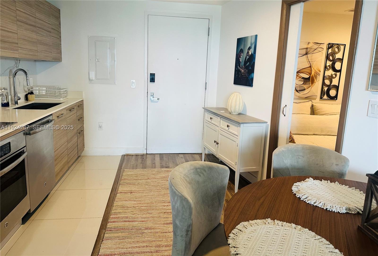 Located in the heart of Midtown, this residence offers top-tier amenities including a resort-style pool deck, fitness center, spa, tennis court, concierge, and more. Although legally a 1-bedroom, the unit features two enclosed rooms plus an enclosed den, each created with added walls and doors. The two rooms by the balcony offer floor-to-ceiling windows and queen beds, while the den has been converted into a small private room with a sleeper and TV—perfect for a guest or single occupant. The unit includes high-quality furniture, electric remote-controlled shades, and in-unit washer/dryer. Hyde Midtown offers an unbeatable walkable location between the Design District and Wynwood, with shops, Target, supermarkets, cafes, and restaurants just steps away. Short-term rentals allowed