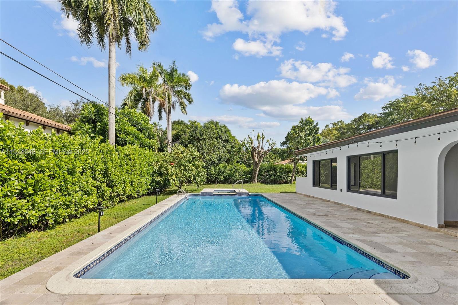 Experience exceptional living in the Golden Triangle of Coral Gables! This lovely home features 3 bedrooms, 3 baths, and a versatile 4th room that can serve as a bedroom, office, or playroom. An oversized 2-car garage, indoor laundry room, and a spacious circular driveway add convenience. Enjoy outdoor entertaining with a covered terrace, complete with an outdoor cook prep area with sink, ice maker, and wine and beverage refrigerator. Elegant patio furniture included. Relax by the oversized saltwater pool or play soccer or throw the ball around in the large yard with mango, avocado and guava trees. Home has impact doors and windows, an alarm system, and exterior Ring cameras. Three mounted TVs are included for your enjoyment. This home is available for lease—experience Coral Gables living at its best! A Very Special Home.