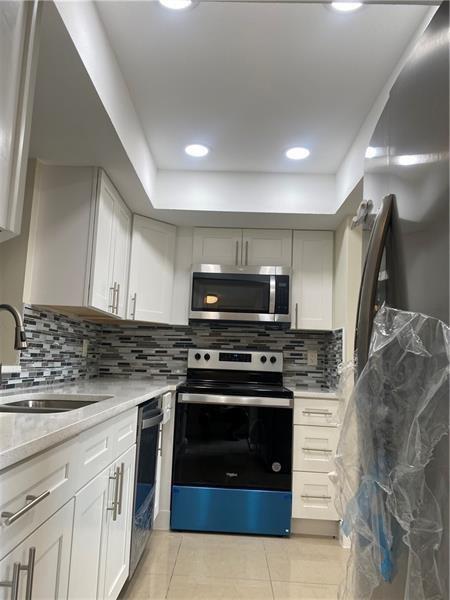 Completely renovated 2 bedroom, 2 bath first floor condo in a great 55+ community on the golf course. This home boast gorgeous porcelain floors, views of the golf course from every window and and the primary has a huge walk-in closet. Updated kitchen with quartz counters and like new stainless steel appliances. Breakfast nook off kitchen with garden and course views. Renovated bathrooms with tile and new vanities. Enclosed patio opens to a great view of the golf course. Association boasts two heated pools, clubhouse, shuffleboard and fitness center within walking distance, full size washer/dryer, and patio closet for extra storage. WILL NOT LAST!