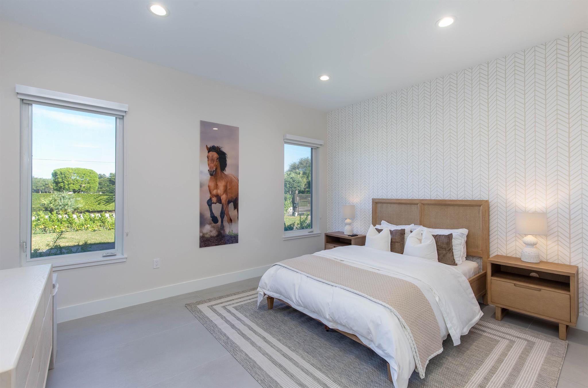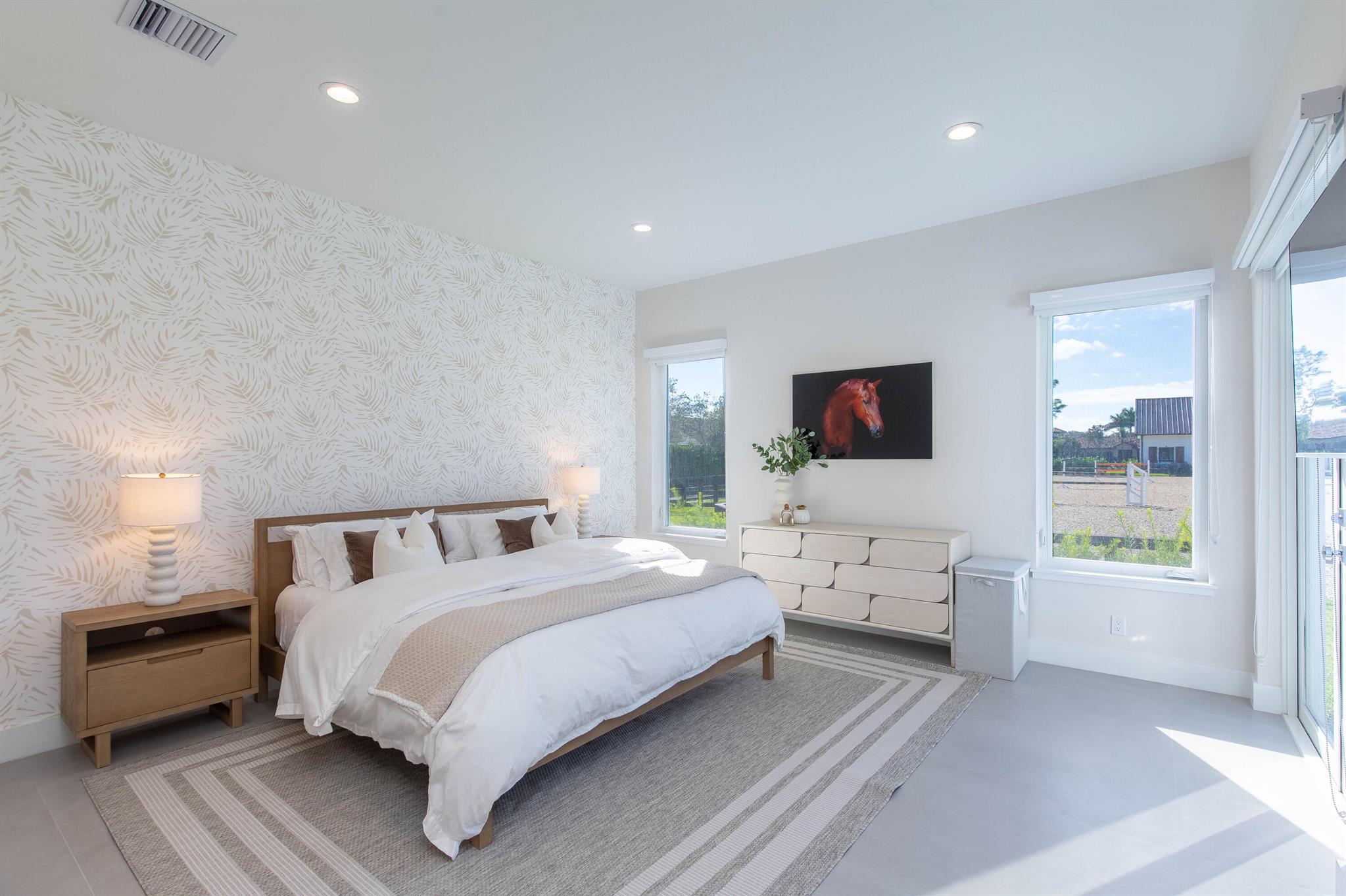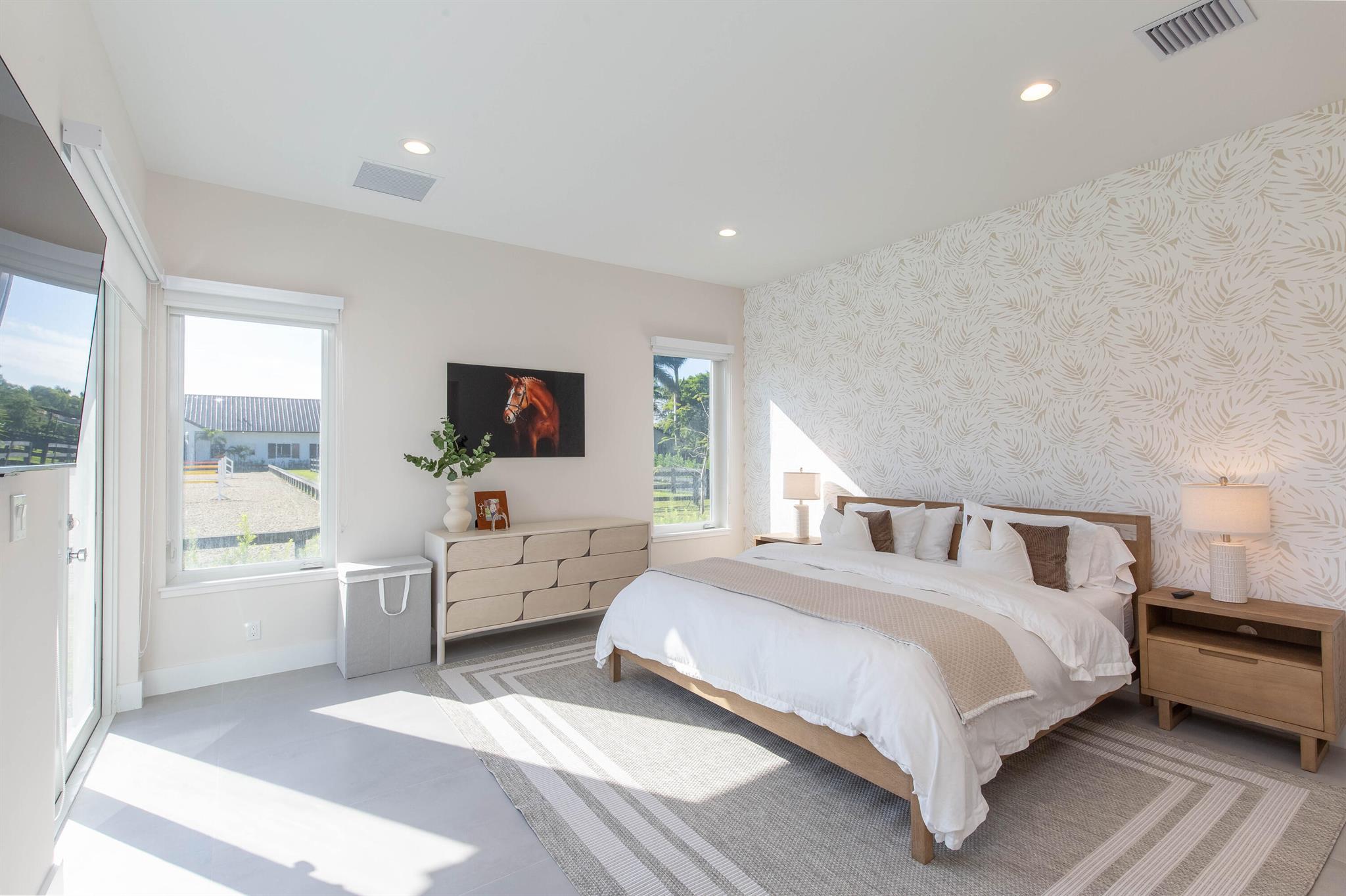 Exquisite seasonal lease in the coveted Saddle Trail neighborhood of Wellington. Modern, 4-bed, 4-bath residence crafted for comfort and convenience, with an expansive open-concept living area and high-end finishes. Each bedroom is large with its own en-suite bathroom. Gourmet kitchen featuring premium appliances, custom cabinetry, and a large island--perfect for entertaining. State of the art brand new 10 stall barn with a tack room, wash racks, feed room, 5 paddocks, and a lounge, all designed for top-tier horse care. Easy hackable access to the horse show, with many riding trails for days off makes for the perfect seasonal retreat! Entire property offered at $45,000 per month.