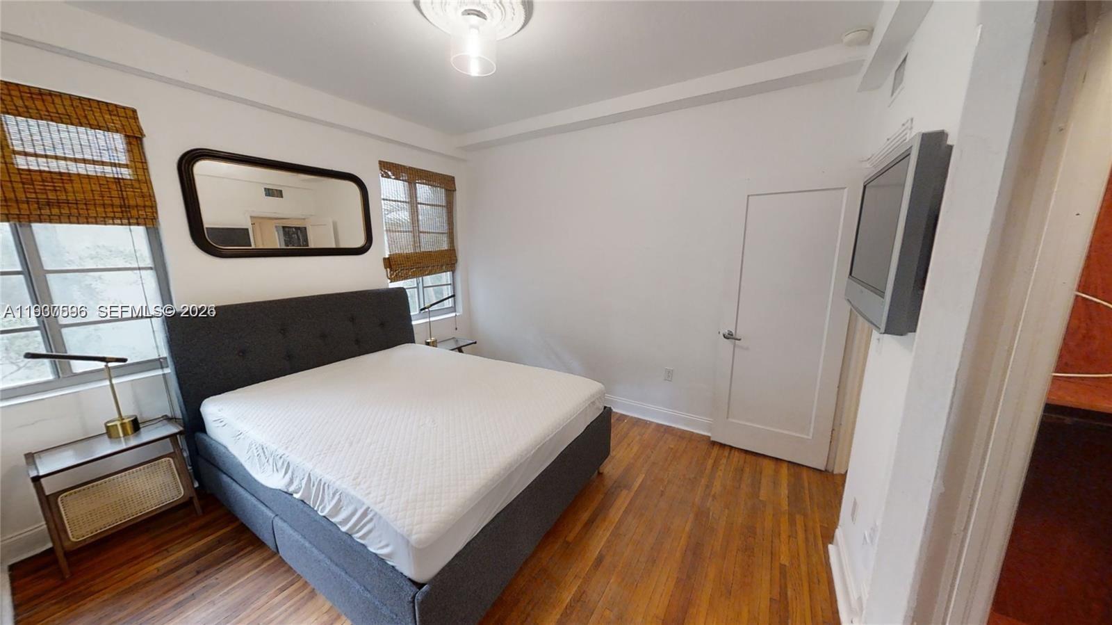 Spacious Furnished 1 bedroom with 2023 renovated kitchen. Meridian Ave tree lined street directly across from Flamingo tennis courts, park & pool. Florida Pine Wood floors. Large 704+ sq feet with plenty of natural sunlight from the buildings sleek curved wraparound living room windows. Ample closest space, custom zebra cabinetry. Central A/C. Well kept building Art Deco building designed by Frank Wyatt Woods, architect of many Coral Gables Merrick village homes. Manicured gardens and picnic area, bike storage and secure laundry room. Street Parking decal yearly charge under $90 from City of Miami Beach