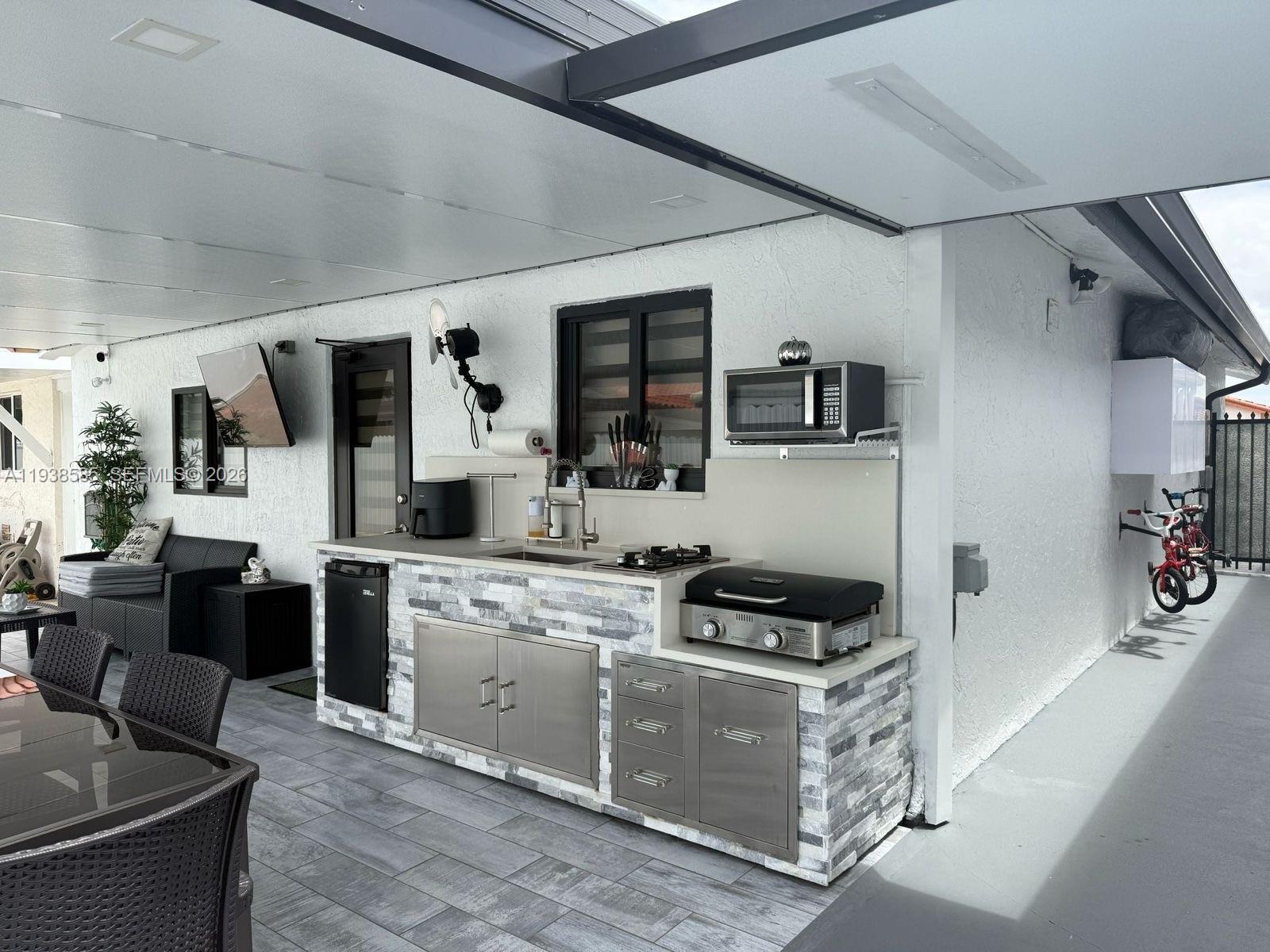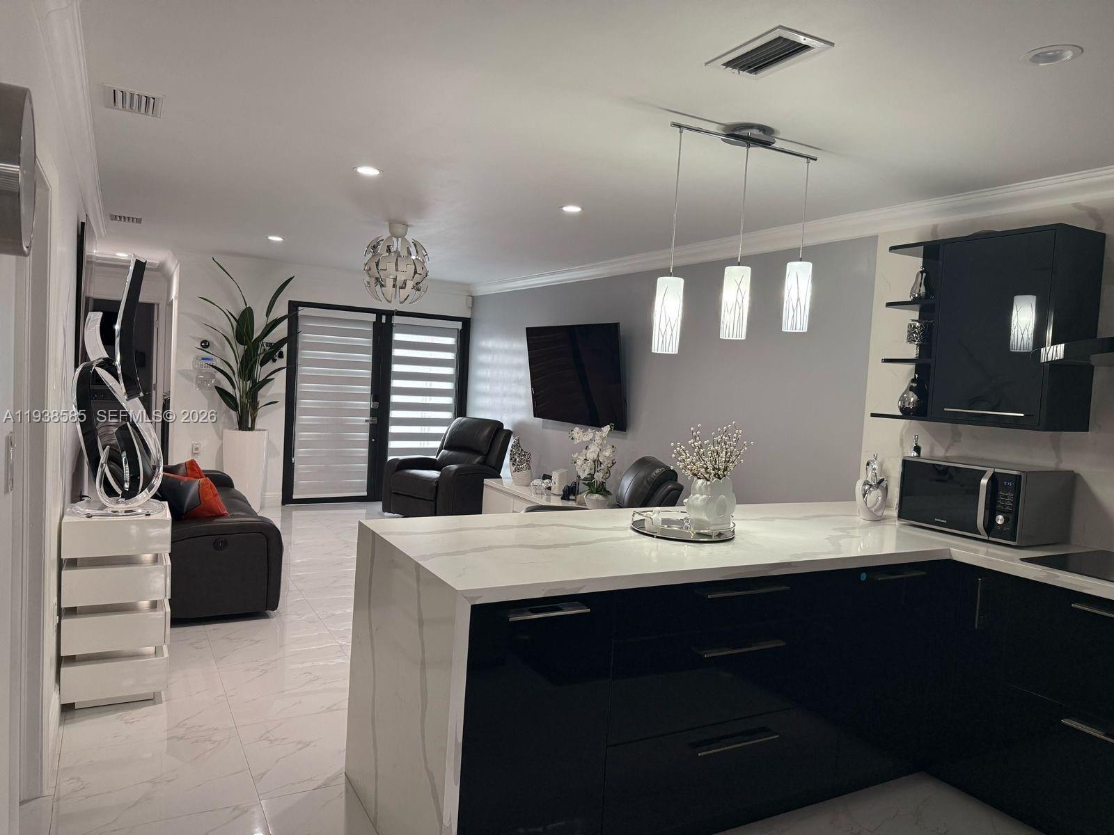 Enjoy this fully renovated, modern home in a great location! Electricity included, and the property includes an installed electric car charger, ready to use. Gourmet kitchen with stainless steel appliances and quartz countertops. Open-concept living & dining with modern decor. Two spa-inspired luxury bathrooms. Spacious bedrooms with custom closets, including walk-in In-unit Samsung washer and dryer. Zebra blackout shades, LED lighting, central A/C. Covered outdoor area with a fully equipped summer kitchen. Electric vehicle charger installed.