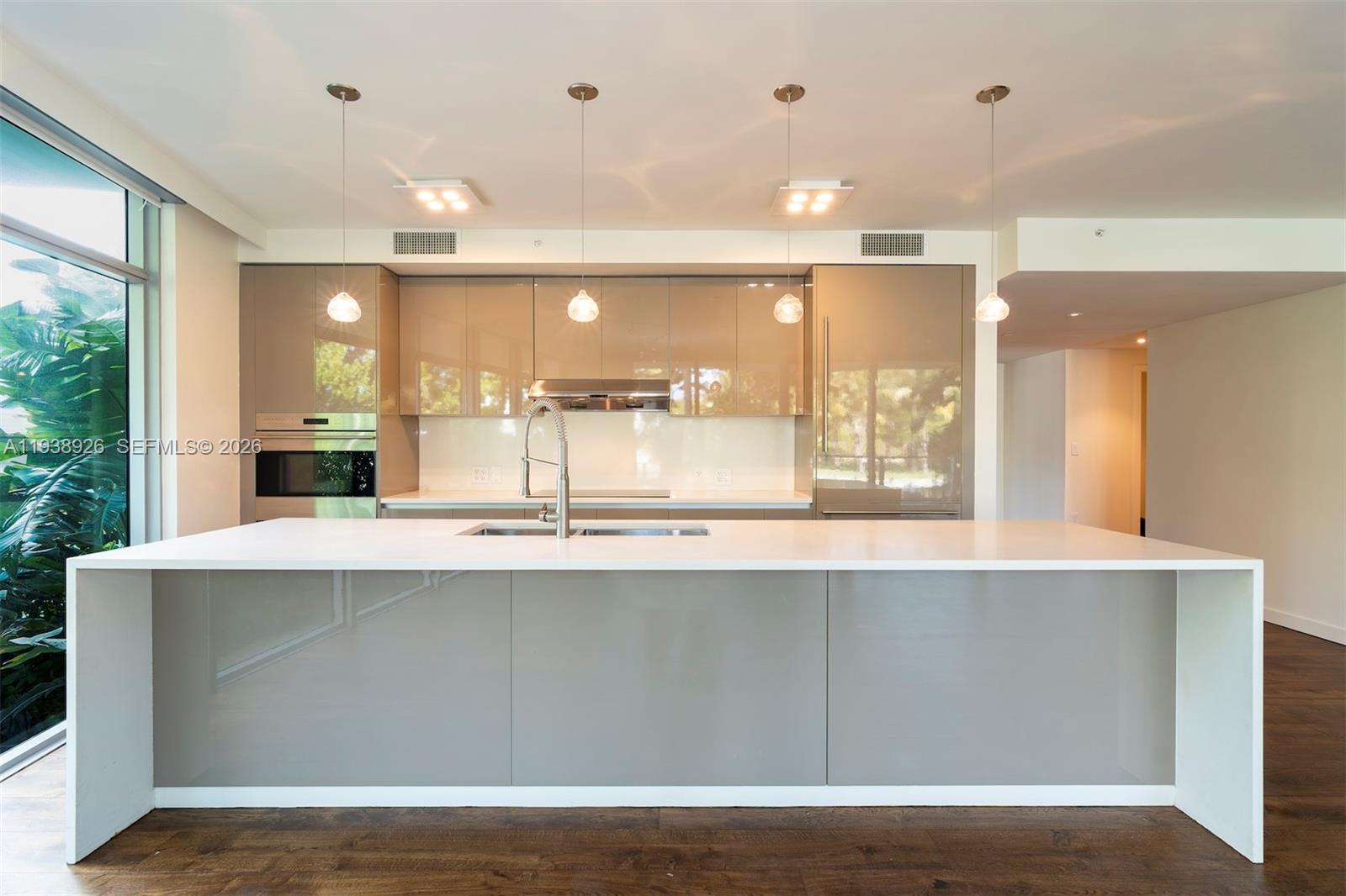 Corner lanai living at Palau Sunset Harbour with bay & Intracoastal frontage. This 3-bedroom, 3.5-bath layout offers 1,820 SF with three en-suite bedrooms, new wood floors, and an Italkraft kitchen appointed with Wolf and Sub-Zero appliances. Enjoy true indoor-outdoor space with a private 1,455 SF landscaped garden featuring a plunge pool, plus a covered balcony for easy lounging or entertaining. Building amenities include 24-hour concierge and lobby security, valet parking, fitness center, library, elevator, and a below-ground pool, along with high-impact windows. Deeded dock access and three garage spaces complete the offering. Walkable Sunset Harbour near top dining, studios, and shopping. No boat slip. Minimum contract of 12 months.