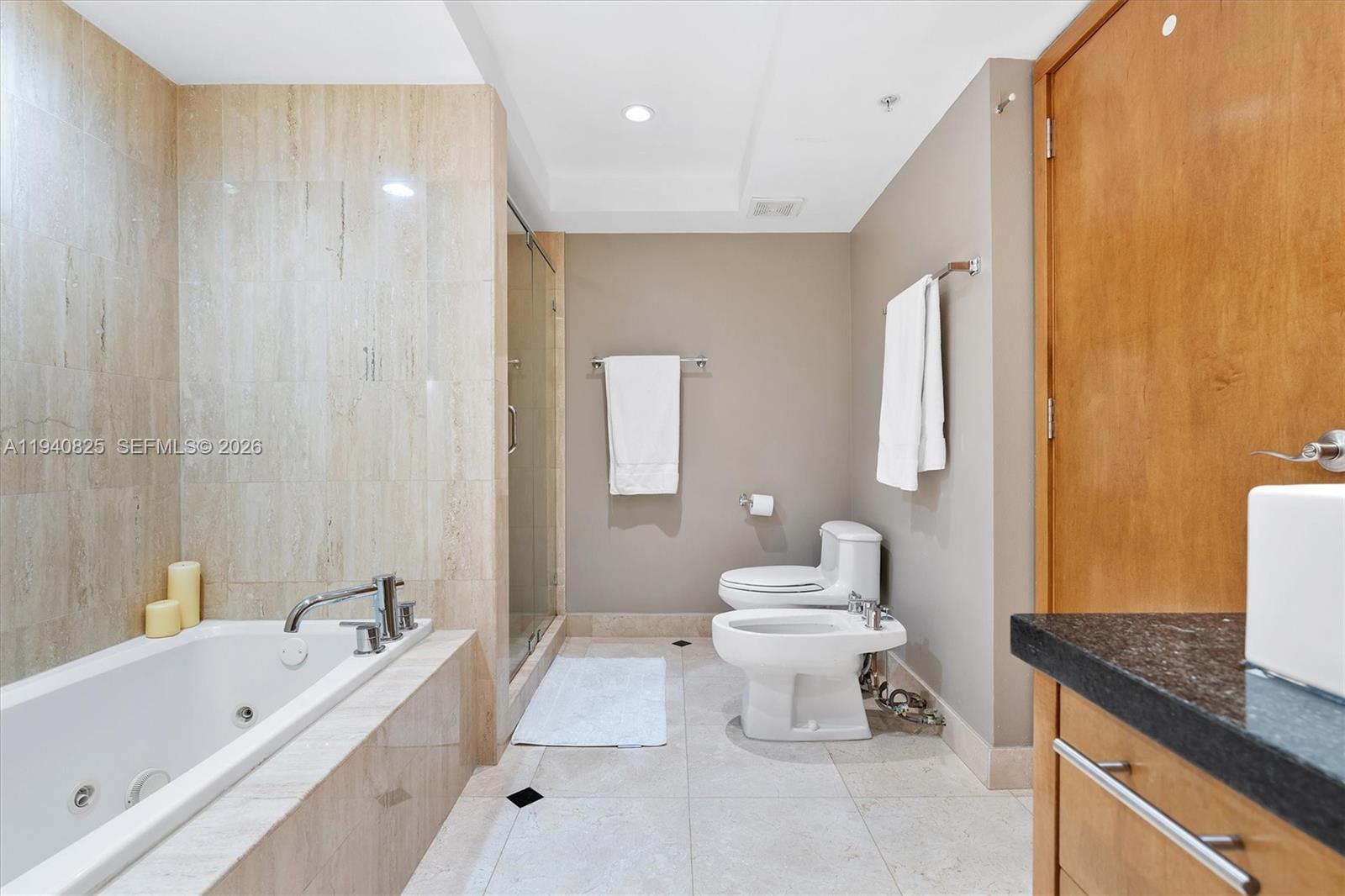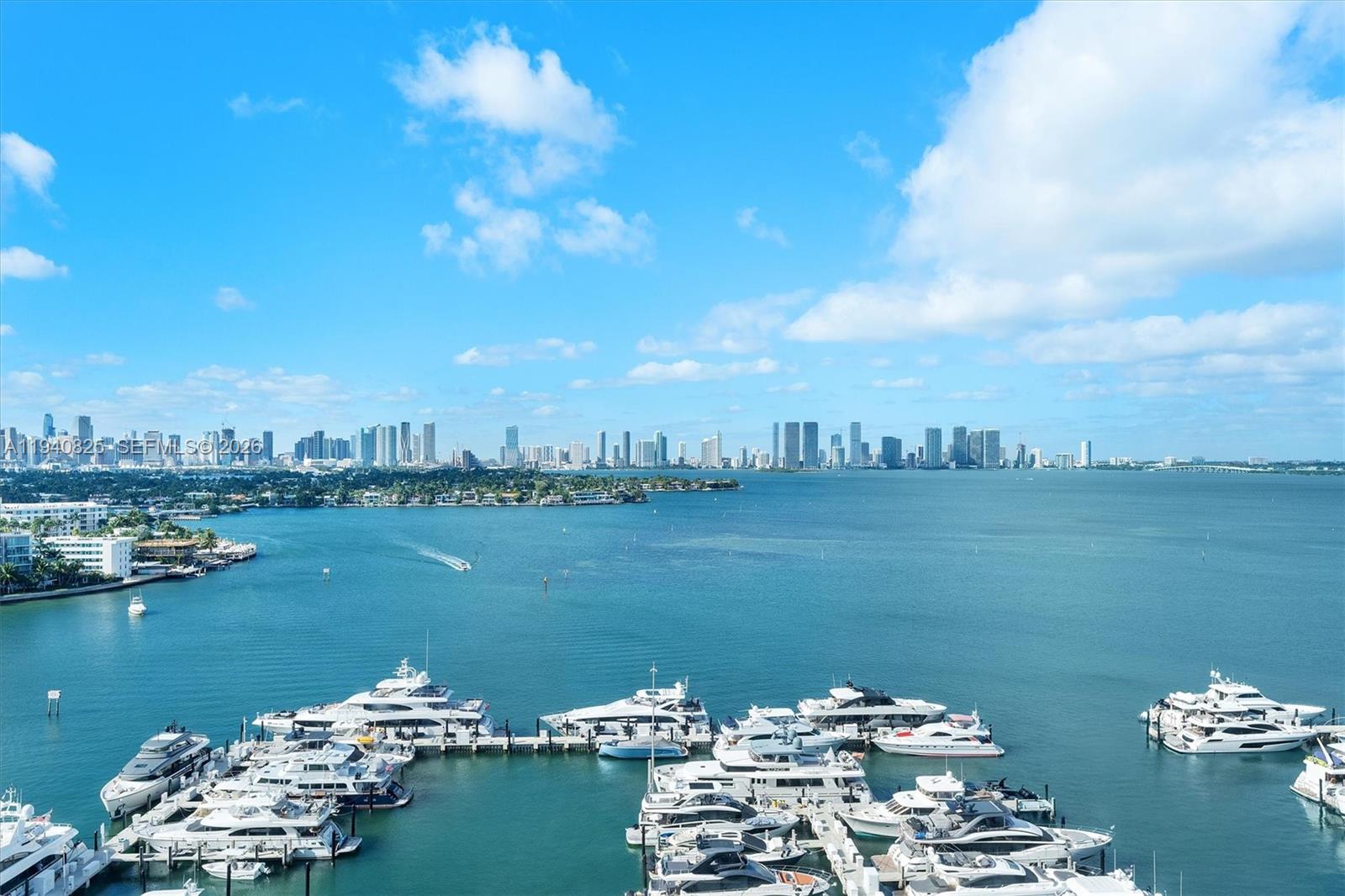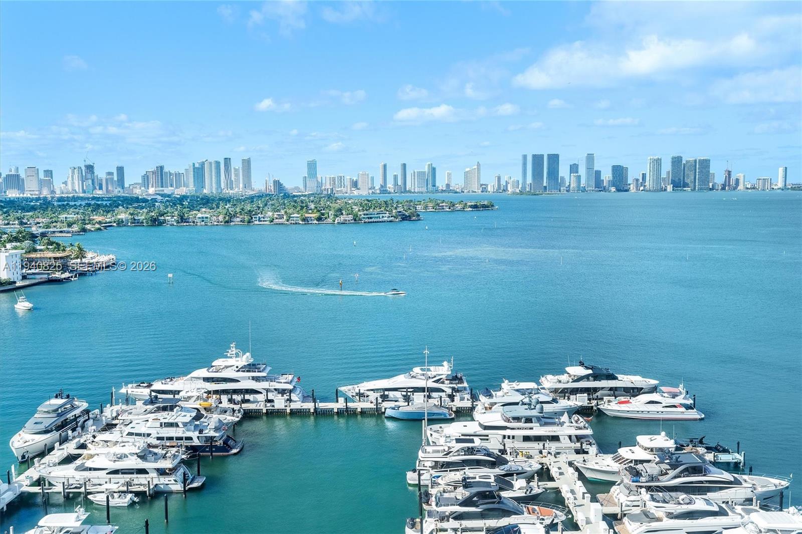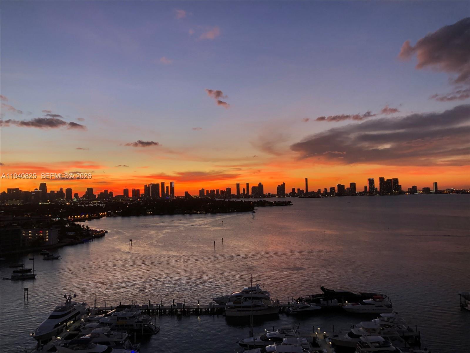 Exquisitely detailed condo in luxury bayfront building in the chic Sunset Harbour neighborhood of South Beach. Spectacular sunset views of Biscayne Bay and Downtown Miami skyline. Marble floors throughout. Open kitchen has granite counters, custom wood cabinets, and stainless-steel appliances. Beautiful custom wood closets. Designer baths. Two private and direct bayfront balconies. Washer/dryer in unit. Covered parking space. Building has gym, pool, 24-hour security, and valet parking. Close to trendy boutiques and restaurants of Sunset Harbour neighborhood and Lincoln Road. This is what South Beach living is all about.