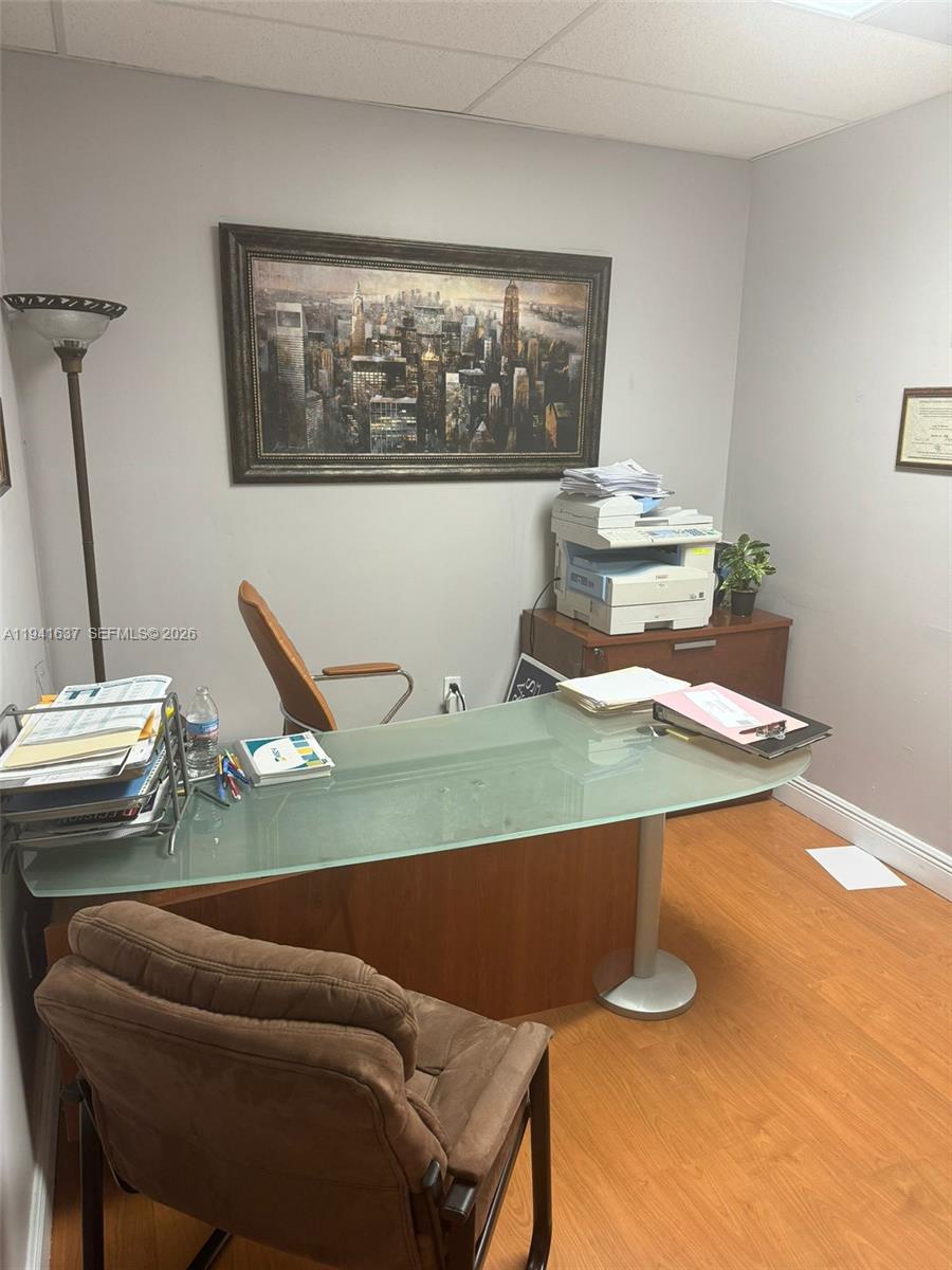 The office offers a calm layout suited for medical or various therapy practice. A welcoming reception area with comfortable seating, six private rooms each designed for flexibility. A small pantry area is set apart for office staff use, equipped with sink and space for basic appliances. The overall layout is efficient quiet and intuitive, creating a space that supports both clients comfort and professional workflow.