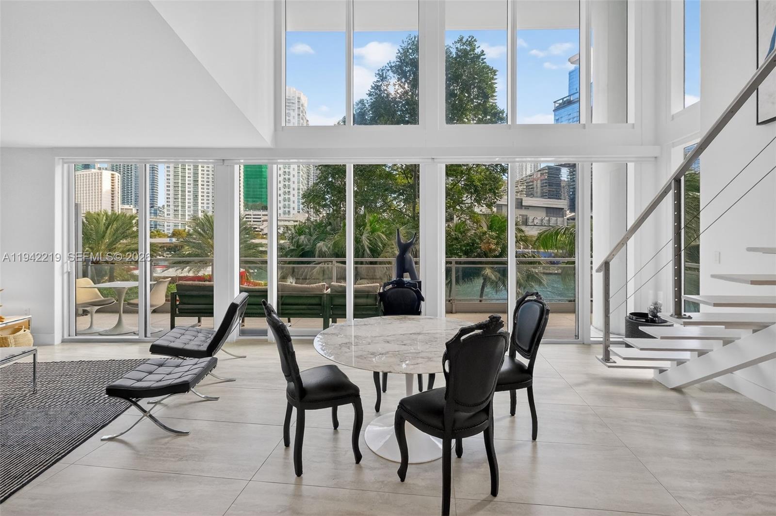 Two-story Townhouse corner residence with direct Miami Riverfront views and a large private balcony offering panoramic, unobstructed views of Brickell City Centre and the Brickell skyline. Enjoy watching yachts and boats glide by day and night. Prime location with immediate access to I-95 (Exit 2C)—perfect for avoiding Brickell traffic while staying close to dining, shopping, and entertainment. 2 bedrooms plus den, 3 bathrooms, with a flexible layout that can be converted into a 3BR/3BA. Features include stainless steel appliances, in-unit laundry, and electronic/manual blackout shades. Rare same-floor covered parking provides a private, house-like living experience—no elevators needed. Resort-style amenities include gym, spa/sauna, lap pool & jacuzzi, business center with Apple computers, outdoor family area, 24-hour security, and valet. Available March 2026.