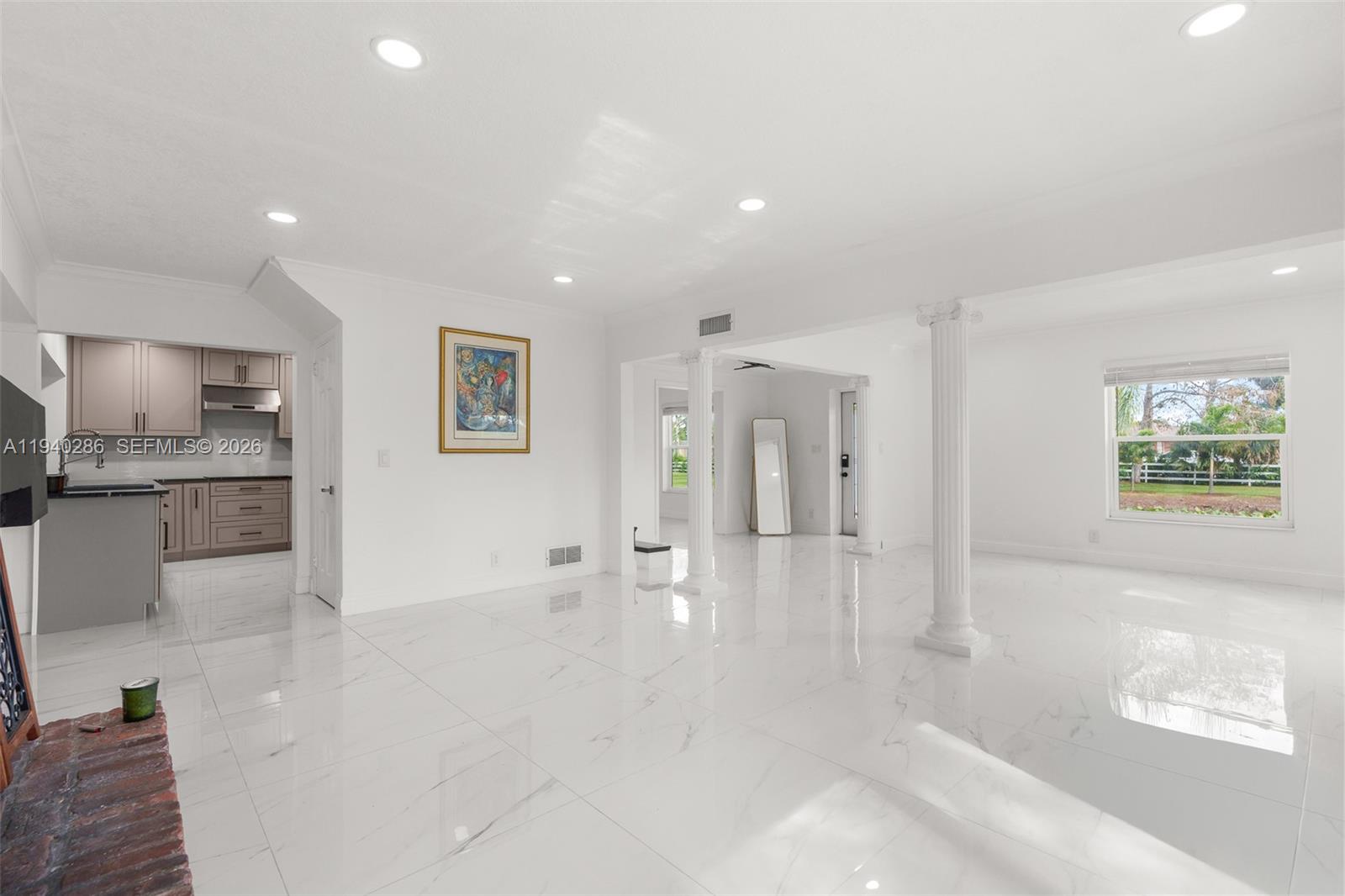 Beautifully renovated 5-bedroom + den, 5-bath estate on 2.4 lush, fenced acres in prestigious Parkland Ranches. Enter through a private, automated gate into a sweeping circular driveway. This stunningly updated home features: newer roof, new impact windows & doors, & all-new oversized tile flooring. The remodeled kitchen & spa-inspired white marble bathrooms offer a blend of modern luxury with a new home feel. There is a private guest suite with its own entrance—ideal for extended stays or multigenerational living. Outdoors, enjoy a beautiful pool, mature mango tree, tranquil pond, and a tennis court with space to convert into multiple luxury pickleball courts. Two sunrooms offer seamless indoor-outdoor living, while the working barn makes this property ideal for horse and animal lovers.