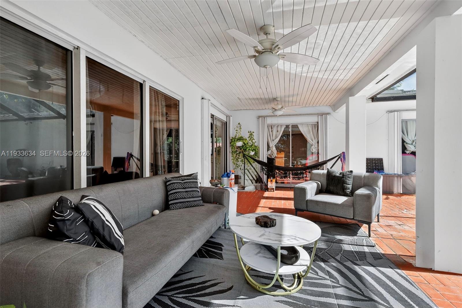 A gem in the heart of Pinecrest! This is the perfect single family home with an amazing layout and screened pool to enjoy. Property features 3 spacious bedrooms + den/office in master, 2 bathrooms, a bright and open kitchen with gas stove and seating area adjoining the family room area ideal for family gatherings. Lots of light, Porcelain & wood floors throughout. Combination of Impact Glass & Accordion Shutters. A paved and screened backyard with a heated pool and plenty of green areas with lush gardens. 2-car garage and lovely circular driveway. Washer/Dryer in garage. Great location close to excellent schools, parks, community center, church, synagogue and restaurants.
