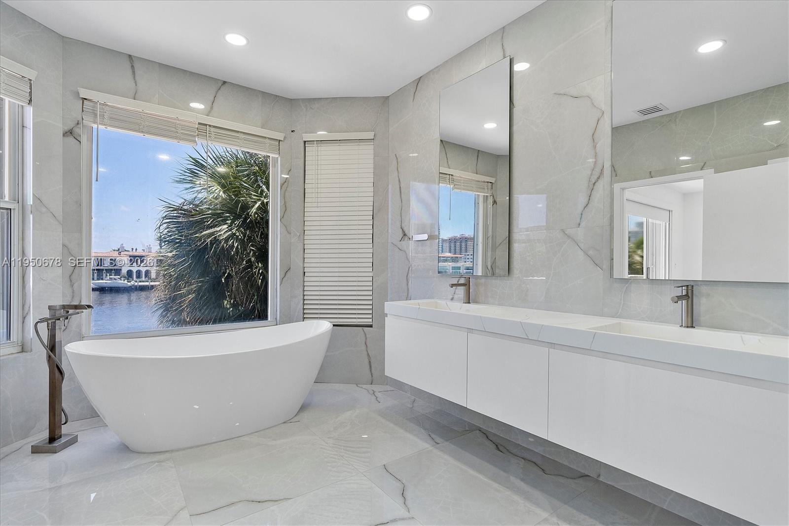 Just beautifully renovated waterfront residence located in The Courtyard Homes at The Point. This home sits right on the Intracoastal Waterway and has a private deeded dock as well as a boat lift. This gorgeous home is light and bright. It has 5 bedrooms and 4.5 baths. The main house has 3 bedrooms and the guest house has 2 bedrooms and 1 bath and it's fully equipped. Enjoy the amazing Intracoastal and Golden Beach Views. The Point offers 5 star amenities including 3 swimming pools and pool service at the main pool, 4 tennis courts, 4 BBQ areas, a world class gym and spa, a playground and a restaurant. There is 24 hour security and is in close walking distance to houses of worship, shopping and the waterways marina. Also available for sale!
