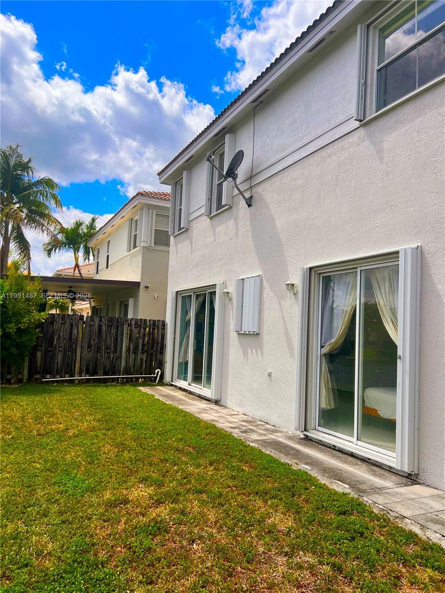Doral waterfront beauty in Biarritz gated community Complex. Spacious 2,648 square foot, 2-story, 4 bedrooms and 3 1/2 baths partially furnished home. Water views from every room facing south. One bedroom on first floor for added convenience. Open floor plan in kitchen/family room. High ceiling in Living/dining room area. Features include full size washer/dryer, accordion hurricane shutters, two 4-ton central a/c systems, his/her walk in closets and bathroom vanities in master bedroom. Convenient seating area upon entering the large master bedroom. Minutes to expressways, Dolphin and International malls. Virtual tour available.