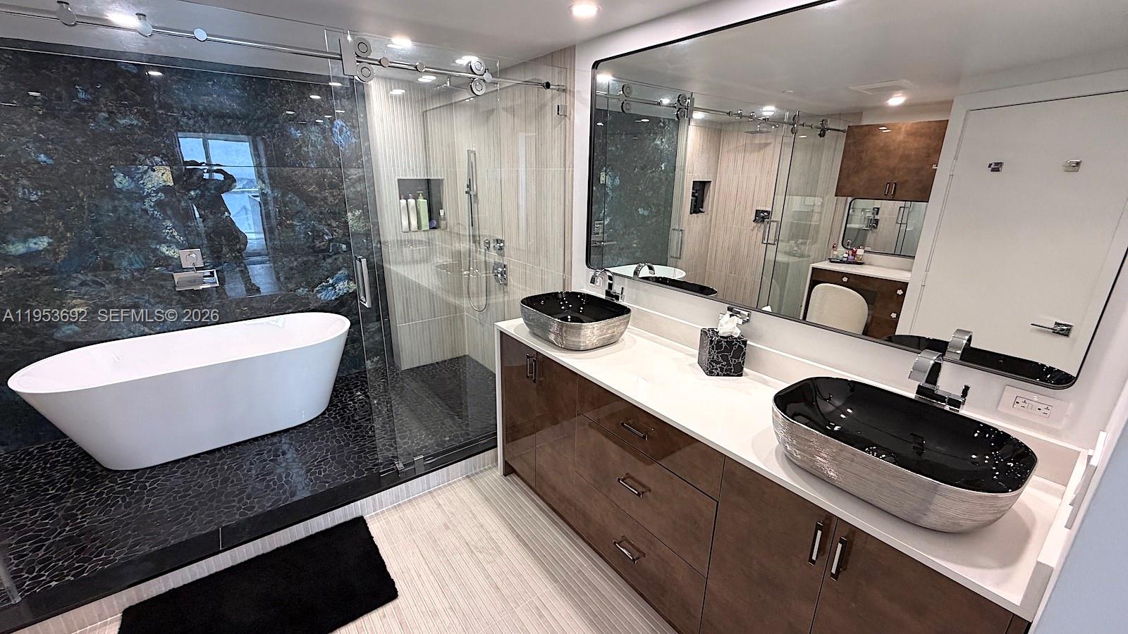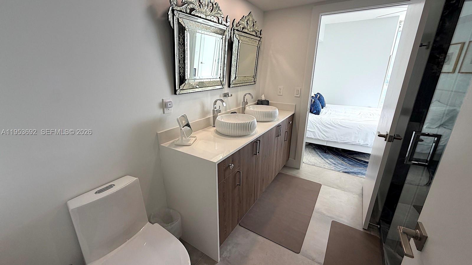 WAKE UP ON THE SECOND-HIGHEST FLOOR SURROUNDED BY ENDLESS WATER VIEWS IN THIS COMPLETELY REIMAGINED, FULLY FURNISHED 3-BEDROOM RESIDENCE THAT LIVES LIKE A PRIVATE RETREAT—QUIET, REFINED, AND UNLIKE ANYTHING ELSE IN THE BUILDING! FLOOR-TO-CEILING GLASS FILLS THE HOME WITH LIGHT, FRAMING A ONE-OF-A-KIND GOURMET KITCHEN WITH WOLF INDUCTION COOKTOP + OVEN, SUB-ZERO REFRIGERATOR, WINE/BEVERAGE COOLER, QUARTZ COUNTERS + BACKSPLASH, AND AN OVERSIZED QUARTZITE ISLAND w/ SEATING FOR 8 —EXCLUSIVE IN DESIGN + LAYOUT. THIS DESIGNER-FURNISHED RESIDENCE IS TURNKEY, TRANQUIL, AND TRULY UNIQUE. FEATURES 24X48 PORCELAIN FLOORS, CUSTOM CABINETRY, SOUND-INSULATED SLIDING DOORS, AND WASHER/DRYER. THE SPA-LEVEL PRIMARY SUITE OFFERS A KING BED, DUAL WALK-IN CLOSETS, AND A DRAMATIC WET ROOM w/ SOAKING TUB, WATERFALL FAUCETS, AND DOUBLE RAIN SHOWERS. TWO ADDITIONAL BEDROOMS INCLUDE A KING GUEST SUITE AND A THOUGHTFULLY DESIGNED 3RD BEDROOM/BUNK ROOM (w/ QUEEN + FULL) PLUS A RENOVATED BATHROOM WITH DOUBLE SINKS. ICON BRICKELL’S RESORT LIFESTYLE INCLUDES: 300-FT INFINITY POOL, OLYMPIC LAP POOL, 28,000 SF SPA & FITNESS CENTER, SAUNA, COLD PLUNGE, CONCIERGE, VALET, AND W HOTEL SERVICES… LOCATED WITHIN PRIME BRICKELL LOCATION. MINUTES TO MIAMI BEACH and MIA. JUST A FEW STEPS TO BRICKELL CITY CENTRE, DINING, and NIGHTLIFE…. or simply go downstairs and enjoy Cipriani and Cantina La Veinte on Ground Level. NO DOUBT, ICON 5603 IS ELEVATED WATERFRONT LIVING AT ITS FINEST!