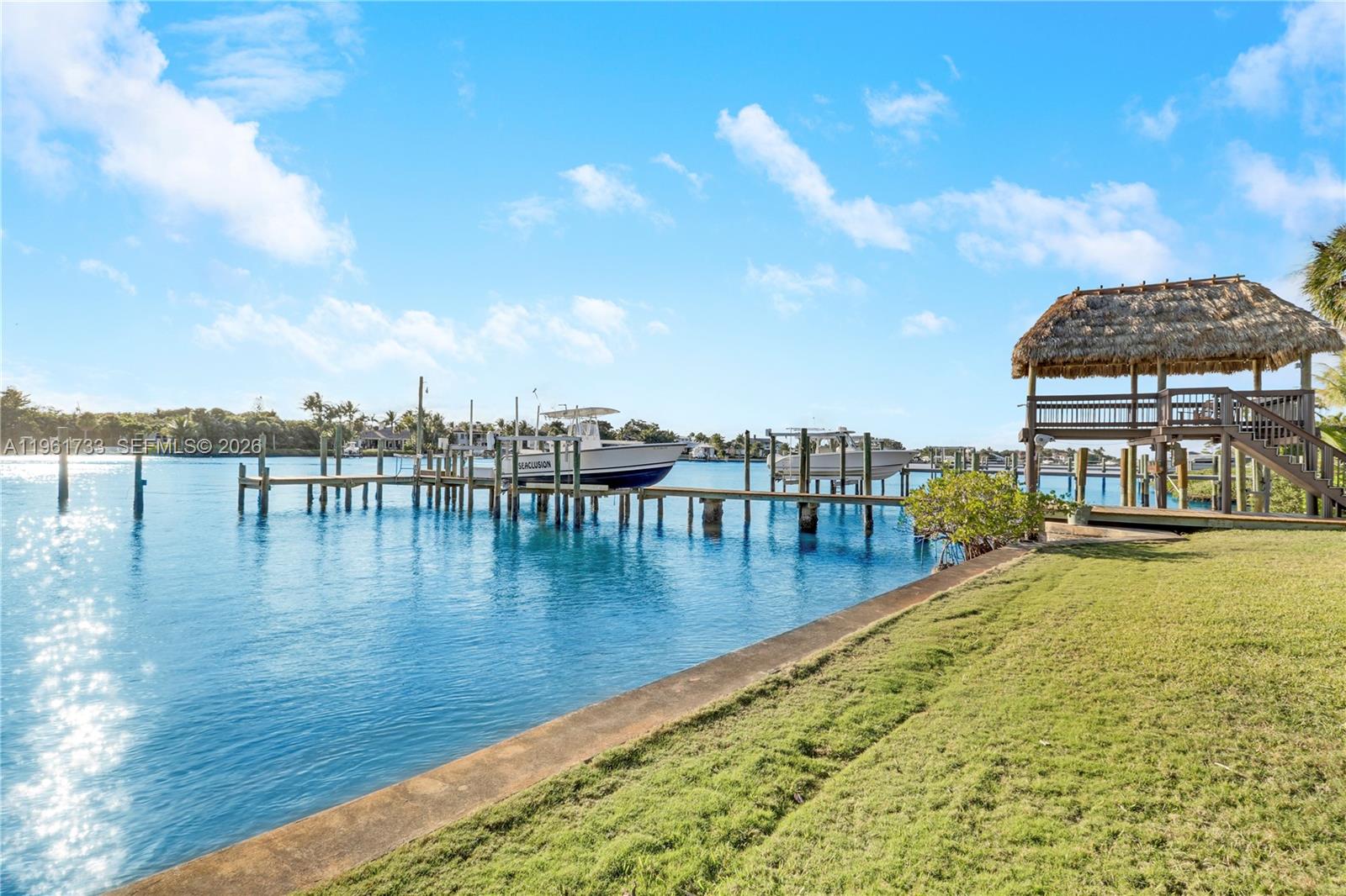 Experience classic Old Florida waterfront living on one of Jupiter’s most desirable streets. Set on approximately 1.5 acres with an impressive 185 feet of water frontage, this charming single-story 3-bedroom, 2-bathroom residence offers privacy, serenity, and picturesque river views.The home features a warm and inviting coastal cottage interior, with light-filled living spaces designed for both comfort and effortless entertaining. Large windows frame the surrounding water and lush landscaping, creating a seamless connection between indoor and outdoor living. Outdoors, the property is a boater’s dream. Enjoy a private dock, boat lift, and Tiki hut, providing direct access to the water and endless days on the river. A stunning mature banyan tree anchors the backyard, offering shade and a truly special sense of place. The expansive grounds provide ample space to relax, entertain, or simply enjoy the peaceful waterfront setting.