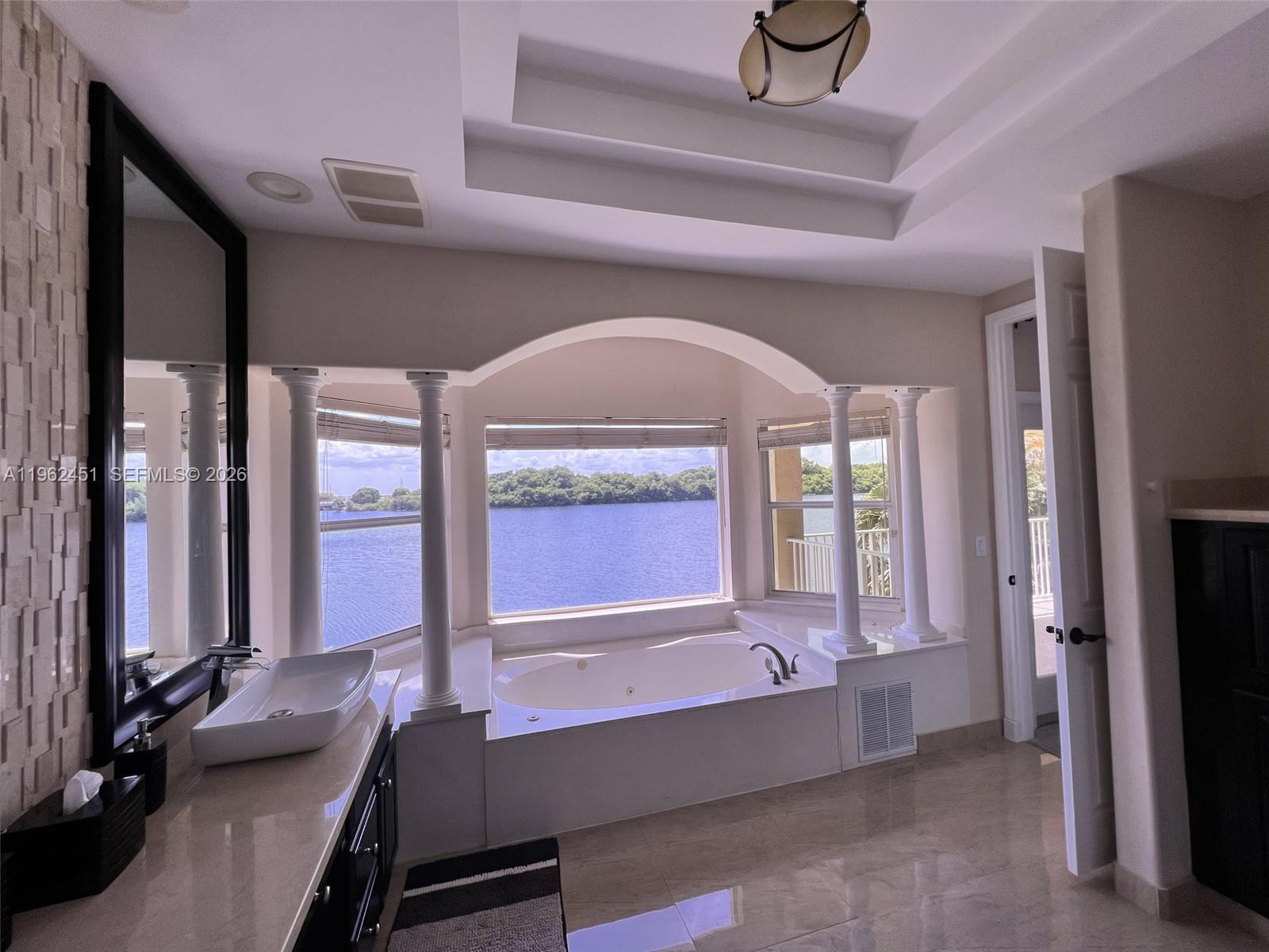 STUNNING 5BR/4BA CASTLE-STYLE HOME WITH POOL ON AN EXPANSIVE WATERFRONT POINT LOT. A grand foyer welcomes you into a striking circular staircase adorned with custom murals. Featuring soaring high ceilings, elegant built-ins, architectural arches, and abundant natural light from numerous windows throughout. The kitchen offers granite countertops, wood cabinetry, and stainless-steel appliances. The oversized primary suite is a true retreat, showcasing large walk-in closets, a spacious bath with decorative columns, and a private balcony overlooking the patio, pool, and breathtaking lake views. Truly one of a kind, situated on a rare lot of over 1/3 acre with approximately 240 feet of lake frontage.