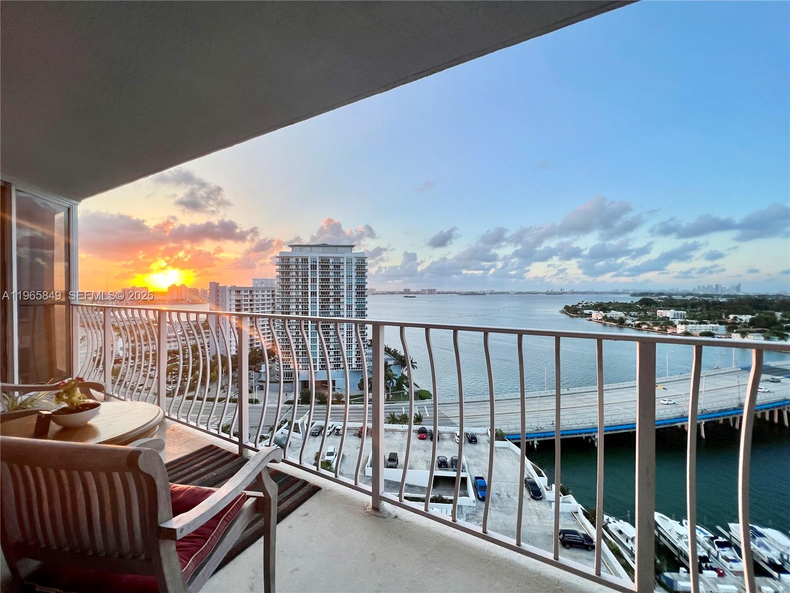 Best panoramic views, night or day, to Biscayne Bay, Miami Beach and intracoastal from this immaculate 2 beds & 2 baths at The Grandview Palace Condo. Porcelain floors throughout, open gourmet kitchen with top of the line stainless steel appliances and beautiful granite countertops. Floor to ceiling glass windows and extended balcony with extraordinary sunset and sunrise views. Washer & dryer in the unit. 1 parking space. Perfect location in North Bay Village, minutes to the beach, South Beach, Wynwood, Aventura and main highways. Waterfront building offers 24-hour security, attended lobby, an Olympic-sized swimming pool, restaurants and convenience stores.