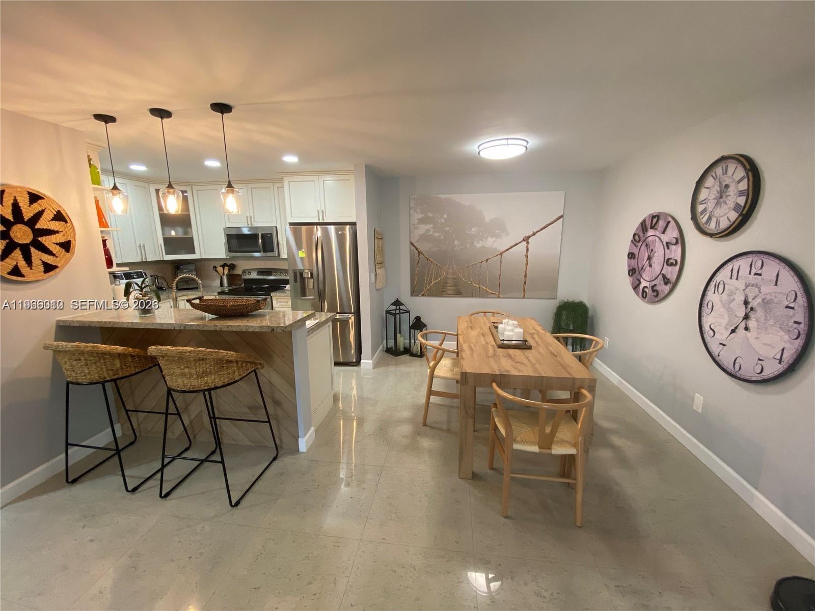Fully remodeled and recently painted unit featuring new bathrooms, solid wood kitchen cabinets, and granite countertops. Spacious closets and generously sized bedrooms. Extremely well maintained and in excellent condition. A/C replaced 4 years ago. Washer and dryer inside the unit. Modern ceiling fans and updated light fixtures throughout. Impact windows and doors for added security and energy efficiency. Condominium assigns at least two parking spaces per unit based on registered vehicles, plus ample guest parking. Community amenities include tennis courts and swimming pool. Move-in ready.