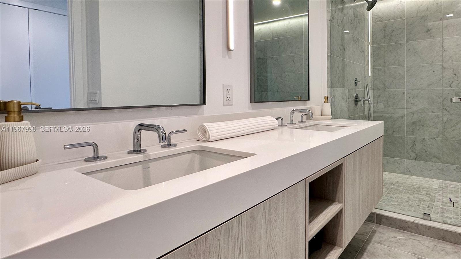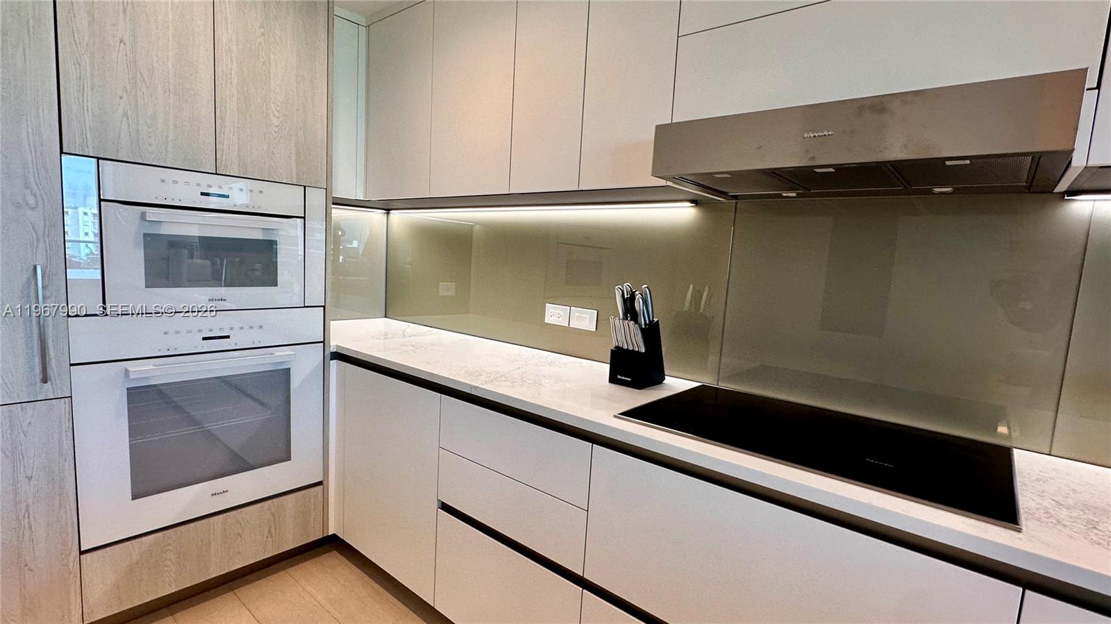 Please note: The unit is currently undergoing the furnishing process. The living room and master bedroom images are conceptual renderings Experience unparalleled living at La Baia South, Bay Harbor Islands, in this brand-new, fully finished and furnished Residence 504. This expansive 1861 sq. ft. home features 2 bedrooms + Den, 2.5 bathrooms, and a versatile den (ideal for an office or easily converted to a 3th bedroom), complemented by a private terrace boasting Spectacular sunset views. Beyond your door, immerse yourself in 30,000 sq. ft. of resort-style amenities, including a breathtaking rooftop pool deck with panoramic waterfront views, outdoor kitchen, lounge areas, heated spa, splash pad, and a reflection lawn for wellness. A state-of-the-art fitness center, elegant club room, and unique water access with a sports launch dock complete this exceptional offering. Inside, discover a meticulously designed split floor plan featuring premium Miele appliances, granite countertops in the fully equipped kitchen, luxurious motorized blackout treatments in bedrooms, and shades in the living room. With ample multiple closet spaces and a dedicated storage unit, this turnkey residence is ready for immediate occupancy. Available for seasonal rental (minimum 3 months) or up to a one-year lease. Don't miss this opportunity to live or invest in one of Miami's most exclusive bayfront communities. Request a showing now – this will rent fast!
