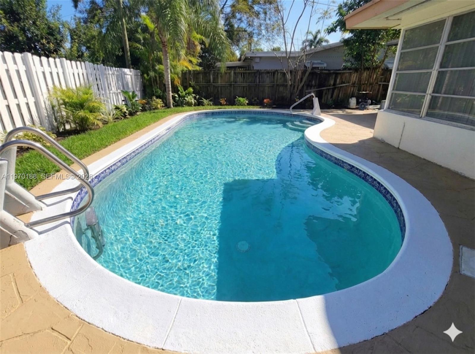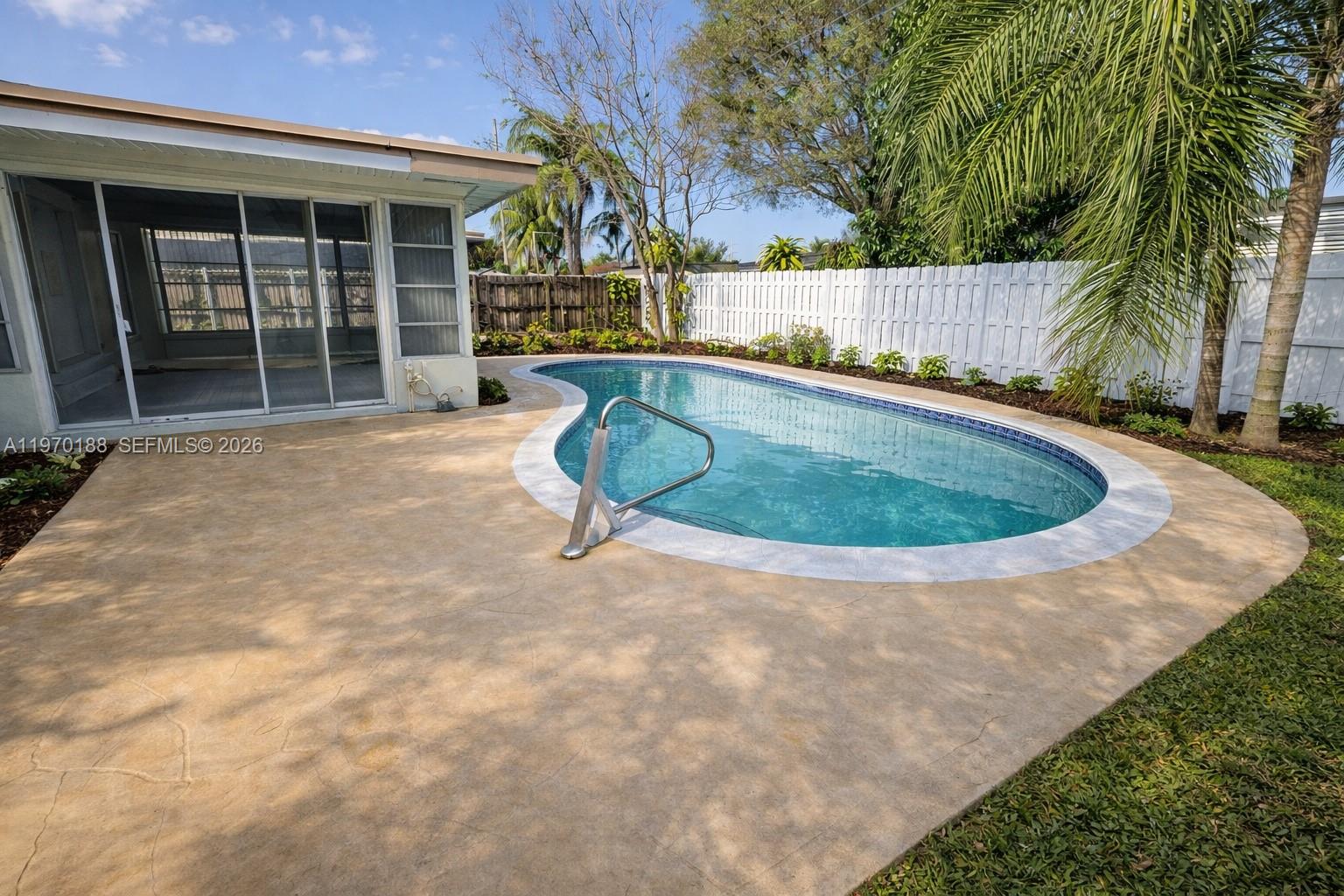 Centrally located in Hollywood, this beautifully updated LUXURIOUS 3BD/1BA home is move-in ready. Features a bright, open floor plan with large porcelain tile throughout. The fully renovated kitchen boasts sleek quartz countertops and brand-new stainless steel appliances. A spacious, sun-drenched Florida room offers flexible space that easily doubles as a 3rd bedroom or home office. Step outside to your private, fully fenced backyard oasis complete with a sparkling pool, stamped concrete deck, and an outdoor shower. Includes dedicated washer/dryer and a covered carport. Low maintenance and a prime location close to dining, shopping, and beaches. This won't last long!