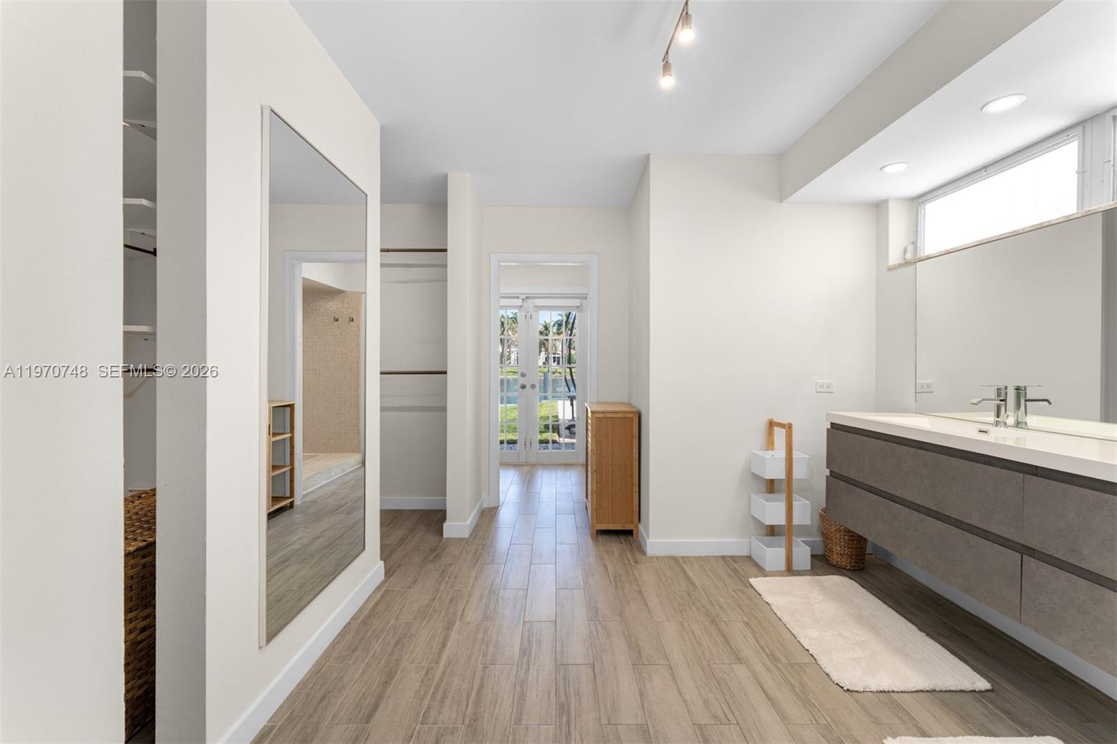Modern waterfront residence with private dock and deck, offering open water views and a beautifully designed backyard setting. The pool, expansive patio, and dedicated outdoor dining area create an ideal space for entertaining or enjoying the waterfront backdrop. Inside, the open layout connects the main living and dining areas with abundant natural light throughout, along with an additional family room just off the main living space. The main kitchen is equipped with premium appliances, a large island with cooktop and seating, and ample cabinetry. Behind the kitchen is a separate pantry and prep workspace complete with a second refrigerator, sink, and additional storage. The full laundry room and garage are conveniently located just off the kitchen. A private guest suite with full bath is also situated off this wing of the home. The primary suite includes dual vanities, soaking tub, separate shower, oversized walk-in closets with built-ins, and direct access to the pool. Two additional bedrooms share a Jack and Jill bathroom, each with generous closet space and a large connecting hallway closet. Additional highlights include a spacious circular driveway providing ample parking. A modern waterfront home offering functional design, generous living spaces, and exceptional outdoor amenities near the best of Hollywood.