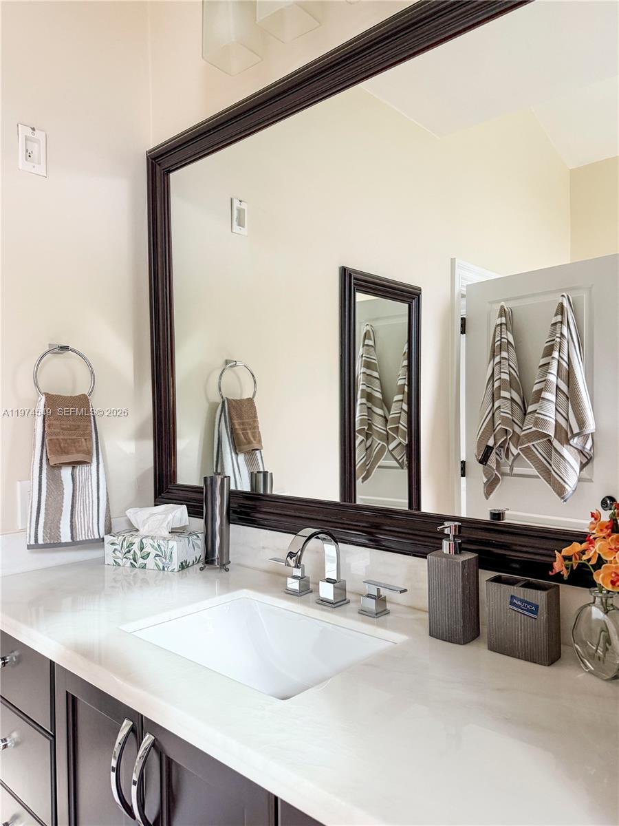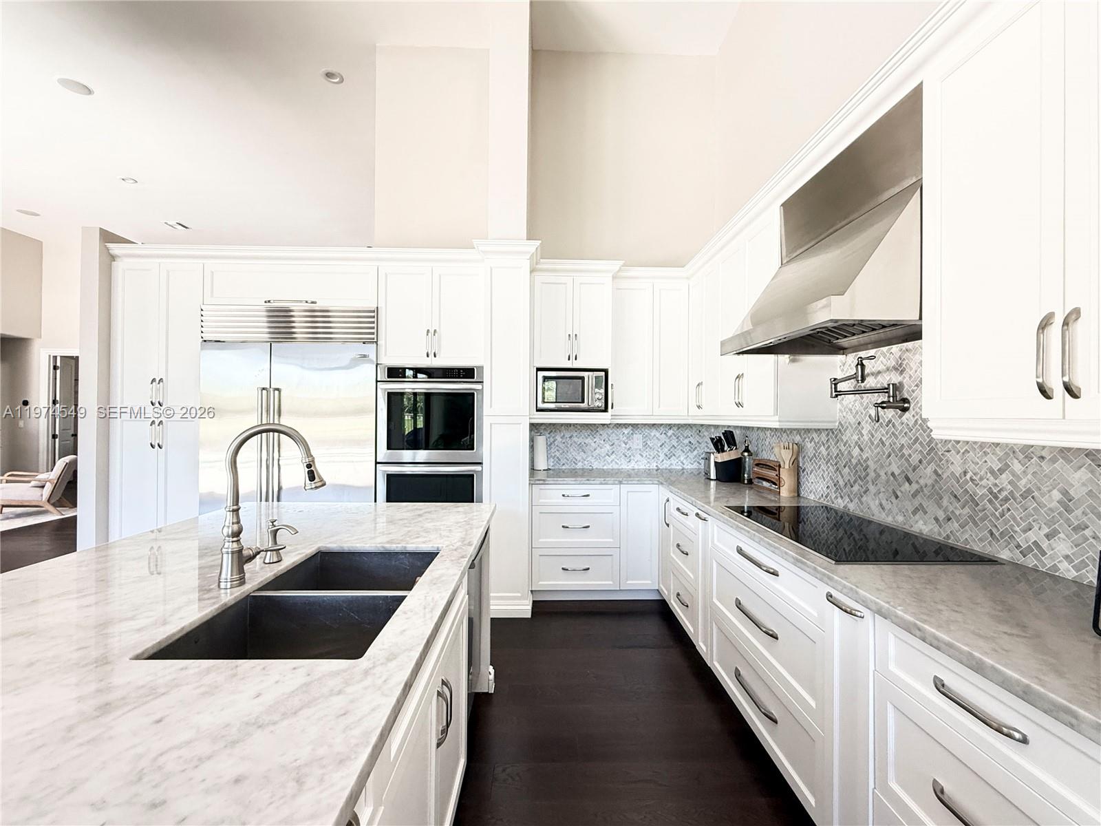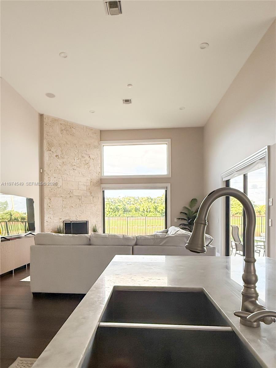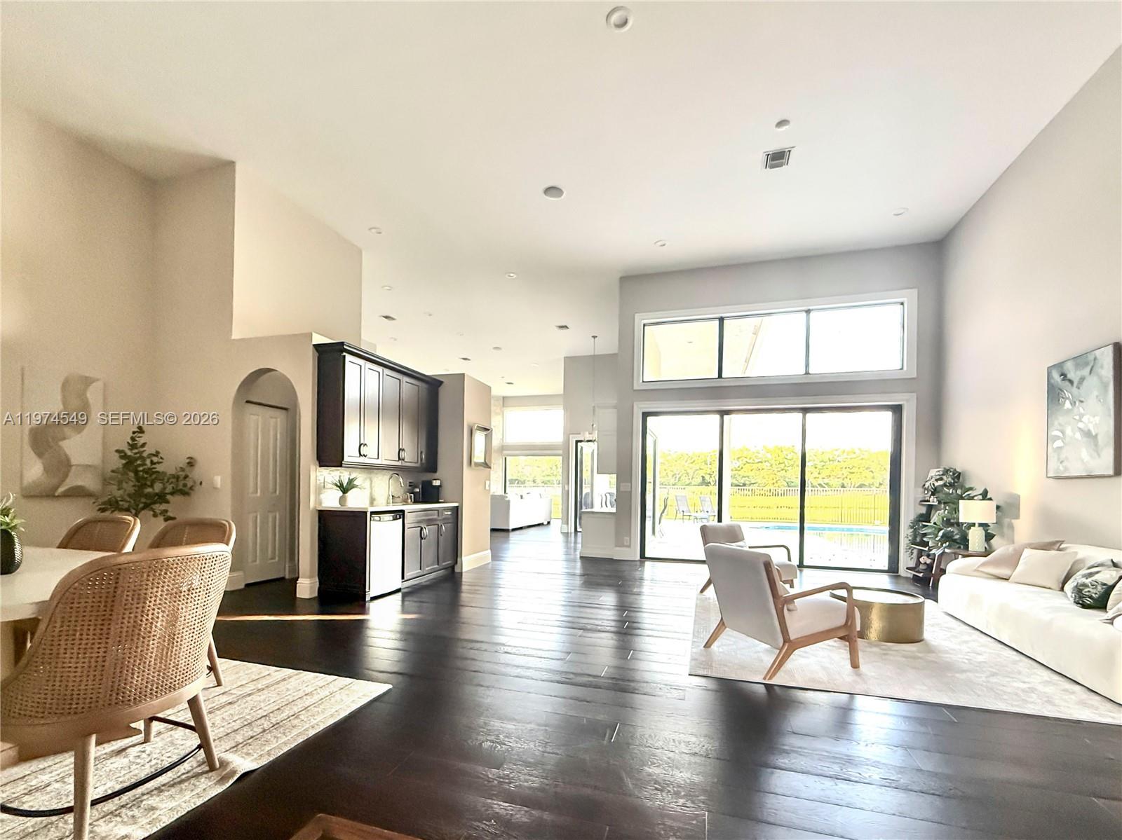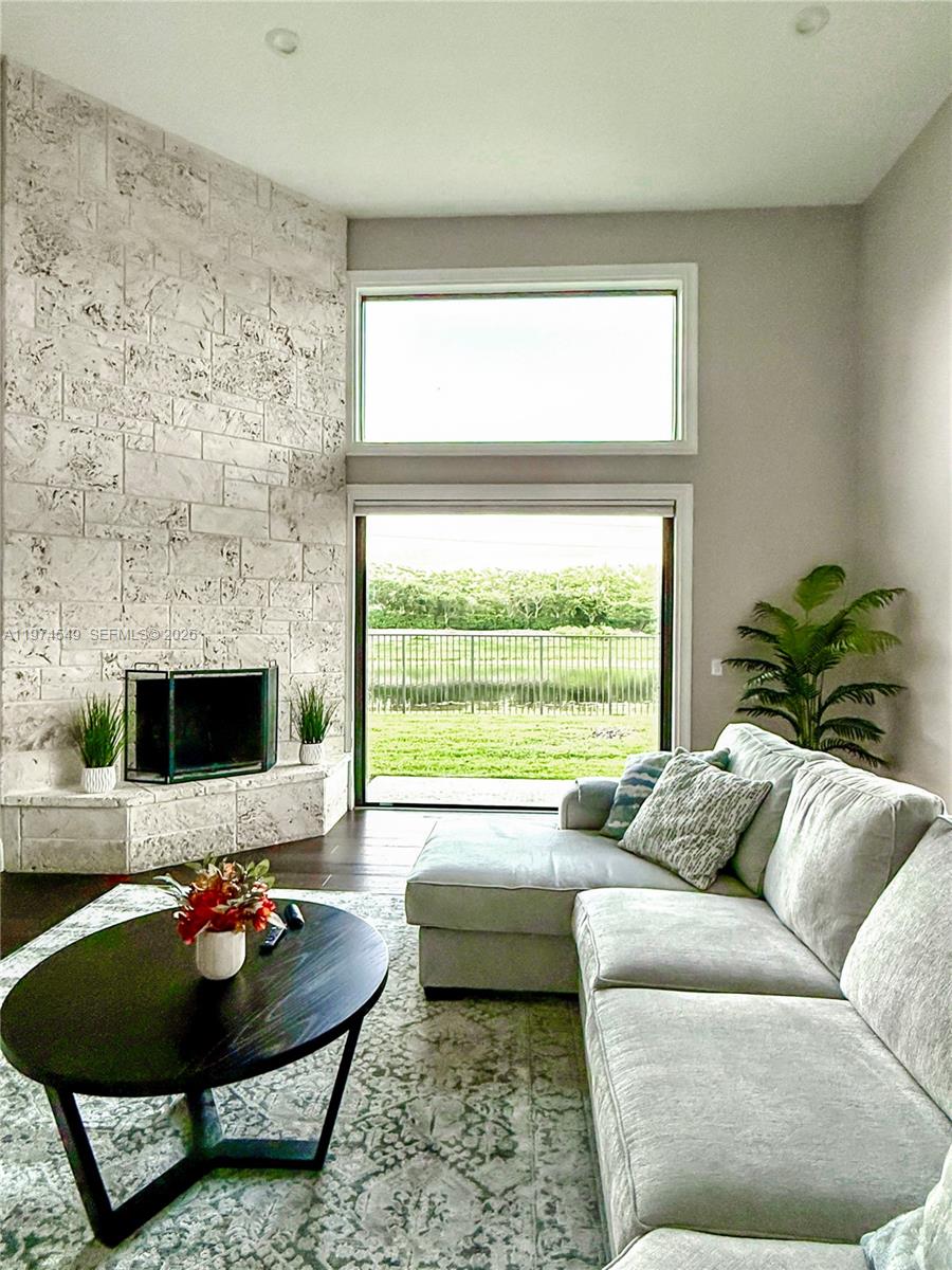Experience luxury living at its finest in this exquisite lakefront/pool, located in the guard-gated community of Palm Island. Circular driveway + stunning 8ft mahogany front door. 6 BD+den, 4.2 baths, impact windows, 15 ft flat ceilings and wide plank wood flooring. Contemporary kitchen with Carrera marble island and high-end appliances: Subzero fridge, dishwasher, induction cooktop with a pot filler & double ovens. Wet bar. Fireplace A dream primary suite: sitting area, custom walk-in closets, renovated bathroom. 2 en-suites bedrooms. Expansive fenced yard with pool and detached cabana bath. The perfect outdoor retreat for relaxation and entertaining. Privacy in stunning lakefront location. This home blends luxury, comfort, and near parks, shopping, sports, and A+ schools Cypress Bay HS