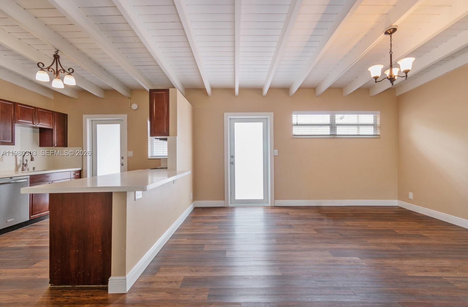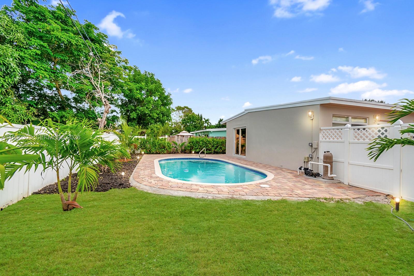 Gorgeous, light, bright & dry! This freshly painted 3 bed, 2 bath, corner home is located on a built-up lot high & dry and not in a flood zone (this home stayed dry during the flood of April 2023)! Featuring an open concept layout with laminate flooring throughout spacious living areas and a generously sized kitchen with quartz counters and stainless steel appliances. Bathrooms have been tastefully upgraded and impact windows for convenience. Offering amazing outdoor living space with an extended patio perfect for BBQ, sparkling pool (resurfaced 2023) and large fenced yard. Bring your RV or boat or both! New A/C (2022), tankless water heater (2023) and updated electrical (2023). Great location in the heart of Fort Lauderdale, close shopping & dining! Lawn service & pool service included in rent.