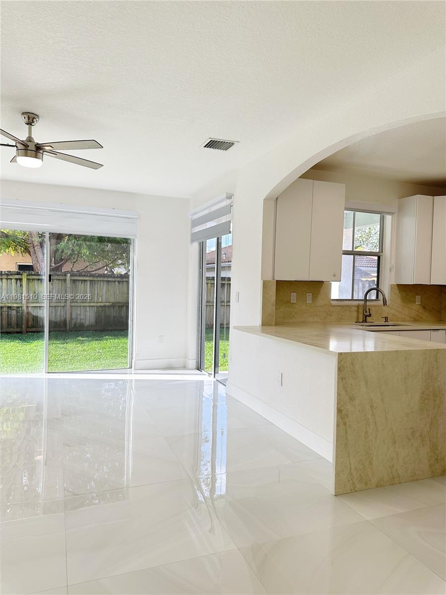 Beautifully Remodeled 3 bedroom 2 bathroom Home in Spanish Lakes. Enjoy modern living in this single-family home recently remodeled with top end finishes and fresh paint. This property features porcelain flooring throughout and a brand-new kitchen featuring stylish countertops. All three bedrooms include walk-in closets. Relax on your covered front entry or rear porch within a fully fenced-in patio. Equipped with a smart Thermostat system for climate control. 1-car garage plus 2 additional driveway spaces. Basic Cable, Internet and Lawn included in the rent.