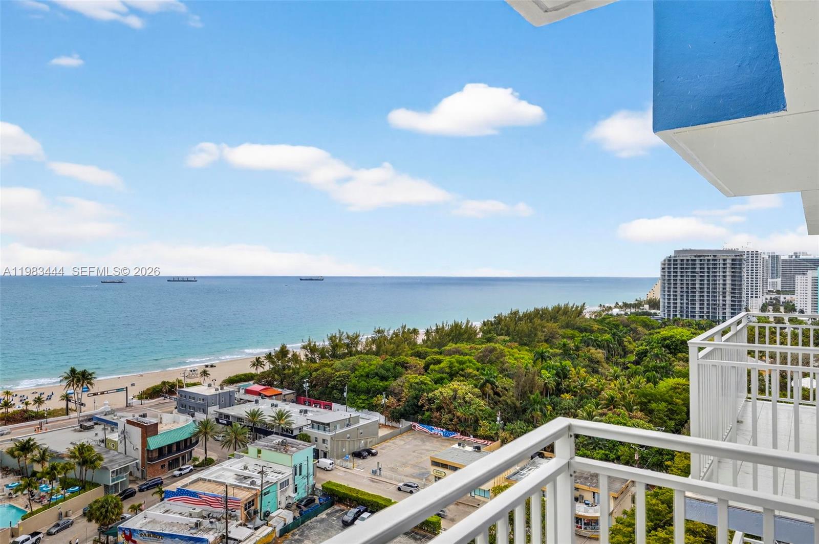 Furnished Penthouse. Available for 6-9 months. Mesmerizing views over Ocean and Hugh Taylor Birch State Park. East facing ocean views from every room. Rarely available Penthouse level North East facing corner unit with 270 degree views of Ocean, Hugh Taylor Birch Park, Intracoastal & Marina. Walk in closet. Washer & dryer in unit. New stainless steel appliances. Two to three min walk to beach, Bonnet House Preserve & Hugh Taylor Birch State Park. Short bike ride to LAS OLAS. Walk to over a dozen restaurants, bars and coffee shops, Publix & Galleria Mall. You will be awestruck by the sunrise over the ocean and the night lights of downtown Fort Lauderdale. Watch the cruise ships leave Port Everglades from your bed. Very secure building with FOB access and 24 hour live security/front desk attendant. One garage parking space.