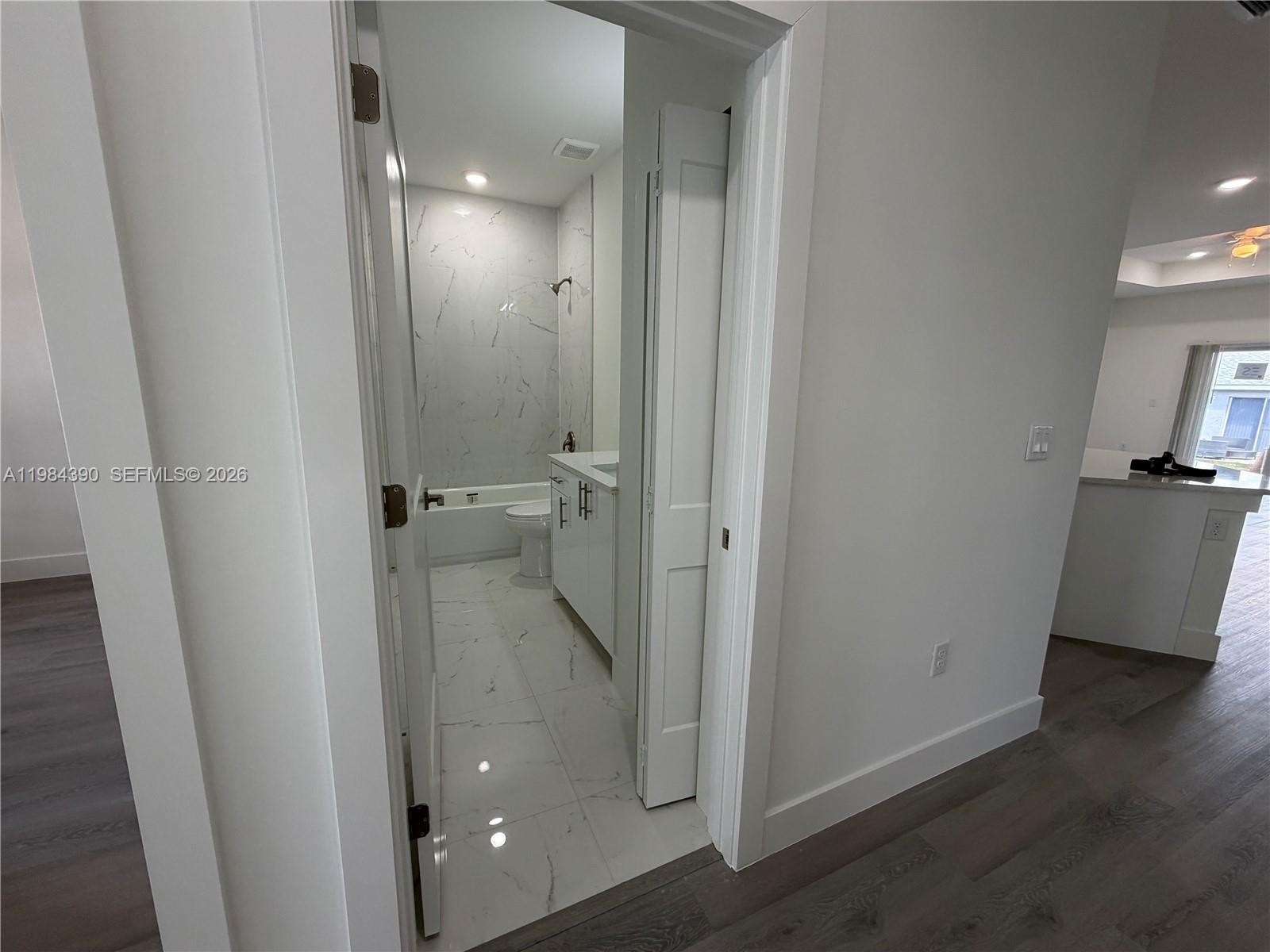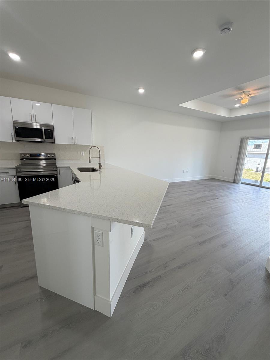 Be the first to live in this stunning brand new 3 bedroom, 2 bath fenced backyard with a divider between both units (Pictures coming soon of updated fenced backyard), providing each residence with its own private outdoor space. Covered lanai, a 1 car garage with additional parking space in the long driveway that can fit two additional cars, designed with modern finishes and comfortable living in mind. This never lived in residence features a bright open concept layout with stylish luxury vinyl flooring, recessed lighting, and large windows that fill the space with natural light. The beautiful kitchen is the heart of the home, showcasing sleek quartz countertops, modern cabinetry, stainless steel appliances, and a spacious breakfast bar perfect for casual dining or entertaining guests. The spacious bedrooms offer ample closet space, while the bathrooms feature elegant vanities and beautifully tiled walk in showers, creating a clean and contemporary feel throughout the home. Enjoy the convenience of central A/C, in unit washer and dryer, and a covered lanai with ceiling fan and lighting, ideal for relaxing outdoors. The property also offers generous backyard space for added comfort and privacy. A perfect combination of modern design, comfort, and brand new construction. Move in ready and waiting for its very first residents.